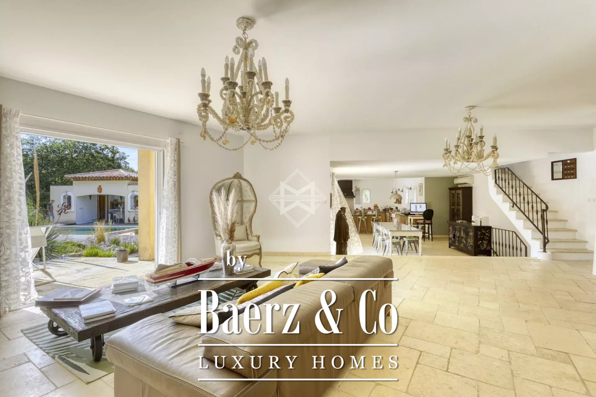 This villa Bormes-les-Mimosas is discreetly positioned at the end of a private road, set within 4000 m² of level grounds moments from Cabasson Beach and La Favière. The residence, built in 2007, offers a living area of 325 m² that flows gently into the landscaped gardens and an inviting 10 by 4 metre pool, surrounded by mature plantings and a tranquil pool house with summer kitchen.