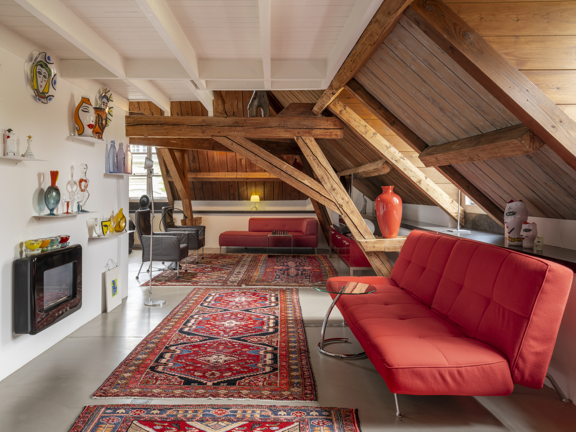 The apartment features a unique and monumental roof structure with a maximum height of approximately 6 meters.