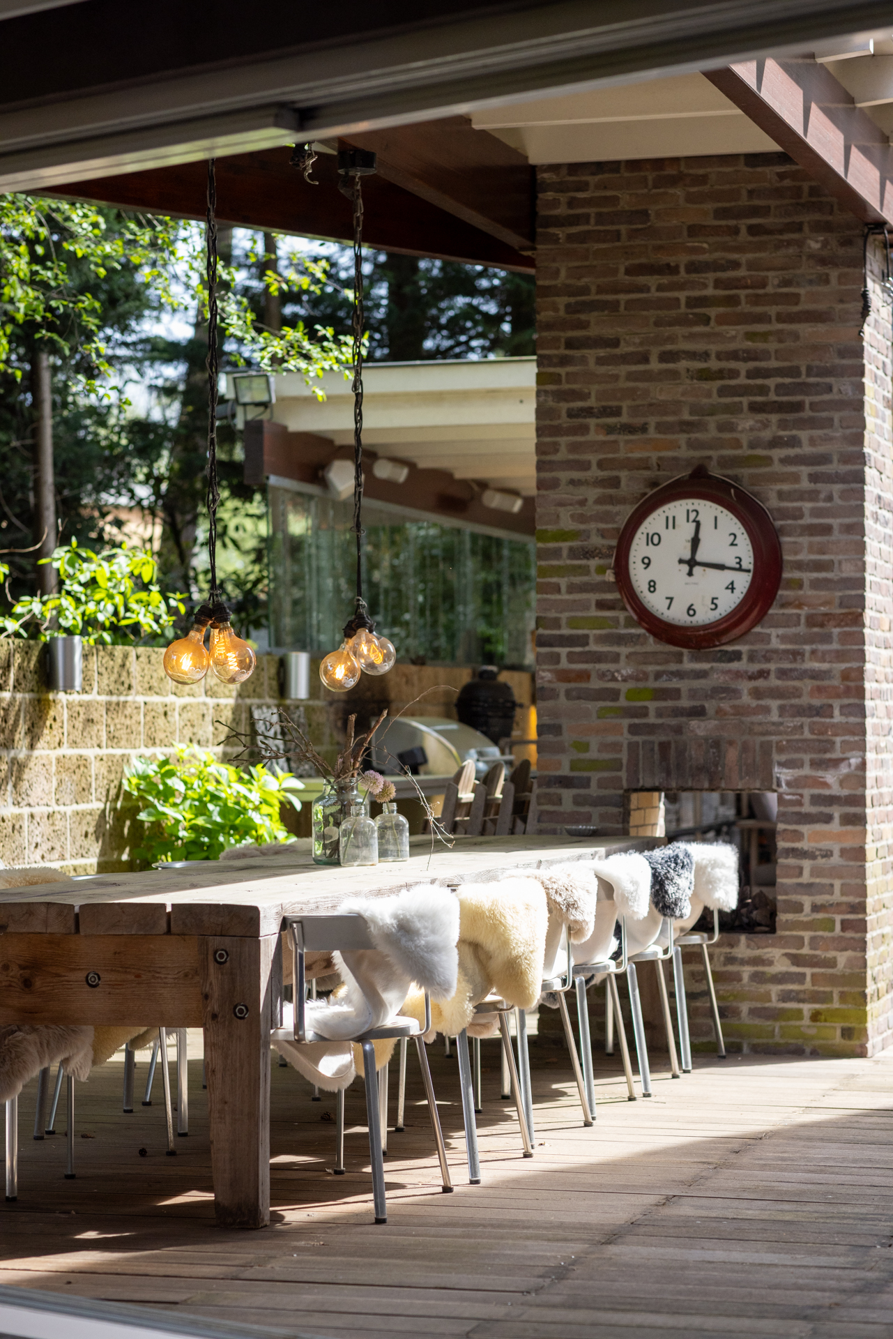 The outdoor area partly consists of a fixed roof, but also has a great lounge area with a luxurious, custom-made sail that can be removed. This lounge area also has a beautiful floor gas fireplace. The outdoor speakers, beautiful lighting and 5 electric heaters provide extra warmth and atmosphere. Even a TV connection and full WiFi network are available.