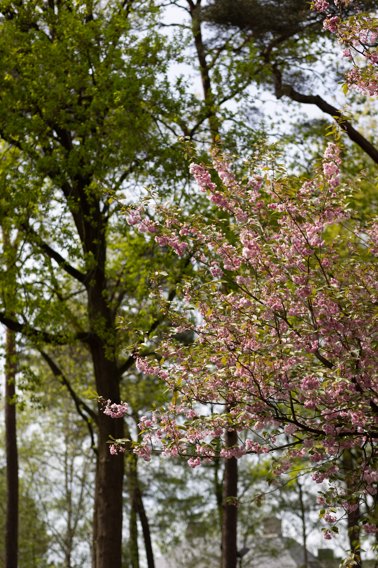 The garden is beautifully landscaped with a variety of terraces, green borders, a pond, a large (artificial) lawn, a wooden shed and mature trees. The garden is equipped with a sprinkler system