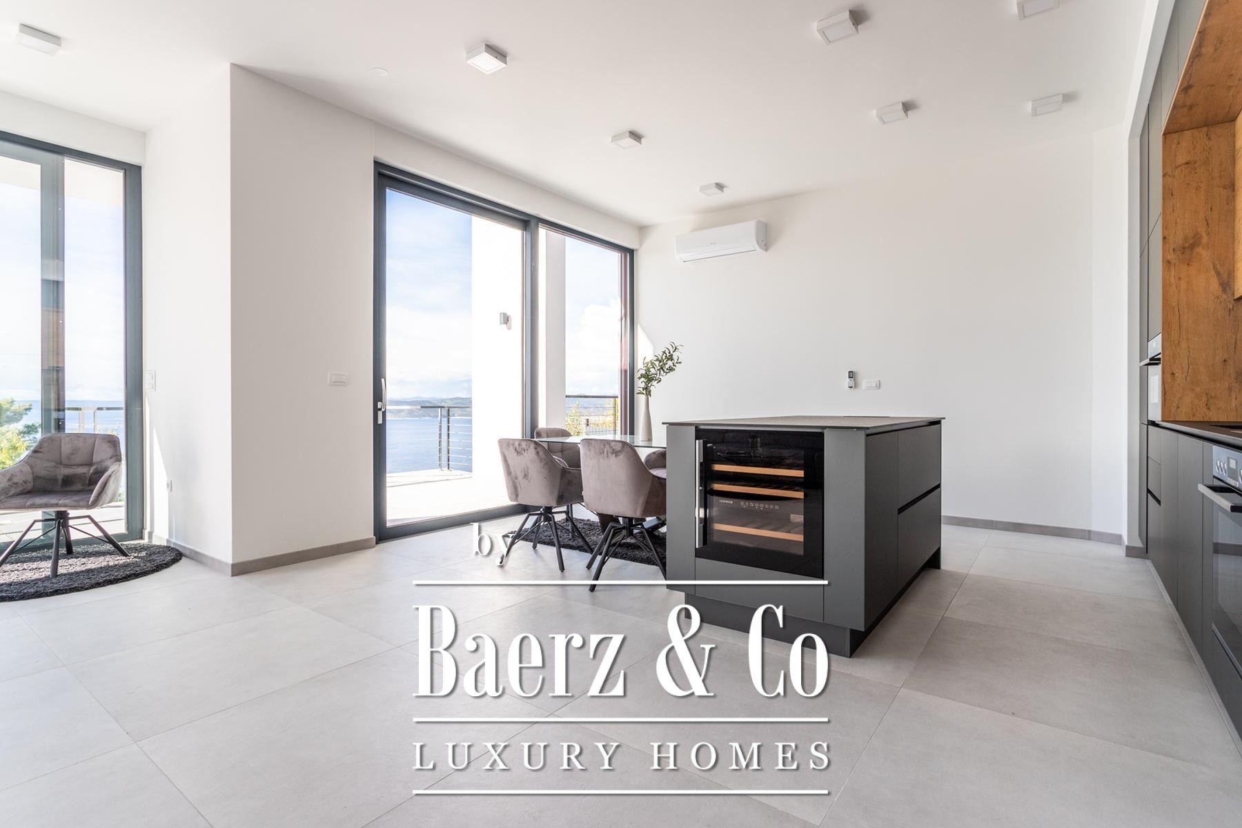 Villa Brela with panoramic sea views stands in an exclusive enclave on Croatia’s revered Makarska Riviera. This villa in Brela presents 268 m² of living space on a 379 m² plot, integrating contemporary architecture with a profound awareness of light and landscape. The villa unfolds across three levels, with expansive glass walls capturing the sea and island vistas from every floor. On the lower level, a summer kitchen, fitness area, storage, and boiler room accommodate leisure and practical needs. The ground floor connects an open kitchen, dining, and living area to a private terrace, garden, and pool, blurring the boundaries between interior and Mediterranean outdoors. Upstairs, three bedrooms each feature en suite bathrooms and balcony access, while a fourth bedroom and bathroom sit on the main level. Rich natural light, horticultural landscaping, and a swimming pool invite relaxed gatherings, morning rituals, or quiet evenings with a view. Finishes include panoramic aluminum joinery, high-grade ceramics, multi-zone air conditioning, underfloor heating, and a heat pump. Supermarkets, schools, beaches, and sports facilities are within easy reach, and Split airport lies 67 km away. Villa Brela is both an invitation to an effortless lifestyle and a discerning investment.
