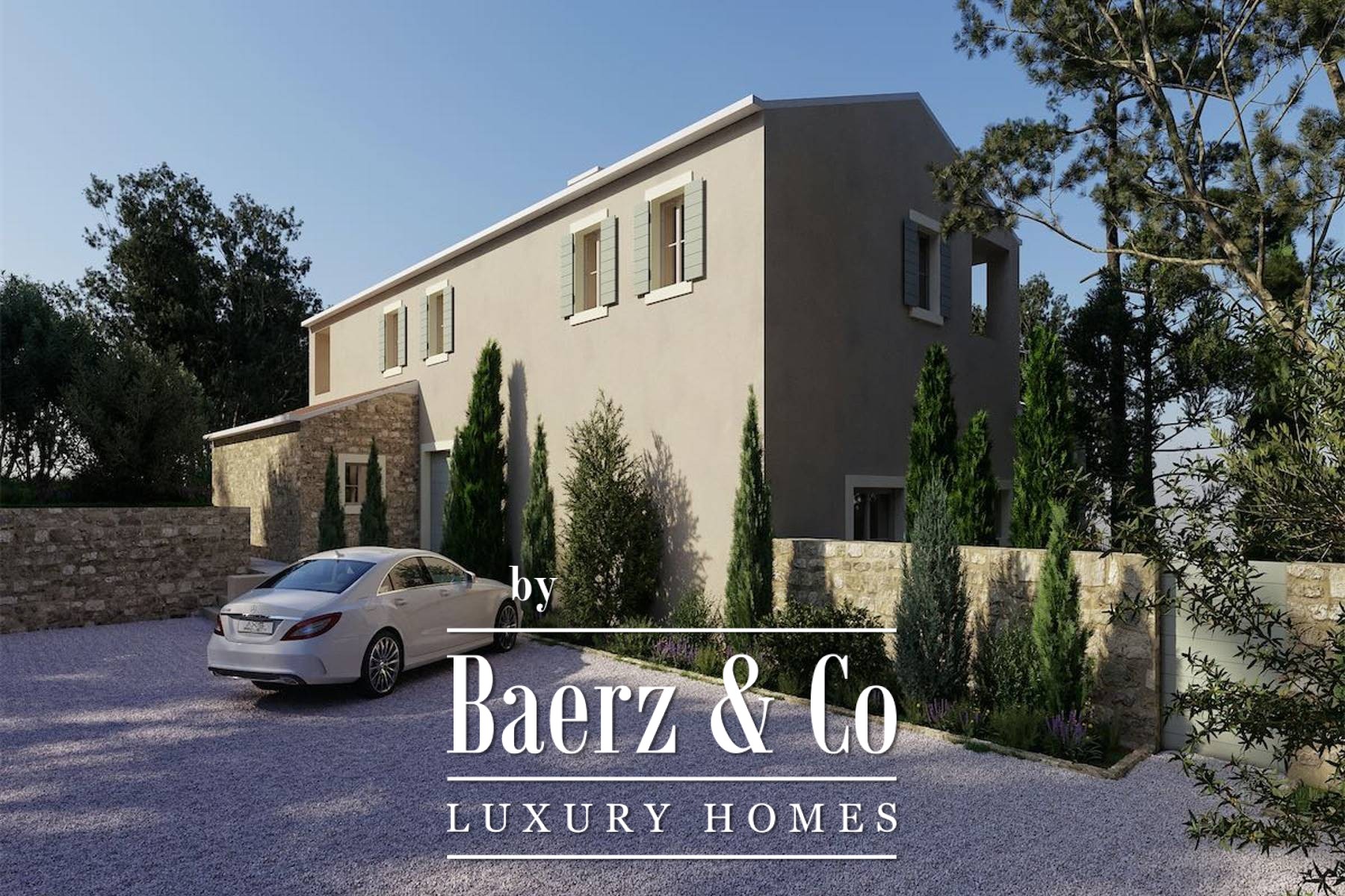 This beautiful future villa is located in a quiet and secluded hilly area of Nova Vas. The location is like a fairy tale, with a view of the glades of Brtonigle on one side, and a monumental view of the mouth of the Mirna River and the sea on the other. In short, a priceless view.The location itself is well connected by traffic, thanks to the proximity of the highway, there is fast communication to larger centers such as Trieste, Pula, Rijeka, Zagreb, etc. The nearest Novigrad beaches are 4.5 km away.The project includes a complete reconstruction of an indigenous Istrian house, but with modern architectural solutions to meet the parameters of the spatial plan and the needs of modern living. The house is surrounded by greenery, and on the property there are 100-year-old oak and mulberry trees, as well as other Mediterranean plants such as olives, rosehips, figs, etc.The house covers 270 square