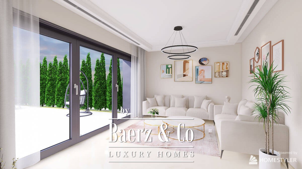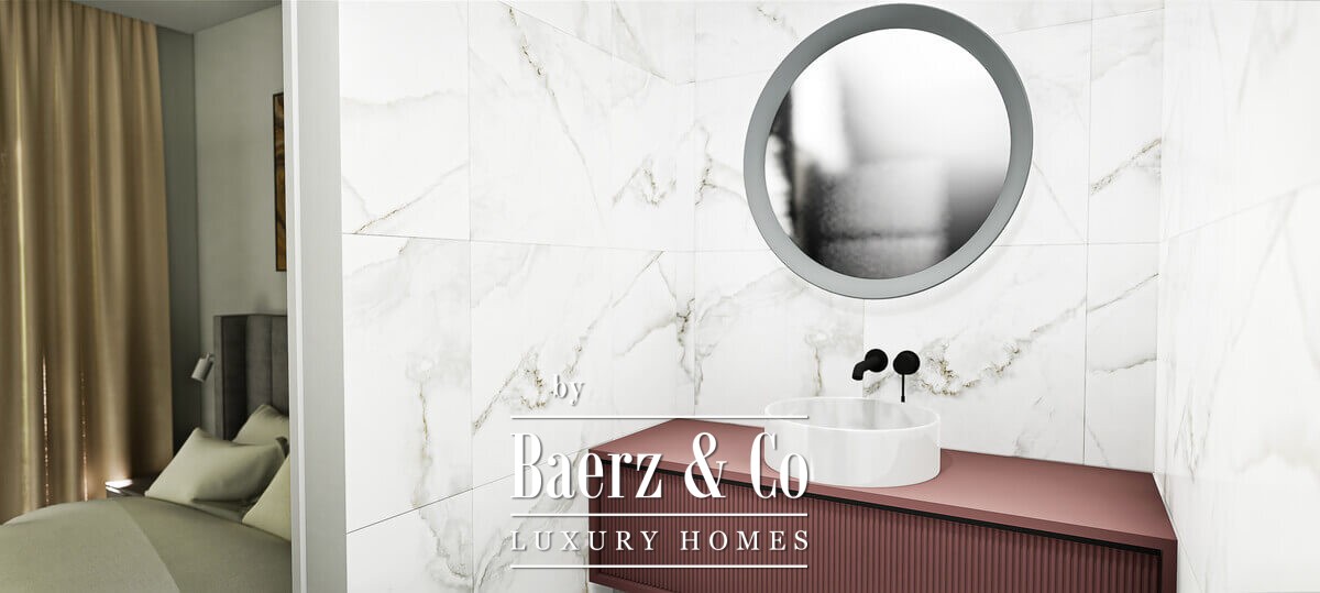 -1 FLOOR - There are 2 layout options to choose: 1. Family room with the kitchenette and one bedroom with en-suite bathroom and built-in wardrobe OR 2. Two bedrooms, each of them with en-suite bathroom and built-in wardrobe Exit to the yard with 35 m2 swimming pool and recreation area; Technical space with laundry and storage area with an access to plumbing system, boiler and pool equipment.