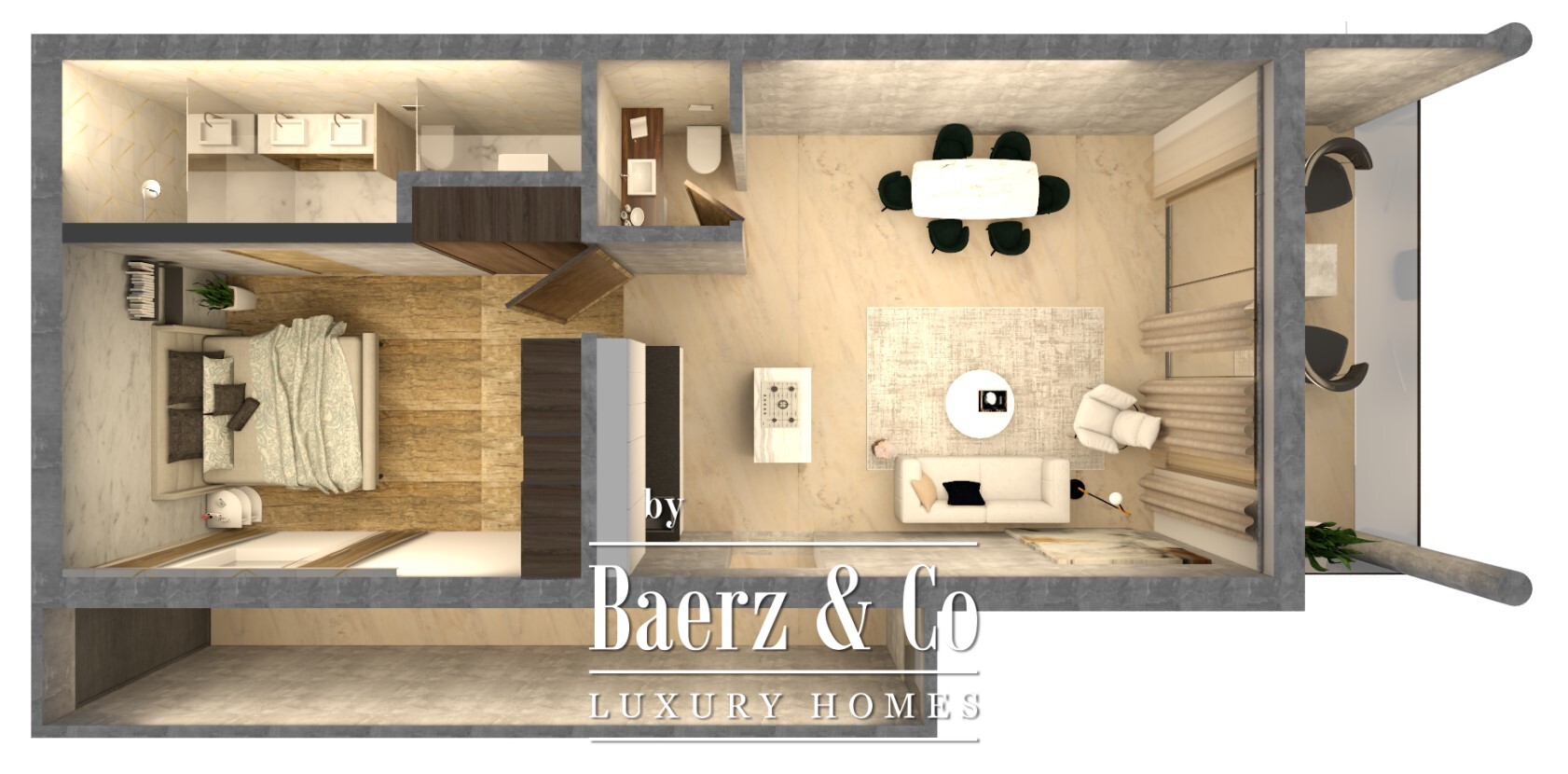 Apartment is located on the second floor of the building, that has magnificent views towards sea, Budva Old Town and Island Said Nicolas. Apartment is spacious, it has open plan living room with terrace, one bedroom and one bathroom.