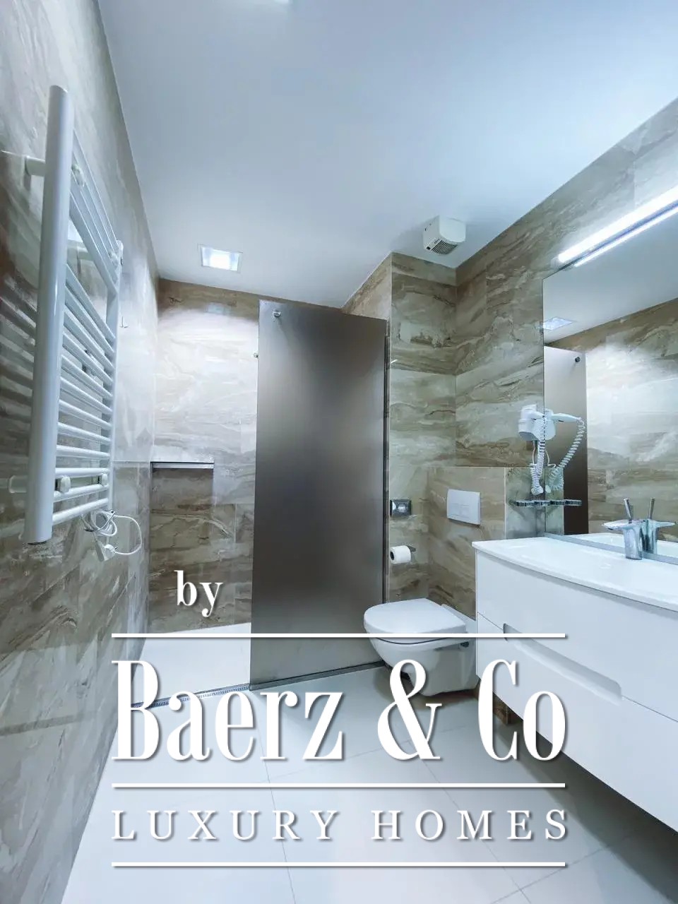 Structure of the apartment: hallway, living room with kitchen and dining table, 2 bedrooms, a bathroom and a terrace. The apartment itself has 71m2, while its terrace has 6m2. It has a beautiful sea view and the view of the mountains that surround it. It is fully furnished and ready for moving in.