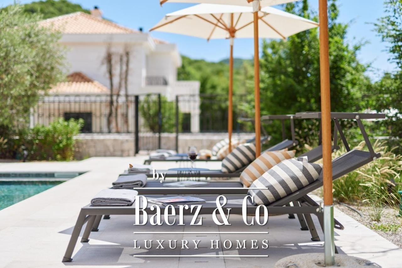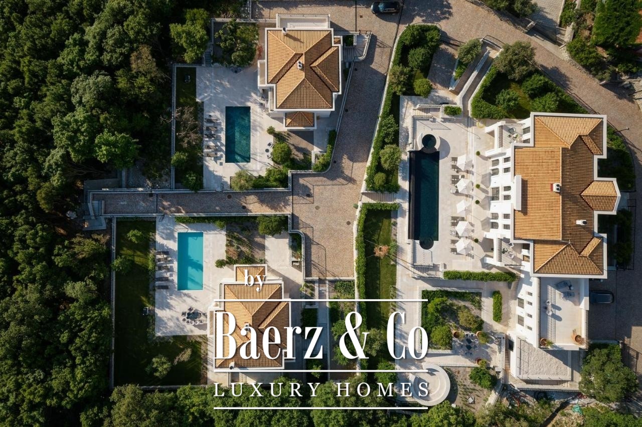 This magnificent estate consists of 3 villas and hosts 26 persons. Each villa has its own terrace and a pool, a hot tub, a sauna and a gym. The beautiful estate is tucked in nature, with wonderful views towards the sea and hills. The privacy of the estate is highlighted - it has private entrance and parking for each villa.