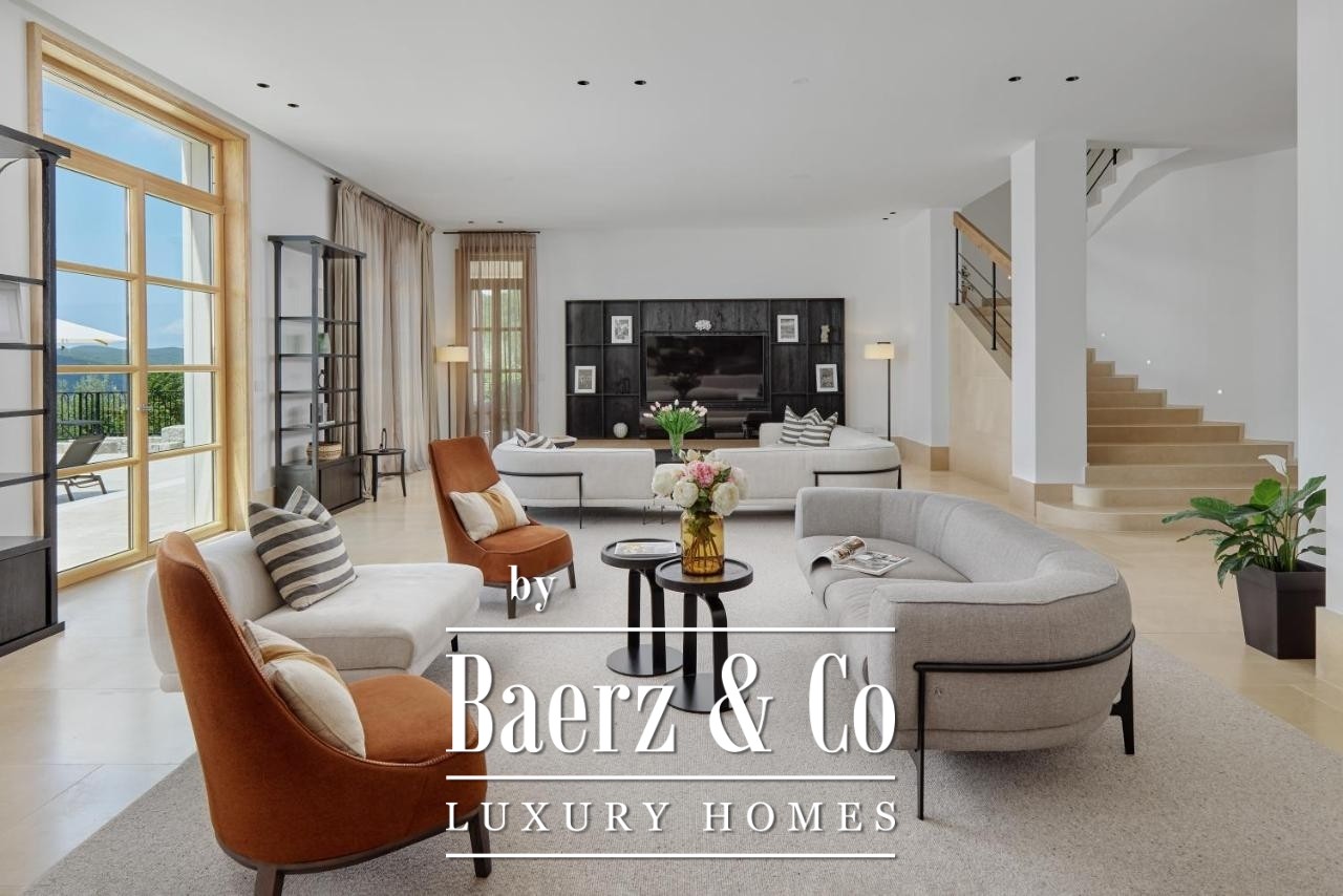 his wonderful villa has its own terrace and a pool, a hot tub, a sauna and a gym. The beautiful estate is tucked in nature, with wonderful views towards the sea and hills. The privacy of the estate is highlighted - the villa has a private entrance and parking.