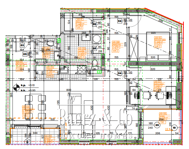 Structure of the apartment: hallway, living room with kitchen and dining table, 2 bedrooms, a storage room, a bathroom, a toilet and 2 terraces. It will be delivered with finished floors, finished tiles, equipped bathroom and air conditioning.