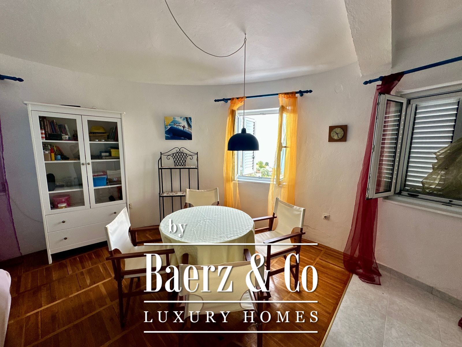 The house has 3 levels and on each one is an apartment of 50m2. The entrance of the house is from the 1st floor. The façade of the house is made out of stone. There are 2 parking spots in front of the house. It is connected by an asphalt road to the main road.