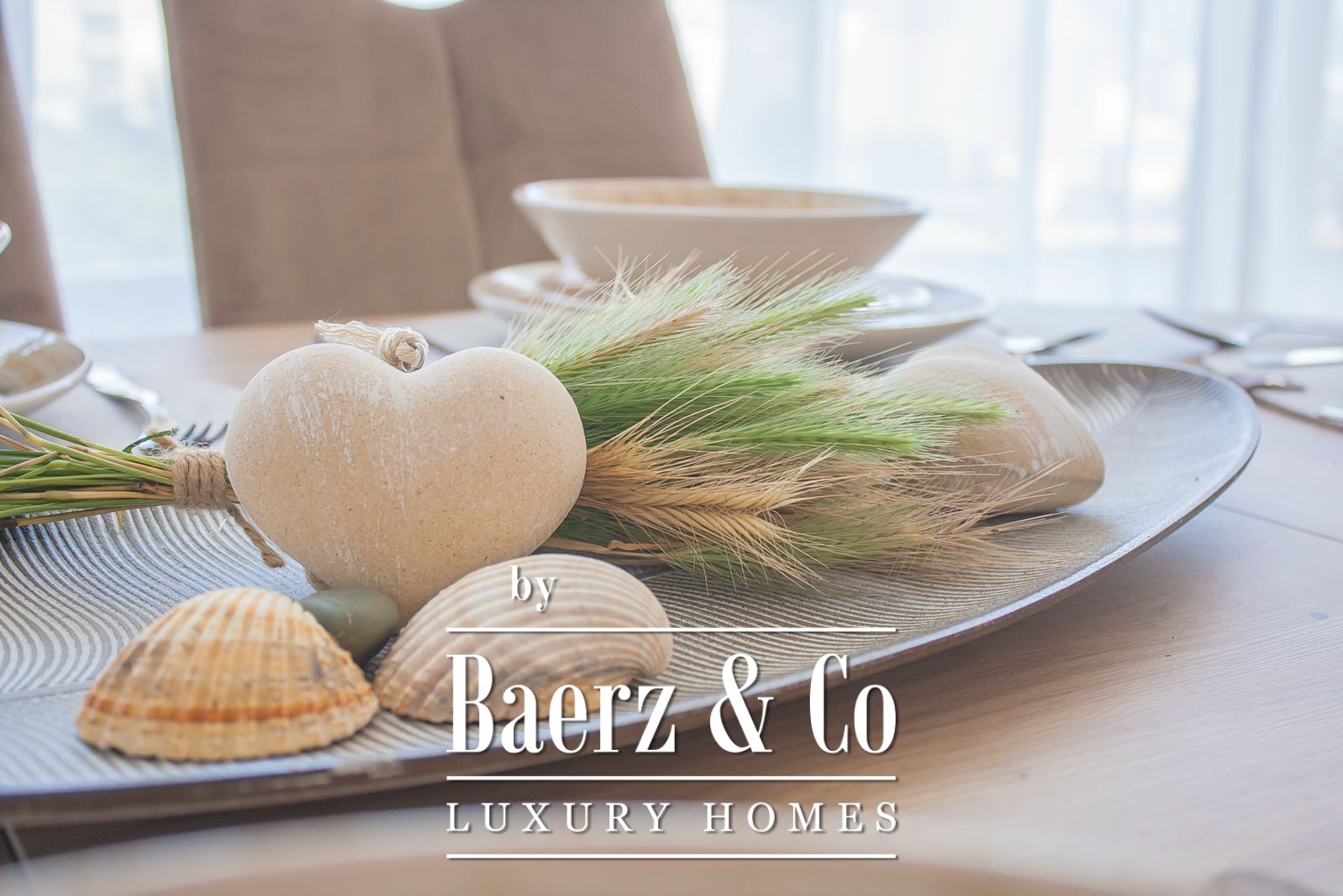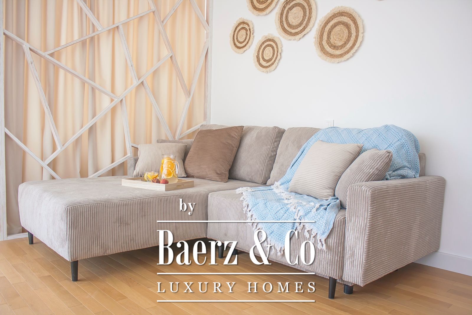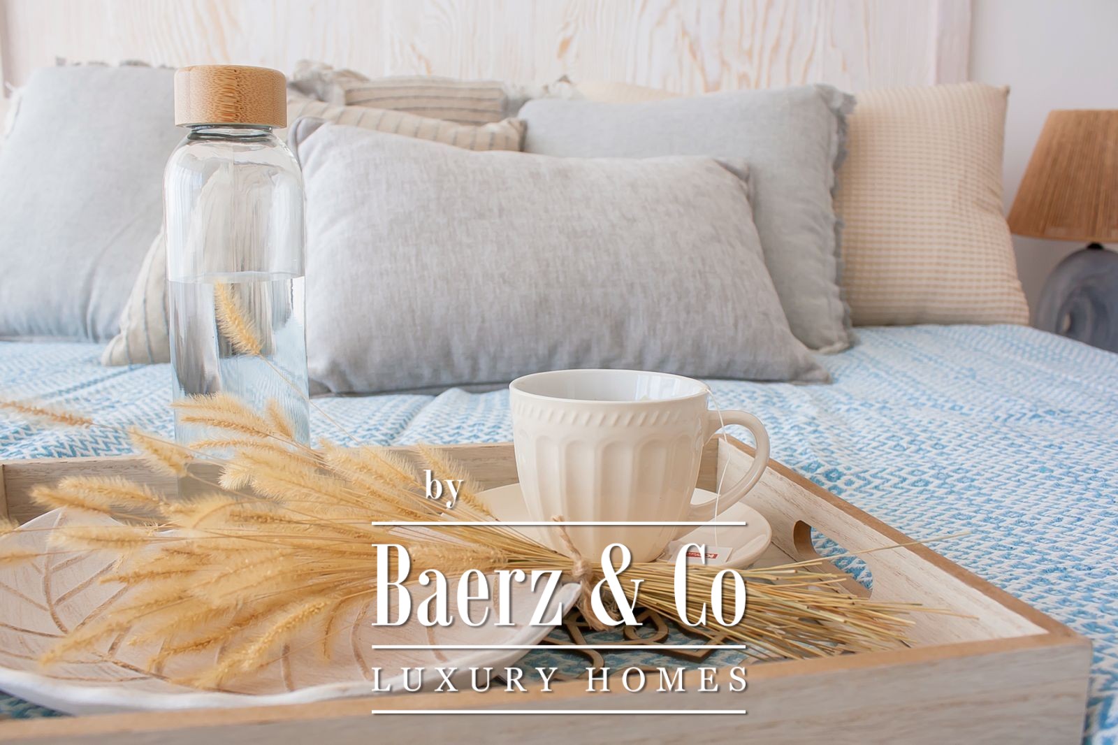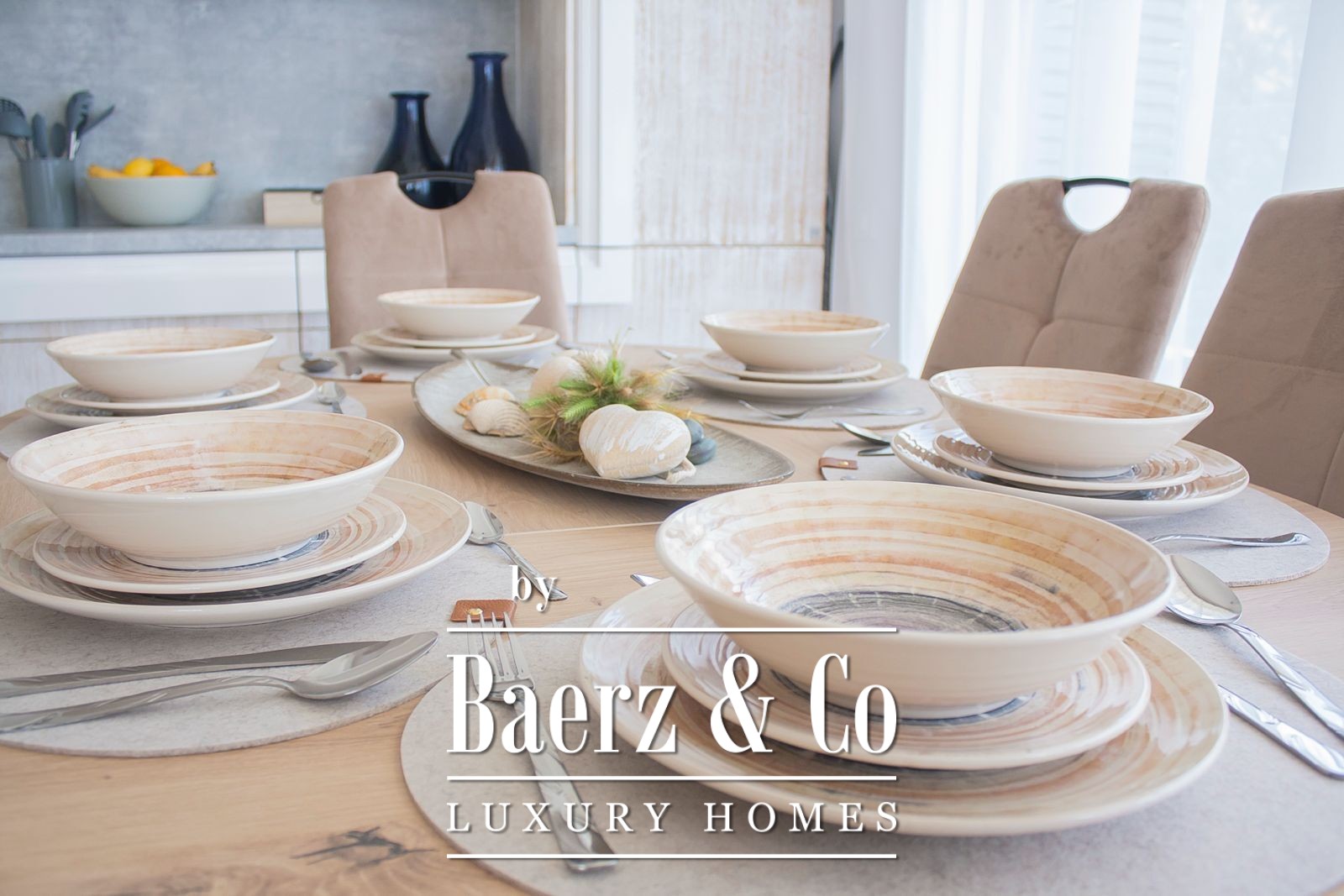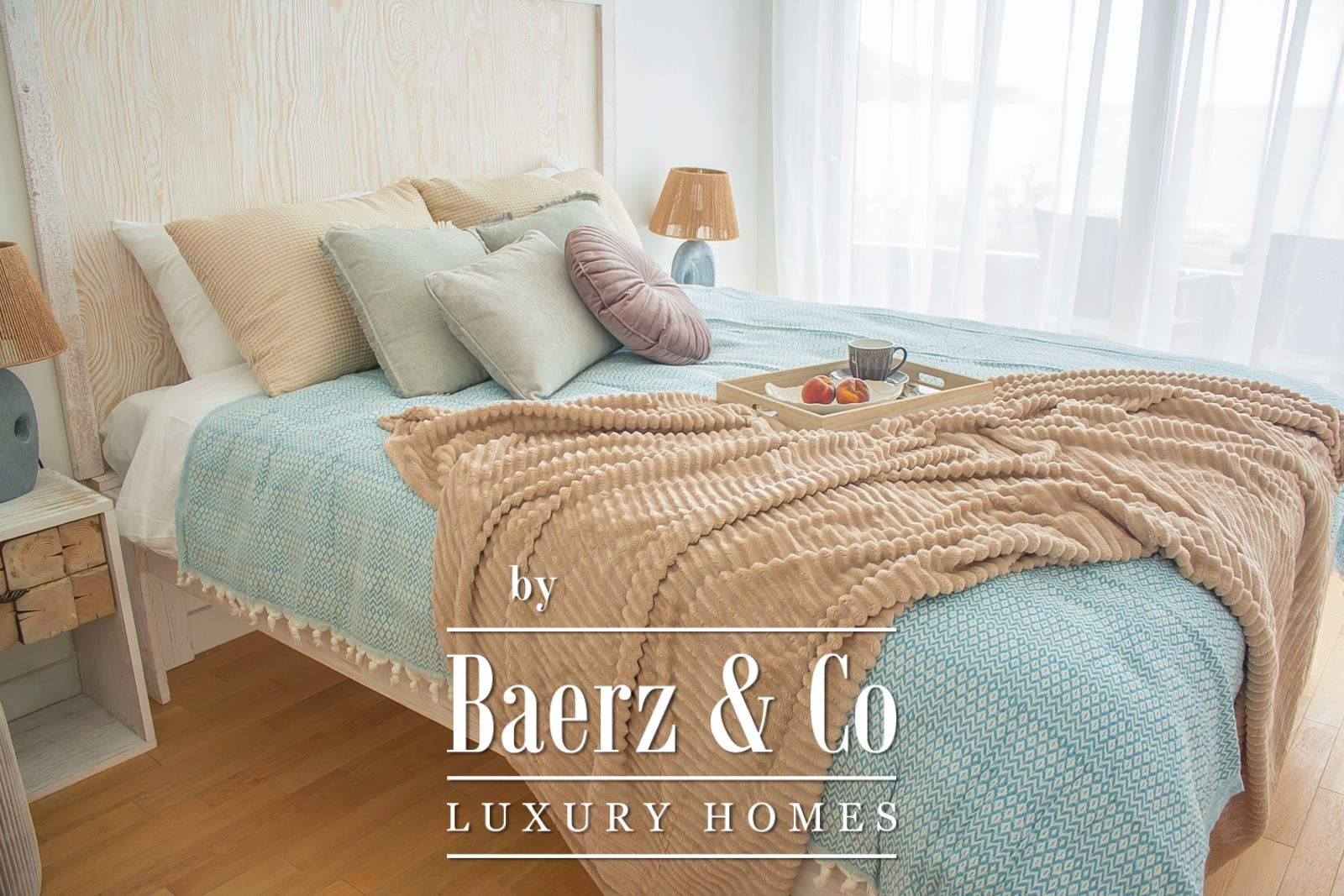Structure of the apartment: living room with kitchen and dining table, 2 bedrooms, a bathroom and a terrace. It has a view of the sea and the mountains around it. The apartment is fully furnished and ready for moving in.