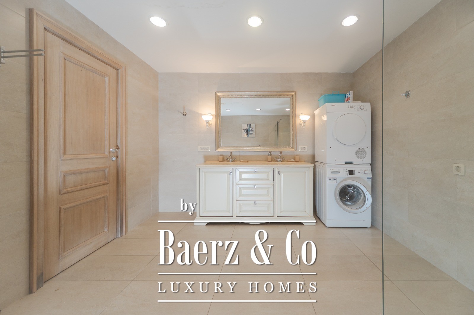 Three living rooms, each paired with kitchens and dining areas, lend flexibility for multi-generational living or hosting, while three private bathrooms ensure comfort and privacy. The 320m² plot is complemented by a private pool for quiet afternoons, and two garage spots offer ease and discretion.