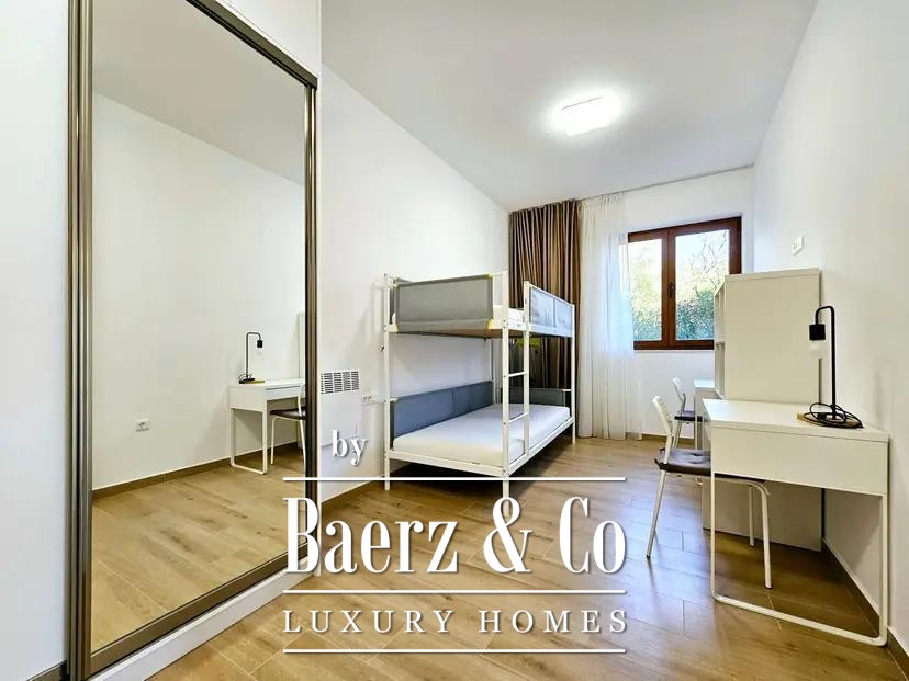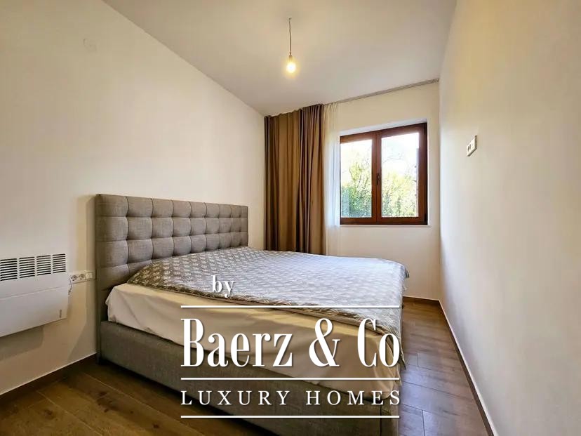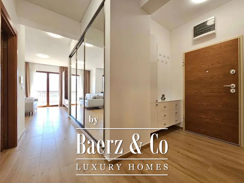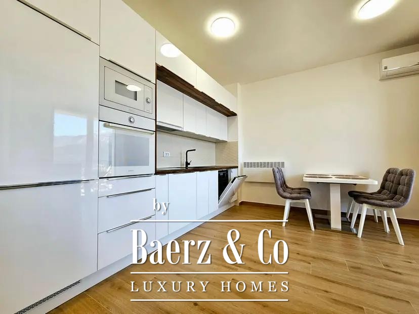 The apartment seamlessly blends function and comfort, comprised of a bright living room with kitchen and dining area, two bedrooms, a bathroom, and a terrace promising panoramic outlooks. Every detail is considered, and the apartment is fully furnished for immediate occupation. The presence of an international school next door, with restaurants and grocery shops in close proximity, underpins its suitability for year-round living, summer escapes, or both short and long-term rental investment strategies.