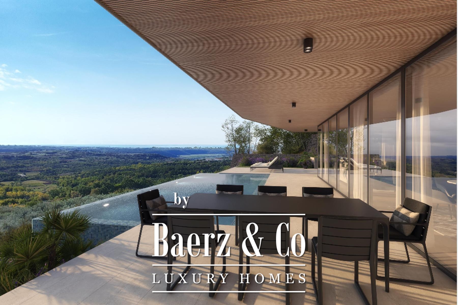Villa Buje with panoramic Istrian views stands at the meeting point of seclusion and proximity, surrounded by vineyards and olive groves, and neighbouring some of the region’s most prestigious hotels. This villa in Buje offers a living experience defined by architectural clarity, balanced proportions, and a deep sense of place, making it a rarity among Istrian homes.
