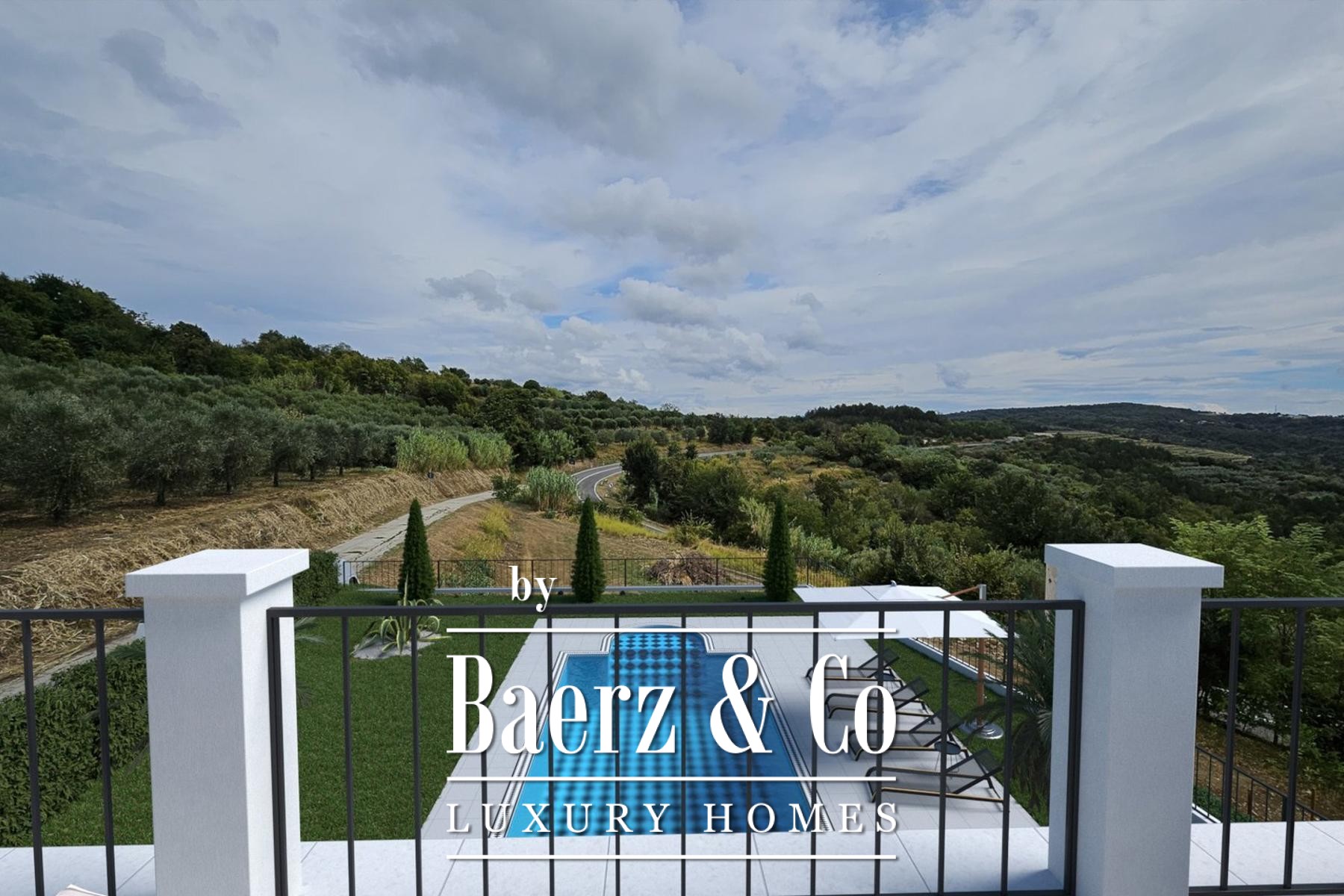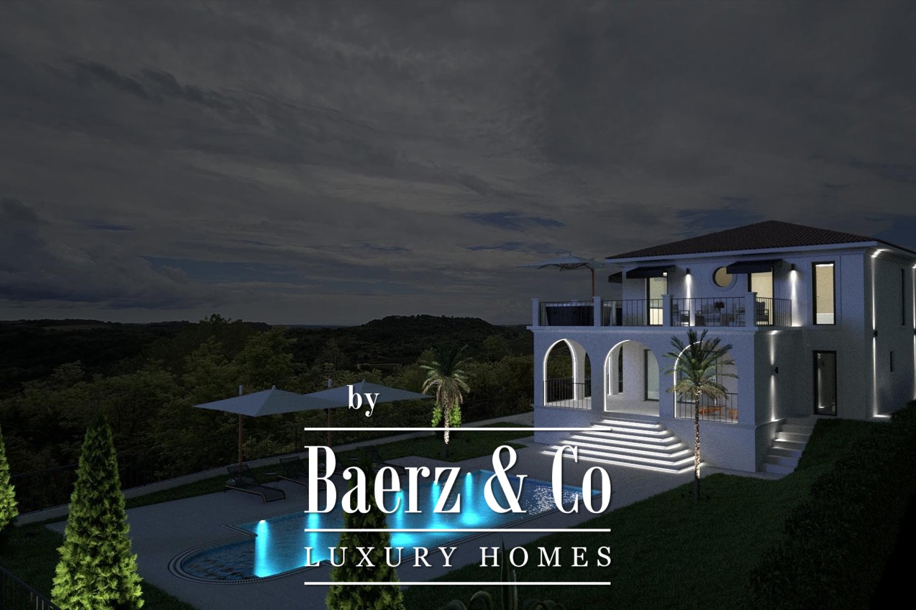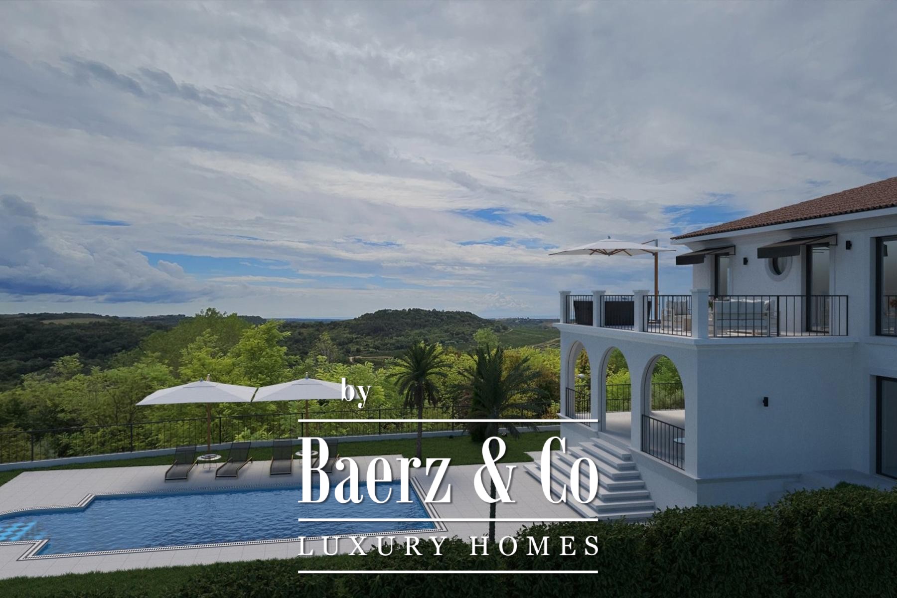 Villa Buje welcomes you to a panoramic vantage point in one of Istria’s most celebrated settings. This villa Buje property commands an elevated position, offering unobstructed views of the sea and the undulating landscape that defines the region. Across 384 m² of living area, architectural clarity meets a restrained design sensibility.