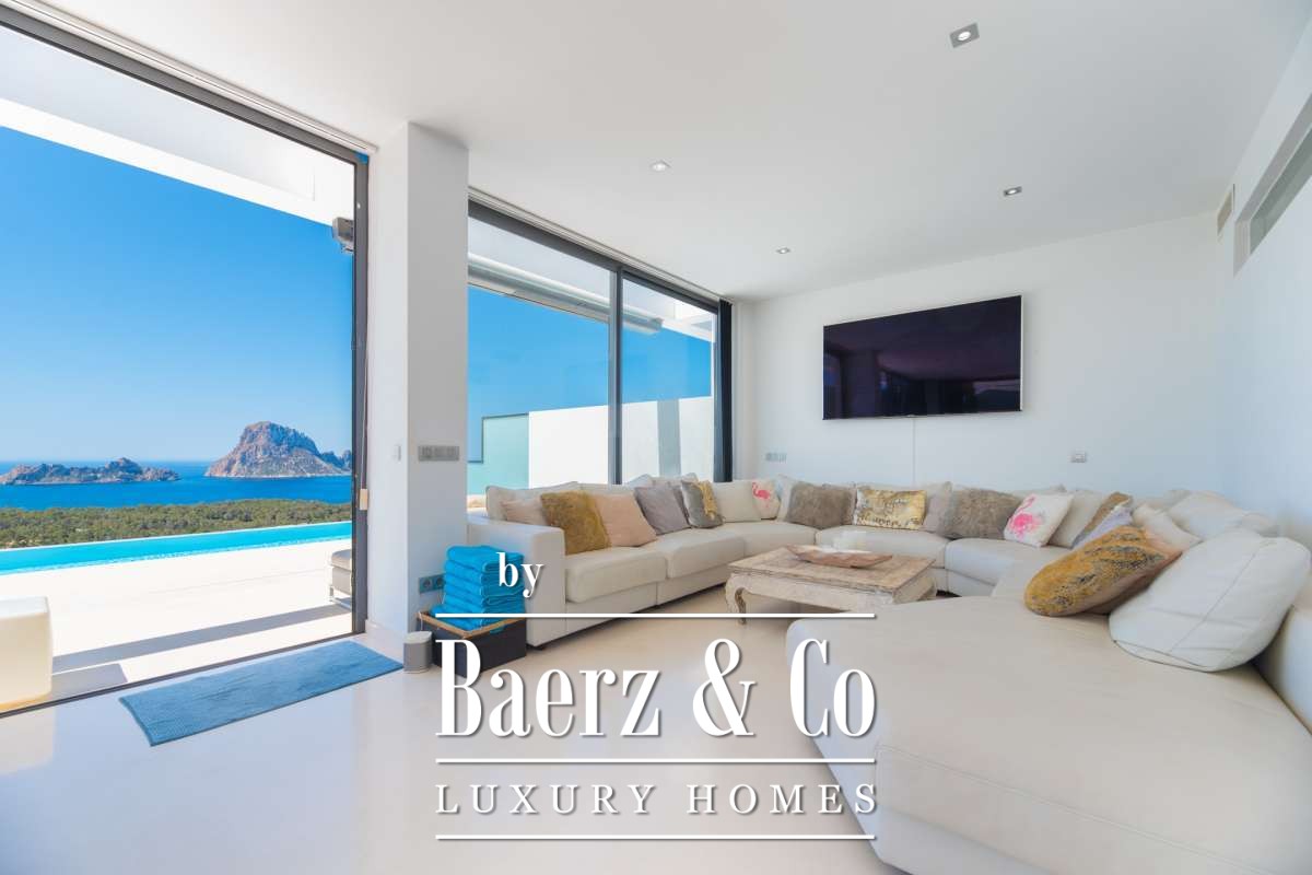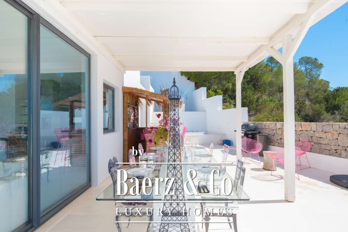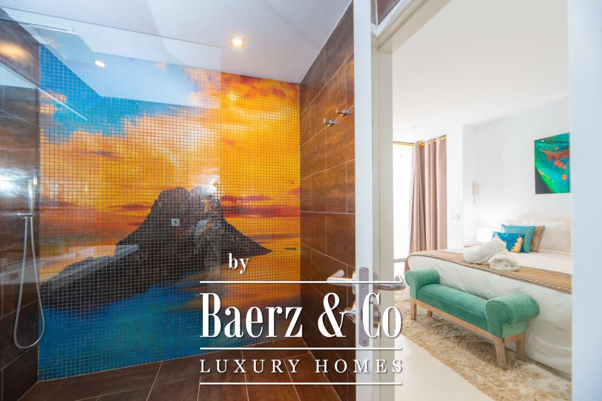 Authentic Ibiza Living with Spectacular Es Vedrà ViewsImagine waking up to a panoramic view of the legendary Es Vedrà rock, with the first morning light softly illuminating your terrace as the sea begins to shimmer. This spacious apartment is tucked away in Cala Carbó, one of the most enchanting and tranquil locations on Ibiza’s southwest coast. This area is celebrated for its unspoiled beauty, dramatic cliffs, fragrant pine forests, and small coves with crystal-clear water, a rare and preserved piece of pure Ibiza. Cala Carbó itself is a well-kept secret: a peaceful beach framed by rock formations, home to only a handful of charming restaurants and a laid-back atmosphere where time seems to slow down. Here, you live in harmony with nature without sacrificing comfort. Within just 10 minutes, you can reach Cala d’Hort, Cala Vadella, or the picturesque village of San José, where you’ll find shops, cafés, and daily essentials. This central yet peaceful setting offers a rare balance that makes the location truly exceptional.Bright Living, Surprising Layout and Generous SpacesThis stunning apartment, built in 2010, offers a generous 182 m² of living space, cleverly spread across multiple levels and designed with a focus on comfort, style, and functionality. The home features no less than five bedrooms and five bathrooms, ideal for larger families or those who love to host guests. Each bedroom is tastefully designed with its own en-suite bathroom, natural light, and high-quality finishes. The primary bedroom opens directly onto the terrace and offers sea views, making waking up here feel like