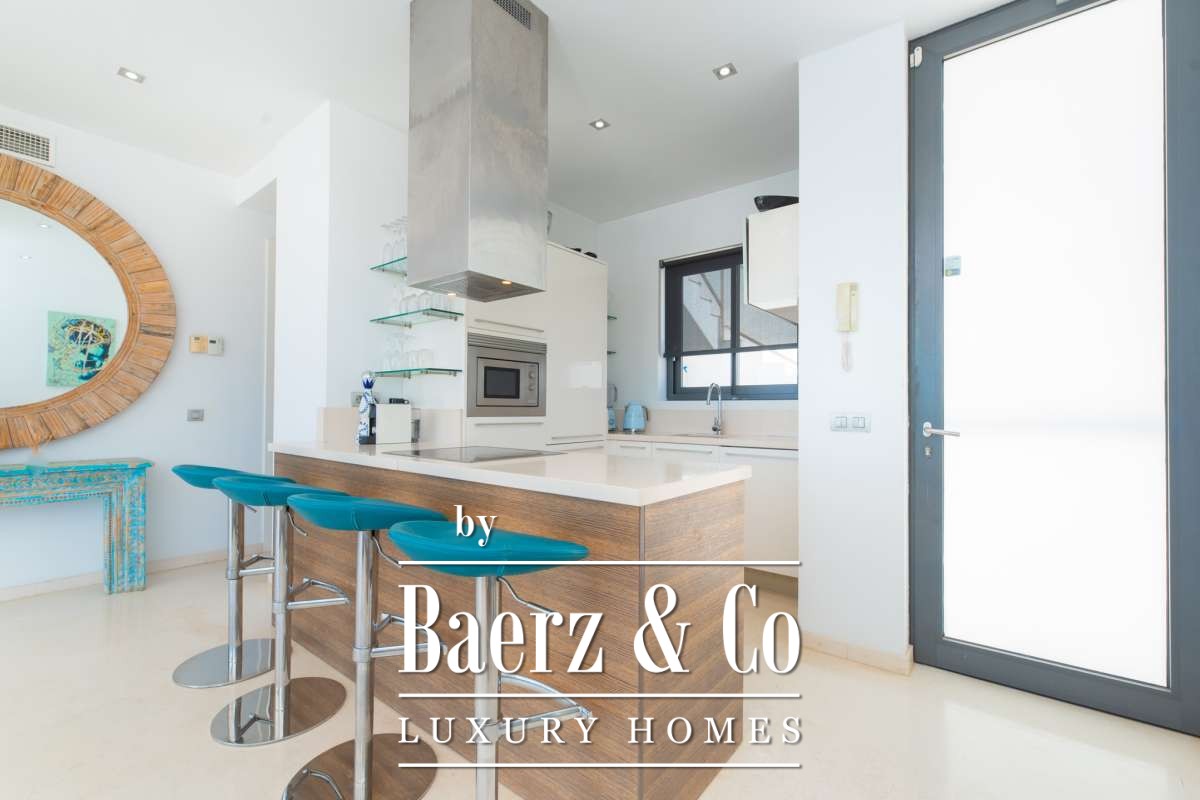 a dream.Spread over two levels, the main floor features a bright, open living area with large sliding glass doors that create a seamless connection to the terrace and pool. The modern U-shaped kitchen is fully equipped with high-end appliances and a breakfast bar, perfect for cooking and entertaining.An external staircase leads to the lower ground floor, which includes a fully self-contained guest apartment with its own bathroom, patio, storage area, and laundry room. Additionally, this level houses a professionally designed private nightclub, complete with soundproofing, lighting, and a bar, a rare and unique feature in this price range.Outdoor Living with Views: Pool and Chill-out VibesOutside, a Mediterranean paradise awaits. The expansive terrace, partially covered, invites you to enjoy long lunches in the shade or balmy evenings under the stars. One of the true highlights is the generous infinity pool, perfectly positioned to soak up the sun and take in the jaw-dropping views of the iconic Es Vedrà. Whether you’re swimming, lounging on the sun deck, or relaxing in the stylish seating area, the stunning surroundings are always within reach. The outdoor space ensures full privacy and includes an outdoor shower and two private parking spaces, offering a perfect blend of comfort and seclusion.Whether you’re seeking a permanent residence, a luxurious holiday home, or a smart investment on Ibiza, this apartment in Cala Carbó combines location, views, and elegance in a way that is rarely found. Contact Ibiza Estates today and let yourself be enchanted, this is an opportunity not to be missed.
