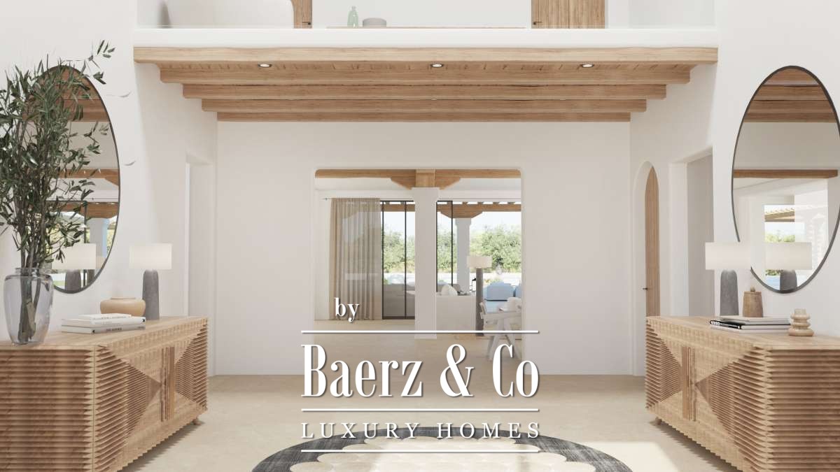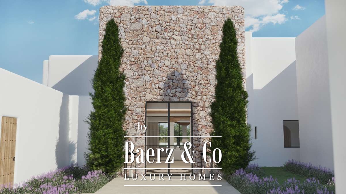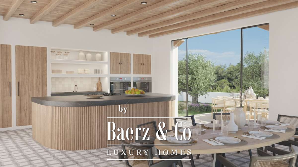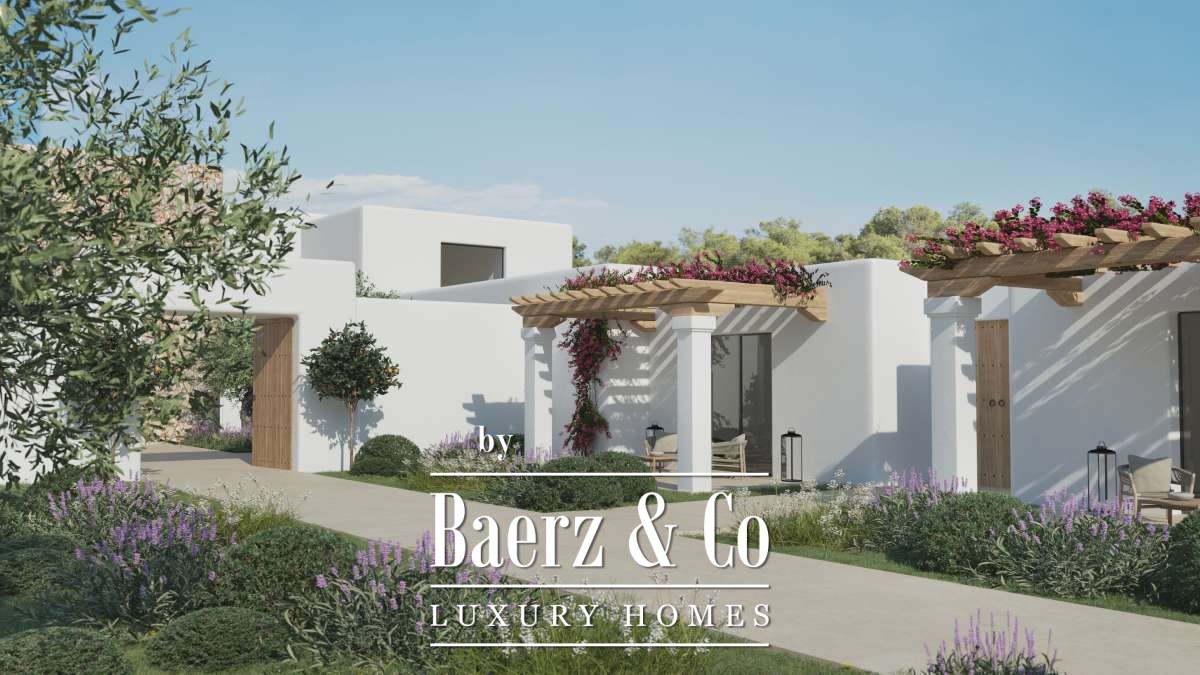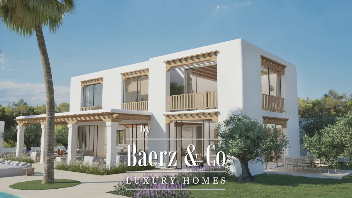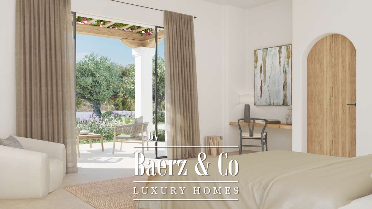 in the background. It also comes with a large ensuite bathroom. The other bedrooms also have their own balconies with the spectacular garden views, making it a dream to wake up in your own private paradise. The house also comes with air conditioning and heating to keep room temperatures comfortable in any season. Noteworthy, the main characteristics of this magnificent property will be maintained, but renovated with a beautifully new interior design project from Blakstad.The outdoor spacesThe centerpiece of this lush and tropical garden is the remarkable 246m2 large swimming pool. Take a refreshing dip in one of Ibiza’s most beautiful pools, and enjoy a private retreat in your own serene oasis. This garden is also ideal for entertaining and hosting guests with its many convivial and shaded terrace areas, decorated with its pink flowers. Be captivated by the magnificent sea views looking through the surrounding palm trees and the lush greenery, also providing extra privacy. On top of that, there is also a small pathway at the back of the garden, bringing you closer to the ocean in just a few steps. In addition, the front garden offers a large piece of land for agriculture. Entering the property, you will find an automatic gate with a luxurious two-lane driveway, where you can comfortably drive in and park your car in the shaded parking space at the end of the roundabout. There is ample space for more cars to park, making it very convenient and secure when receiving guests or family. Embrace the Ibizencan lifestyle and enjoy the perfect blend of a traditional modern design with exquisite amenities in this majestic villa.