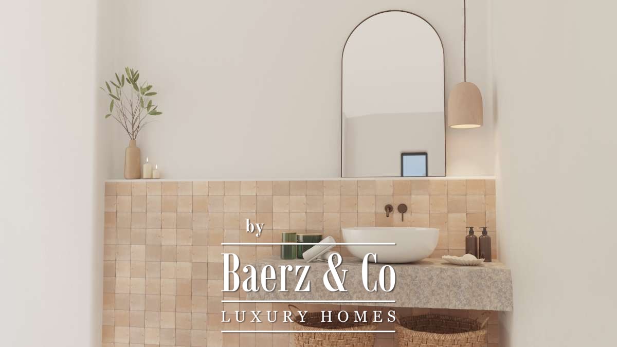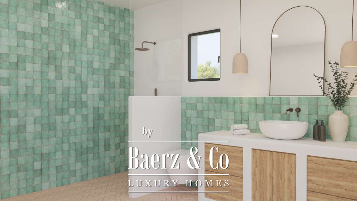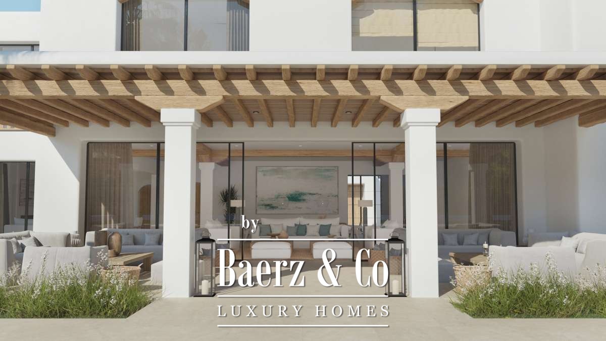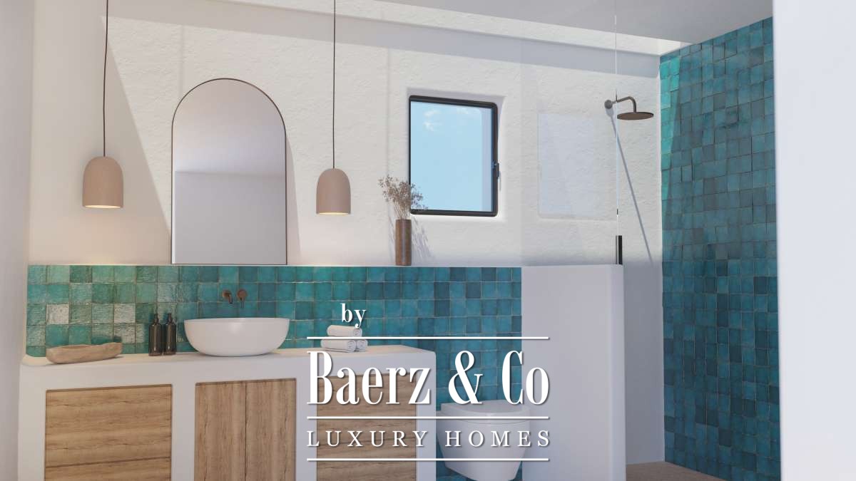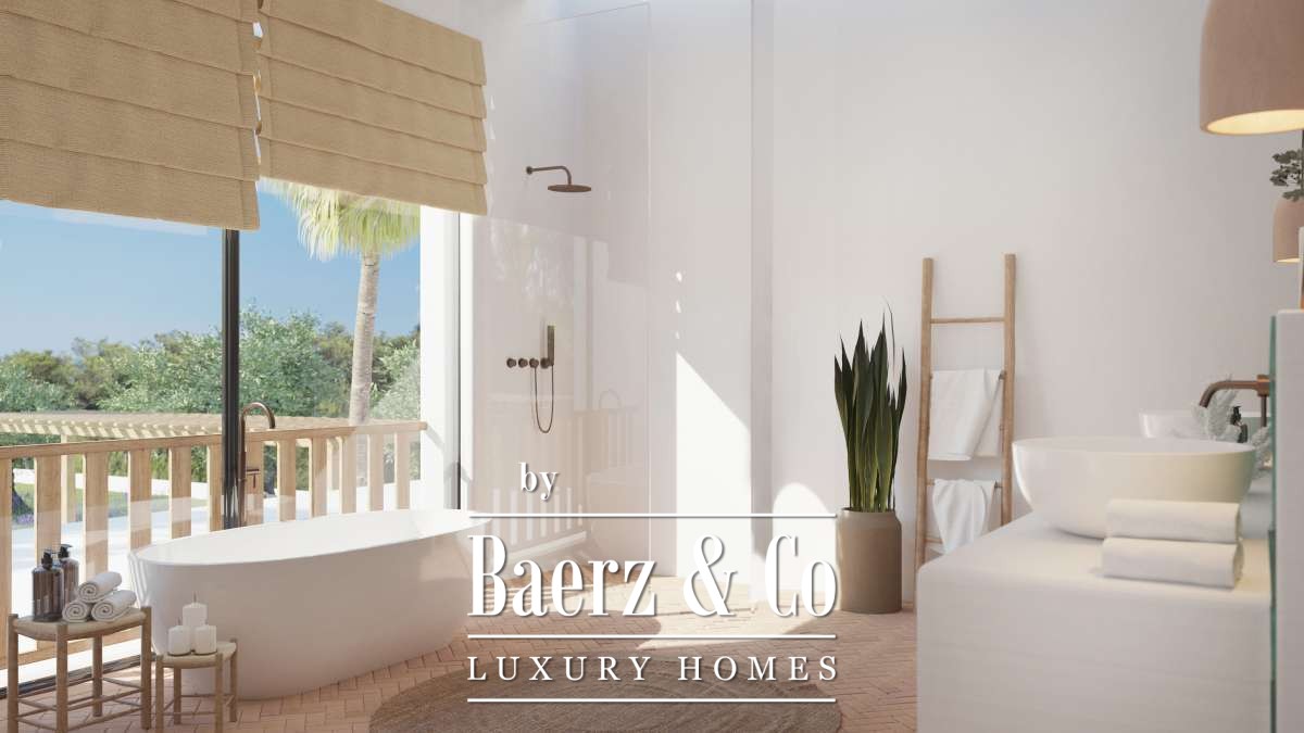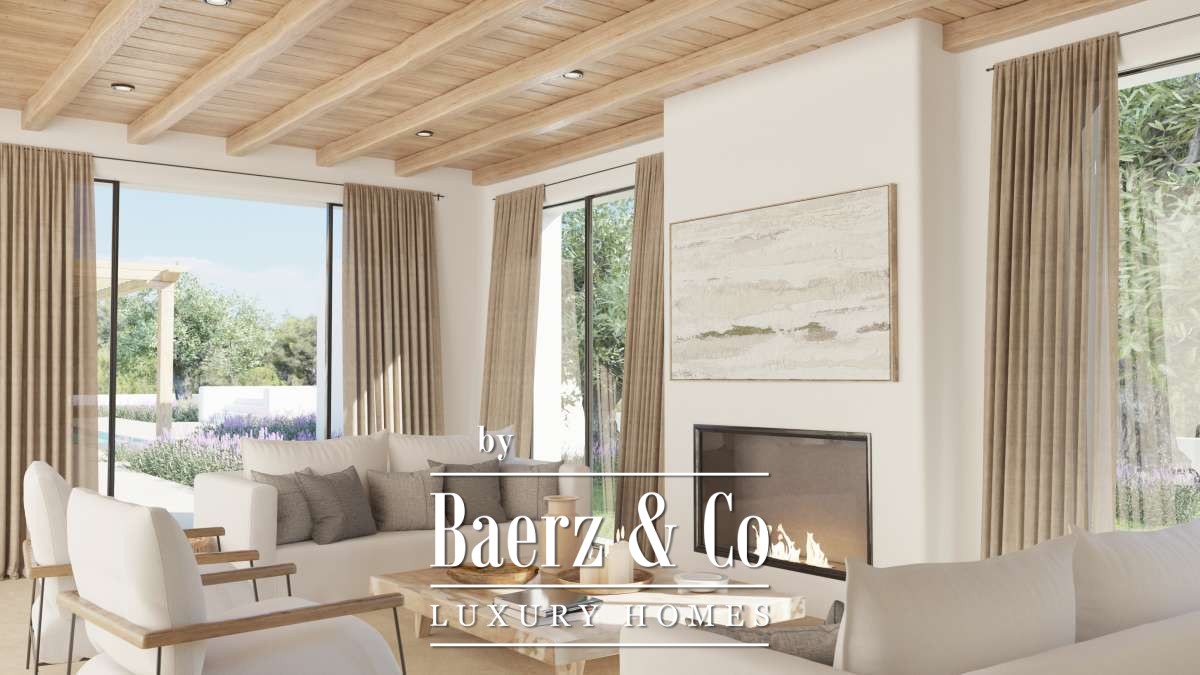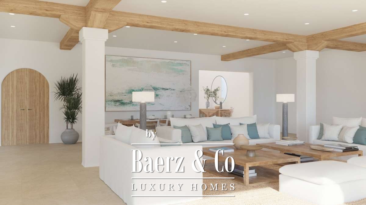 in the background. It also comes with a large ensuite bathroom. The other bedrooms also have their own balconies with the spectacular garden views, making it a dream to wake up in your own private paradise. The house also comes with air conditioning and heating to keep room temperatures comfortable in any season. Noteworthy, the main characteristics of this magnificent property will be maintained, but renovated with a beautifully new interior design project from Blakstad.The outdoor spacesThe centerpiece of this lush and tropical garden is the remarkable 246m2 large swimming pool. Take a refreshing dip in one of Ibiza’s most beautiful pools, and enjoy a private retreat in your own serene oasis. This garden is also ideal for entertaining and hosting guests with its many convivial and shaded terrace areas, decorated with its pink flowers. Be captivated by the magnificent sea views looking through the surrounding palm trees and the lush greenery, also providing extra privacy. On top of that, there is also a small pathway at the back of the garden, bringing you closer to the ocean in just a few steps. In addition, the front garden offers a large piece of land for agriculture. Entering the property, you will find an automatic gate with a luxurious two-lane driveway, where you can comfortably drive in and park your car in the shaded parking space at the end of the roundabout. There is ample space for more cars to park, making it very convenient and secure when receiving guests or family. Embrace the Ibizencan lifestyle and enjoy the perfect blend of a traditional modern design with exquisite amenities in this majestic villa.