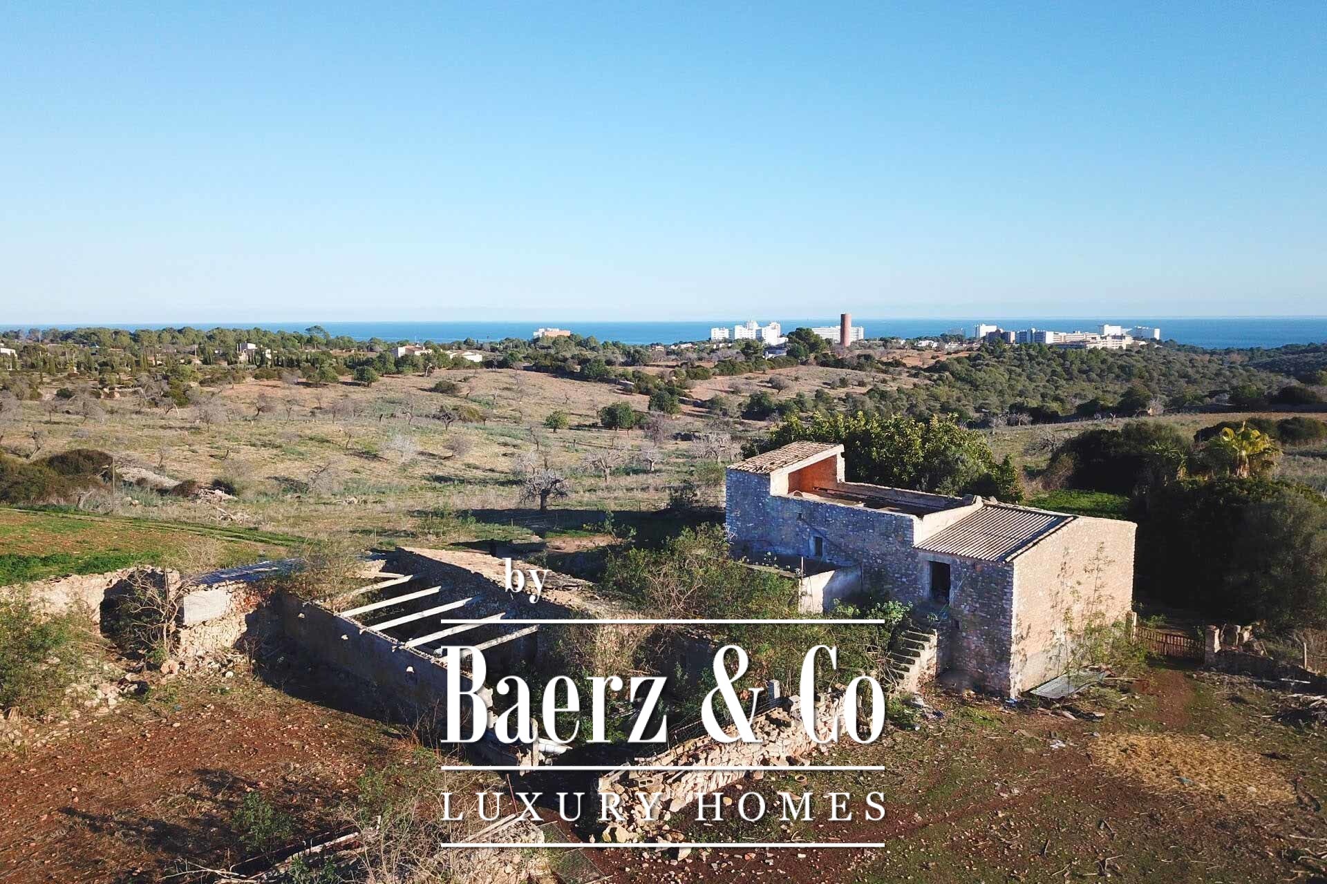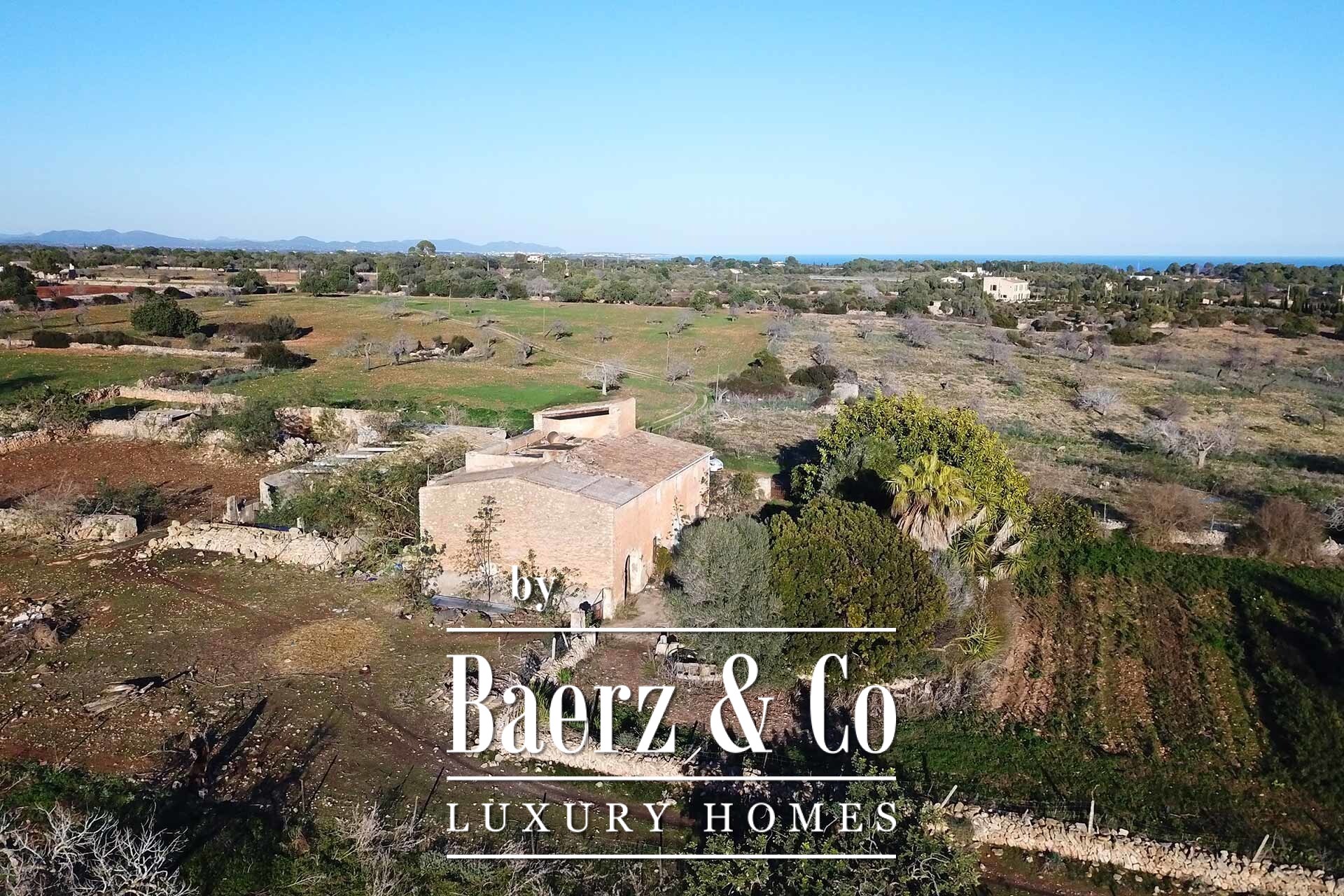 This finca to be reformed is located in a quiet area between Porto Cristo and Cala Murada, a few minutes drive from the small unspoiled beaches of Cala Varques, Cala Virgili and Cala Magraner. The plot of approximately 54.500 sqm with partial sea views has various buildings, the main one with 362 sqm distributed in two floors.