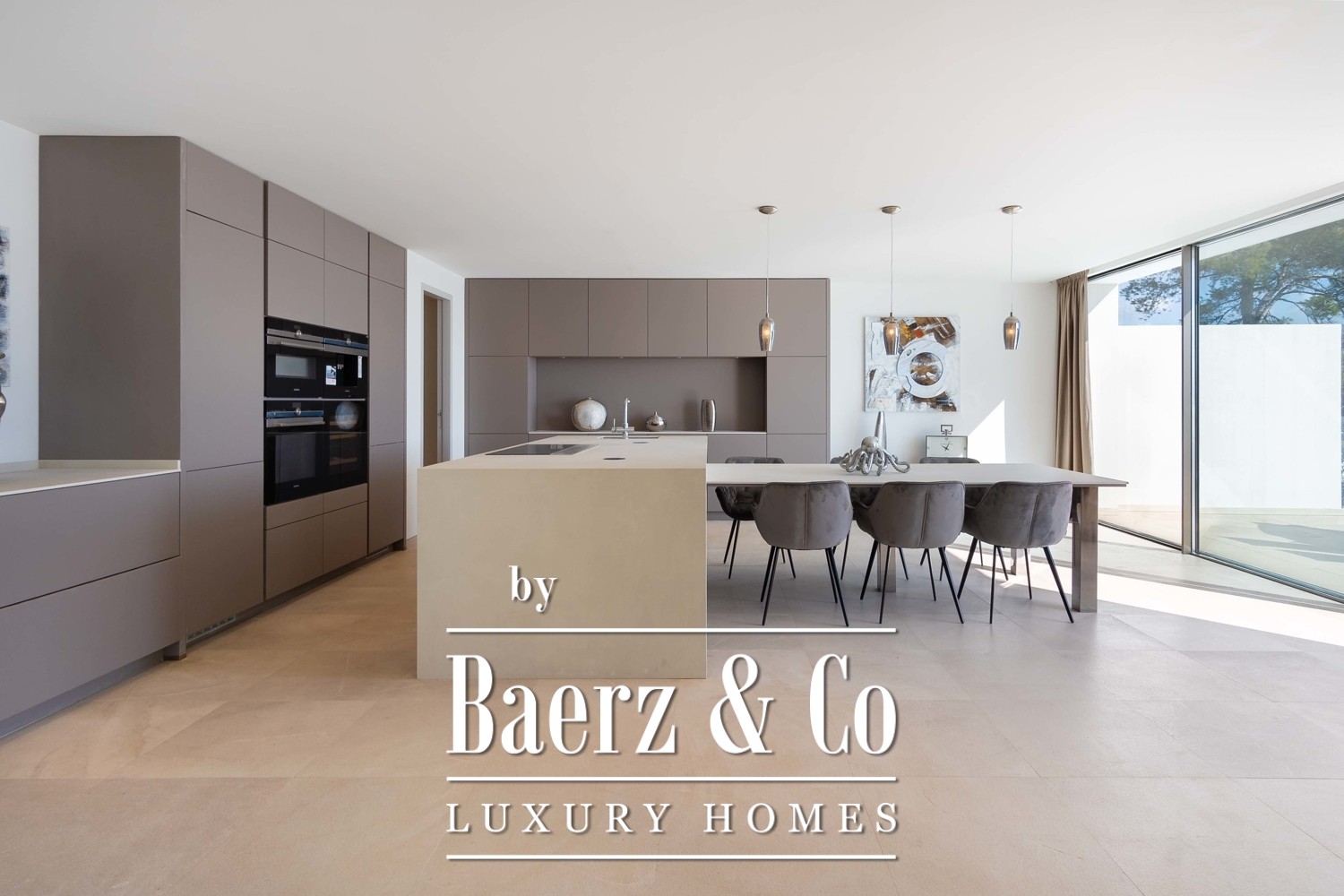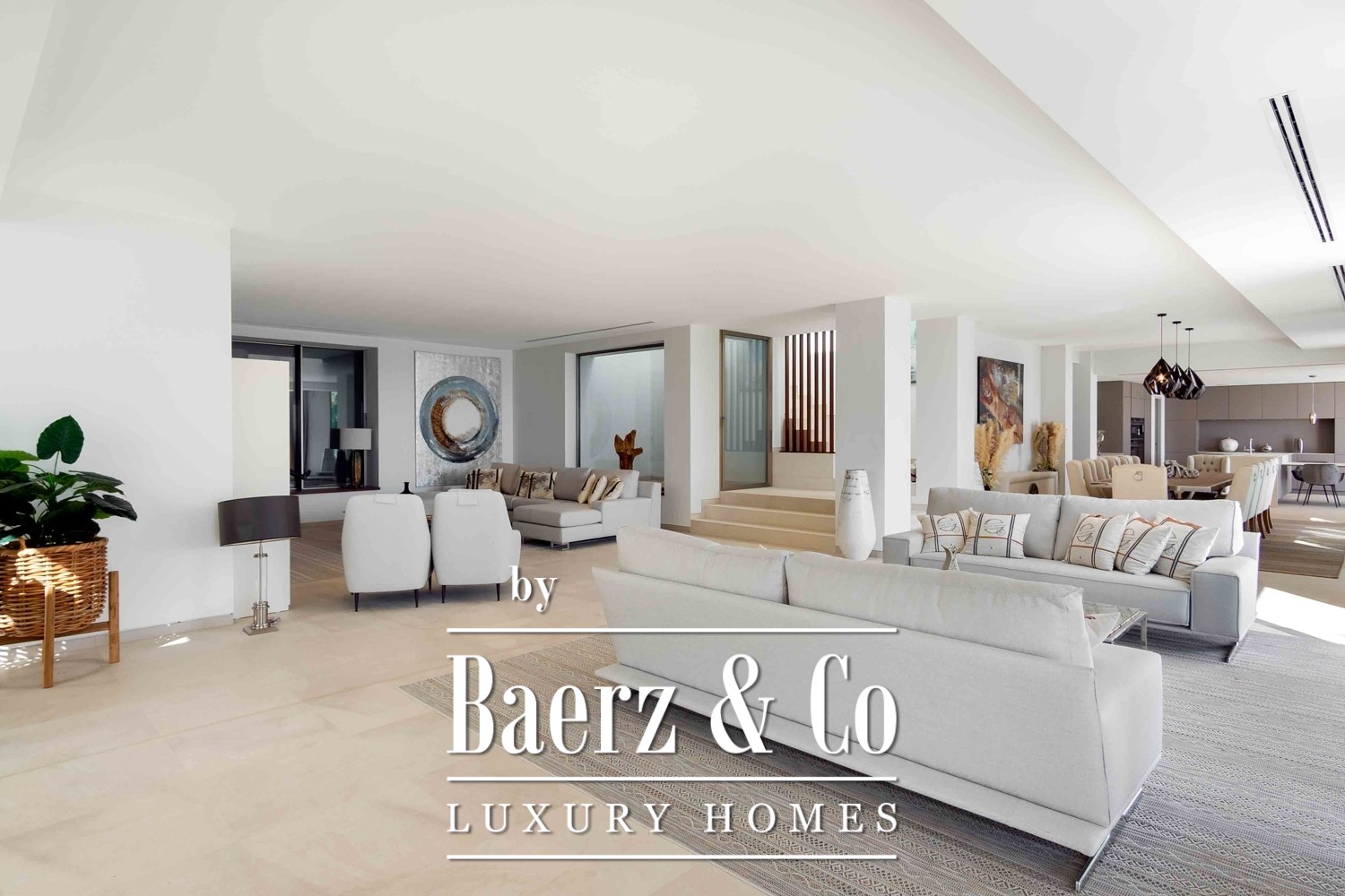 is the mesmerizing sea view that can be enjoyed from every room, immersing you in the beauty of the surroundings. In addition to its stunning interiors, the villa features a convenient garage, ensuring secure parking for two vehicles. For more information about this extraordinary property, please do not hesitate to contact us. We would be delighted to provide you with further details and arrange a private viewing.