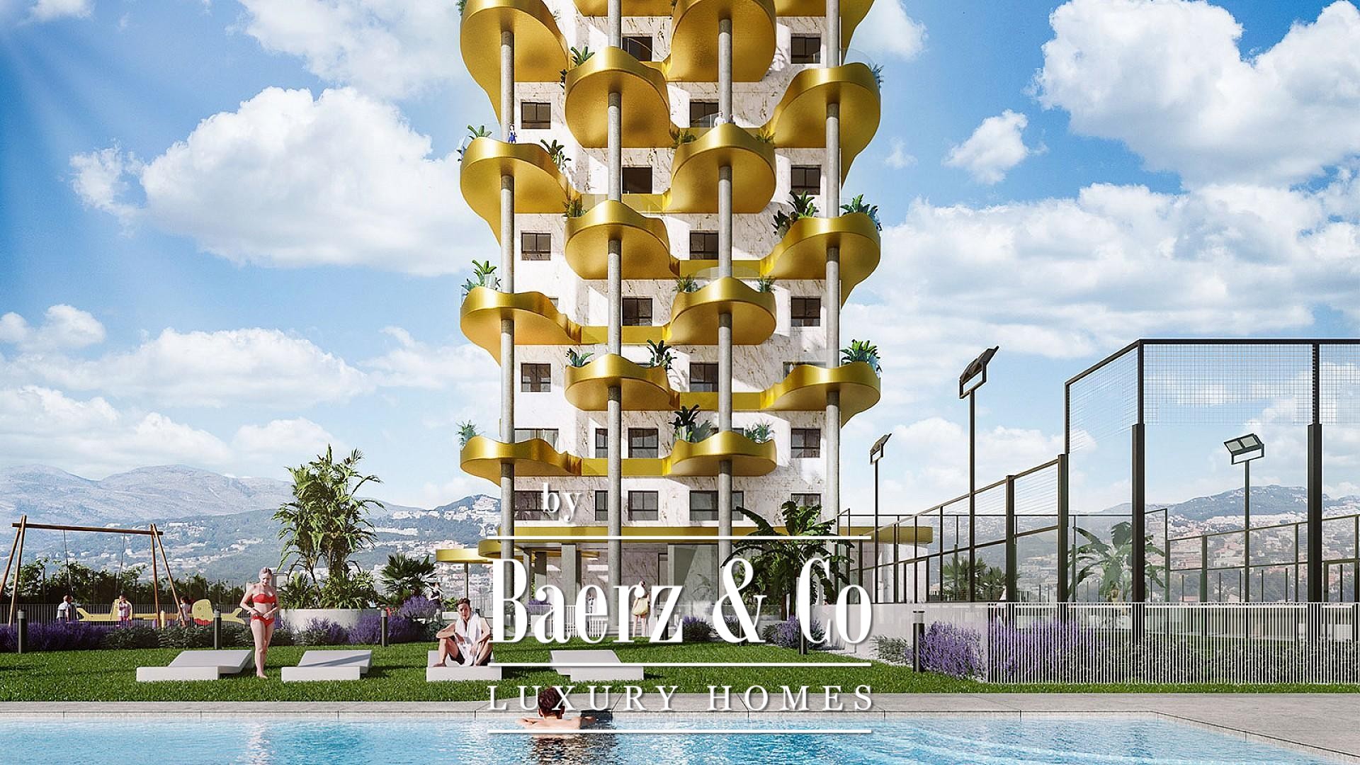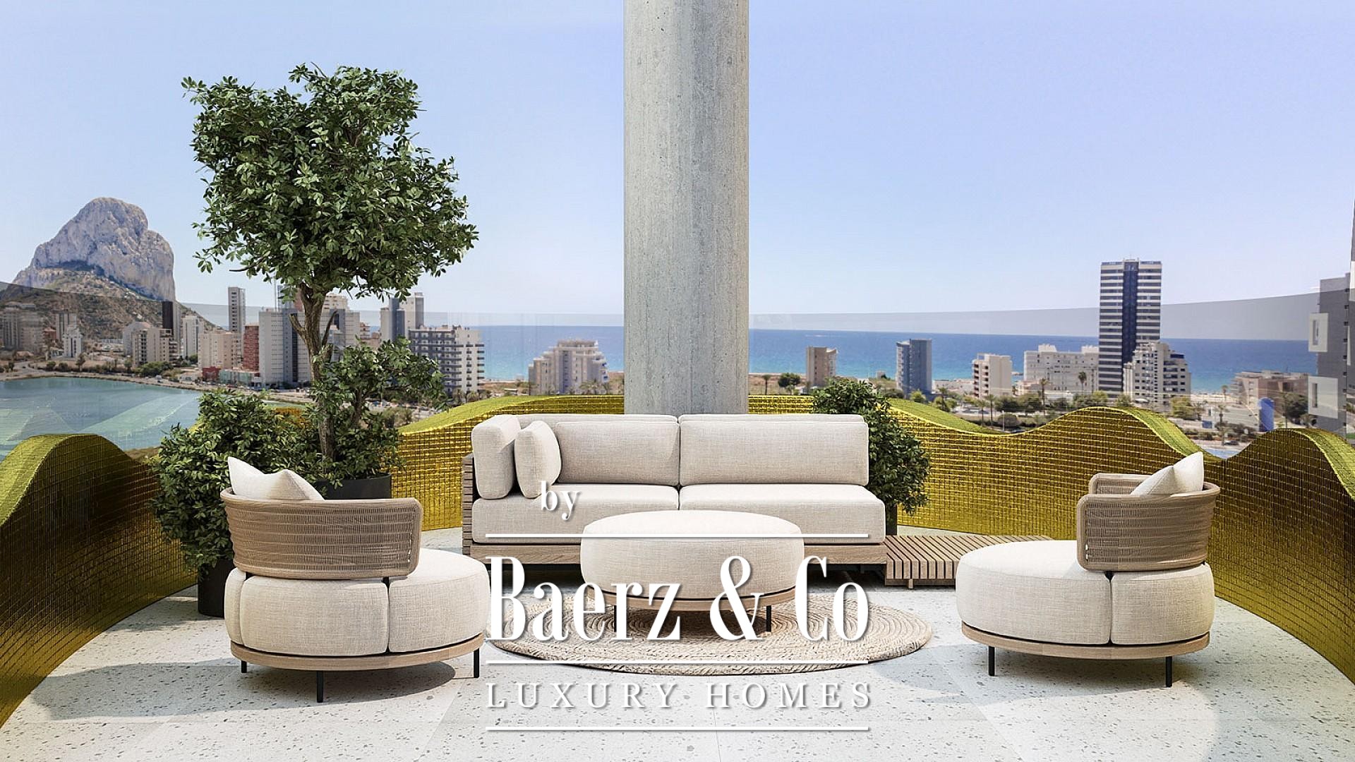 Apartment Calpe is a new expression of understated coastal luxury, set just 500 metres from the shoreline in Calpe. Located within an architecturally distinct building clad in white and gold ceramic, this residence belongs to a collection of 32 apartments distributed across 17 floors. Each home, including this 117 m² apartment, captures sweeping 180-degree views of Playa del Arenal, Playa de la Fossa, Las Salinas, and the Peñón de Ifach.