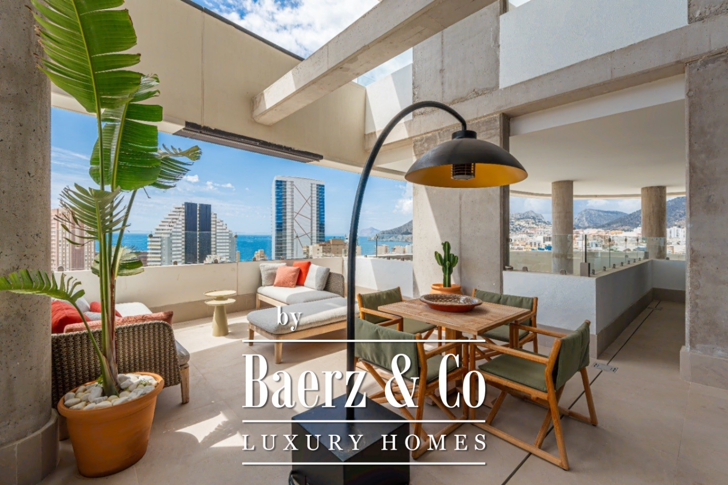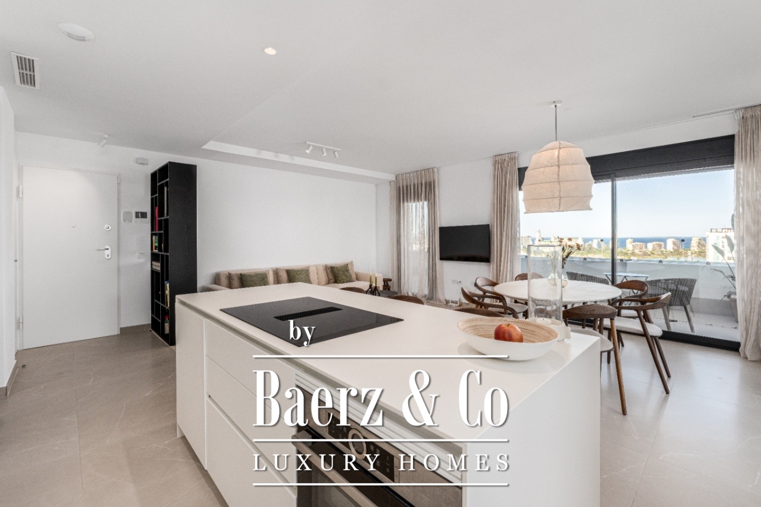 space for a jacuzzi. The penthouse has been finished with high-quality materials such as a fitted kitchen with Bosch appliances, bathrooms with underfloor heating, and windows equipped with electric shutters. The tasteful décor makes this property completely move-in ready. An underground parking space and storage unit are included, with the possibility to purchase a second parking space. In addition to its unique location close to the sea (250m from Arenal beach) and amenities, the residence features extensive communal facilities such as a 22-meter swimming pool, children's pool, playground, padel court, and fitness room.
