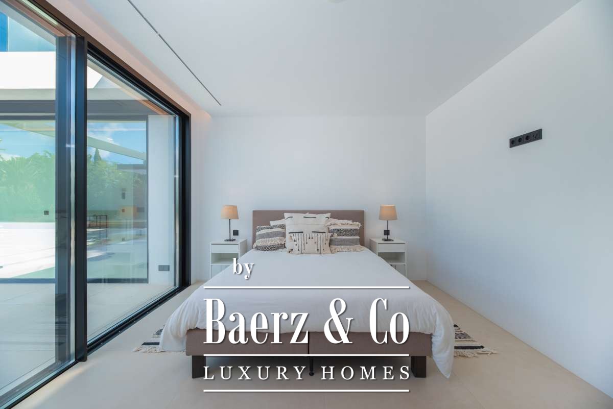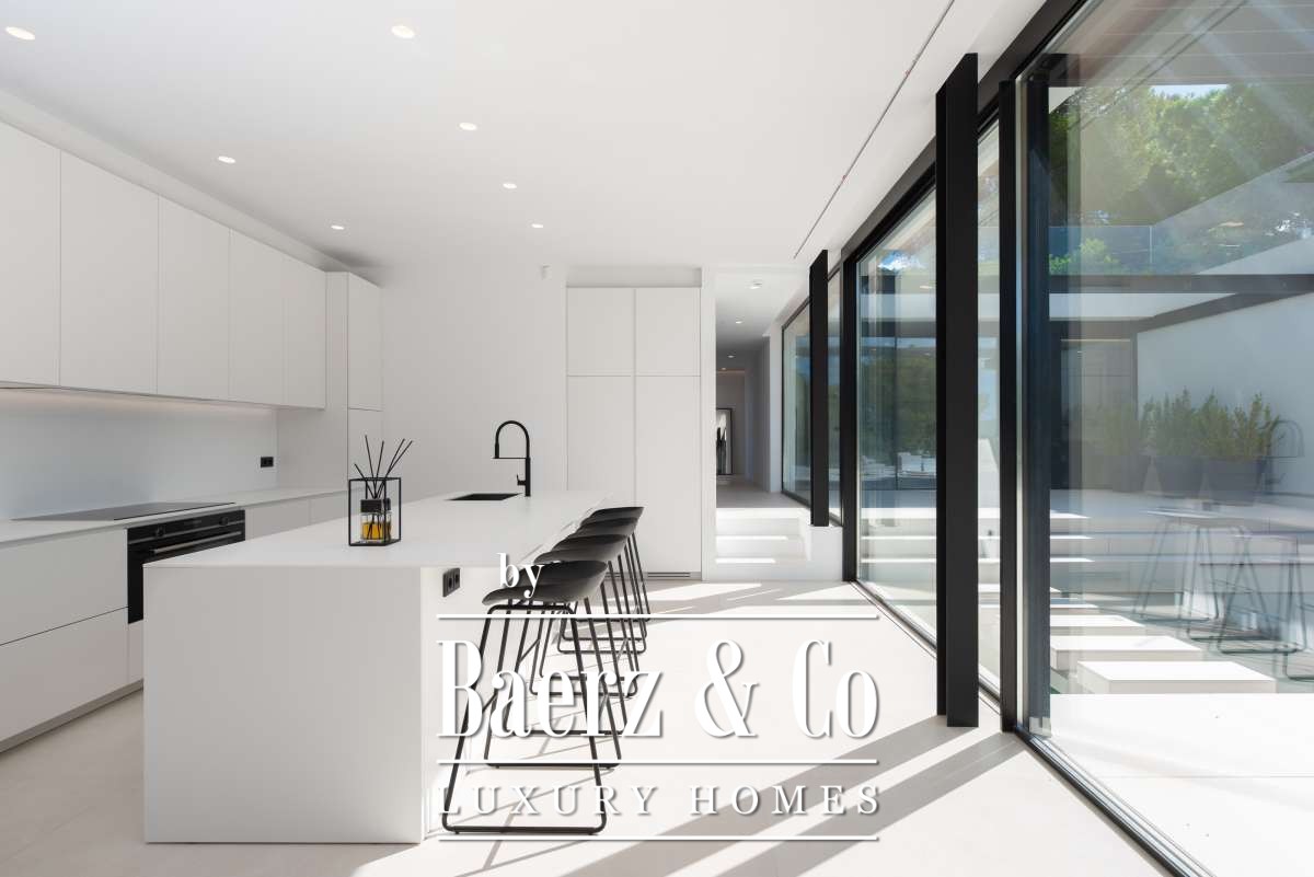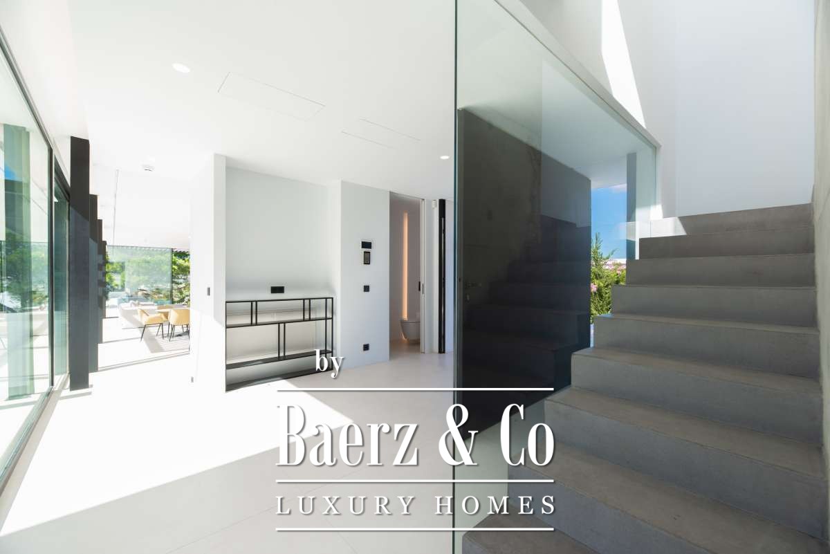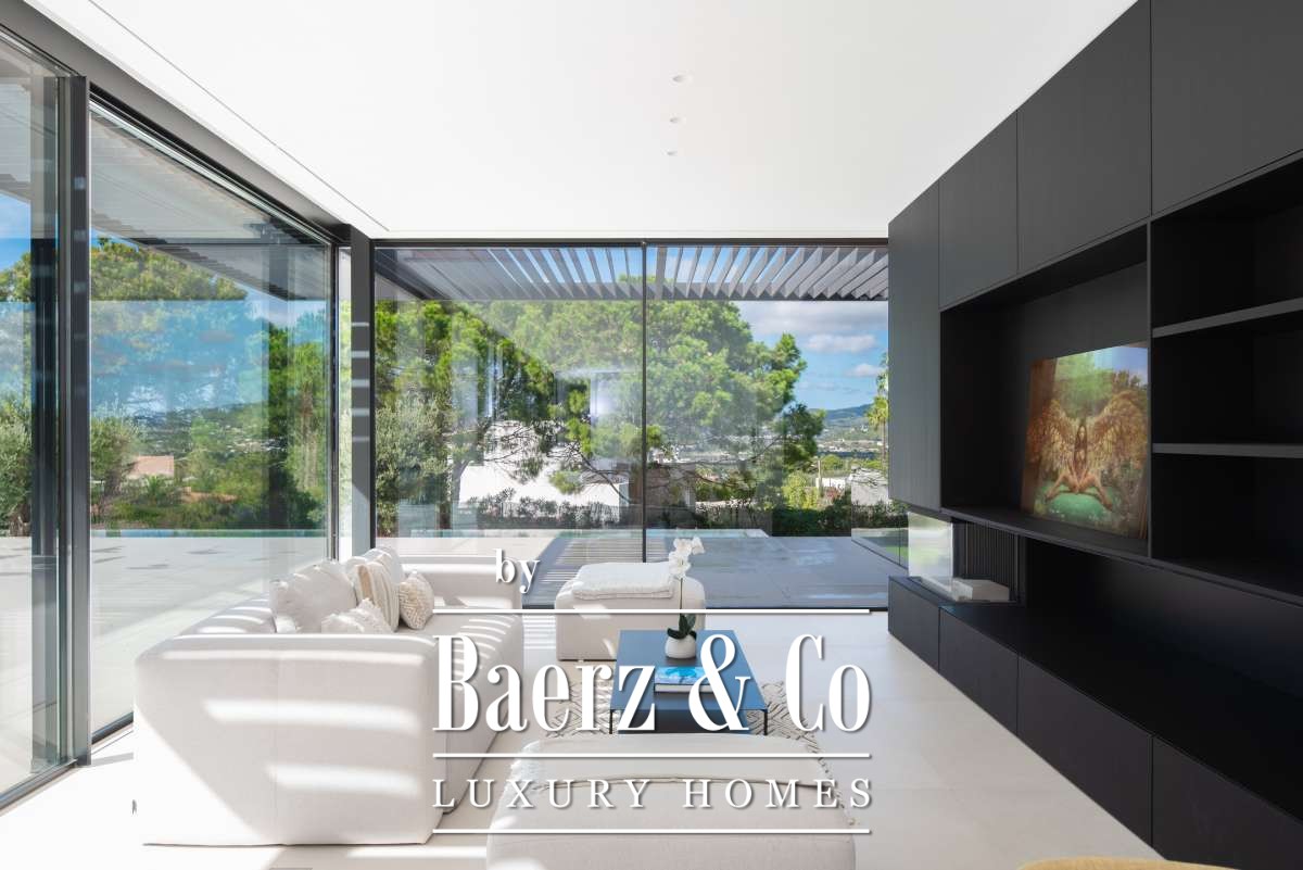Villa Can Bessó presents a statement of contemporary living in a highly sought-after residential enclave on the edge of Ibiza Town. This villa embodies modern luxury with a clear focus on space, light, and refined materials, setting a new standard among villas in Can Bessó. The 600 m² home is thoughtfully composed across two levels, featuring four bedrooms and four bathrooms, with expansive use of glass that fosters a seamless transition between indoor and outdoor spaces. The open-plan living area connects to private terraces and a balcony, drawing in the Mediterranean breeze and countryside views.