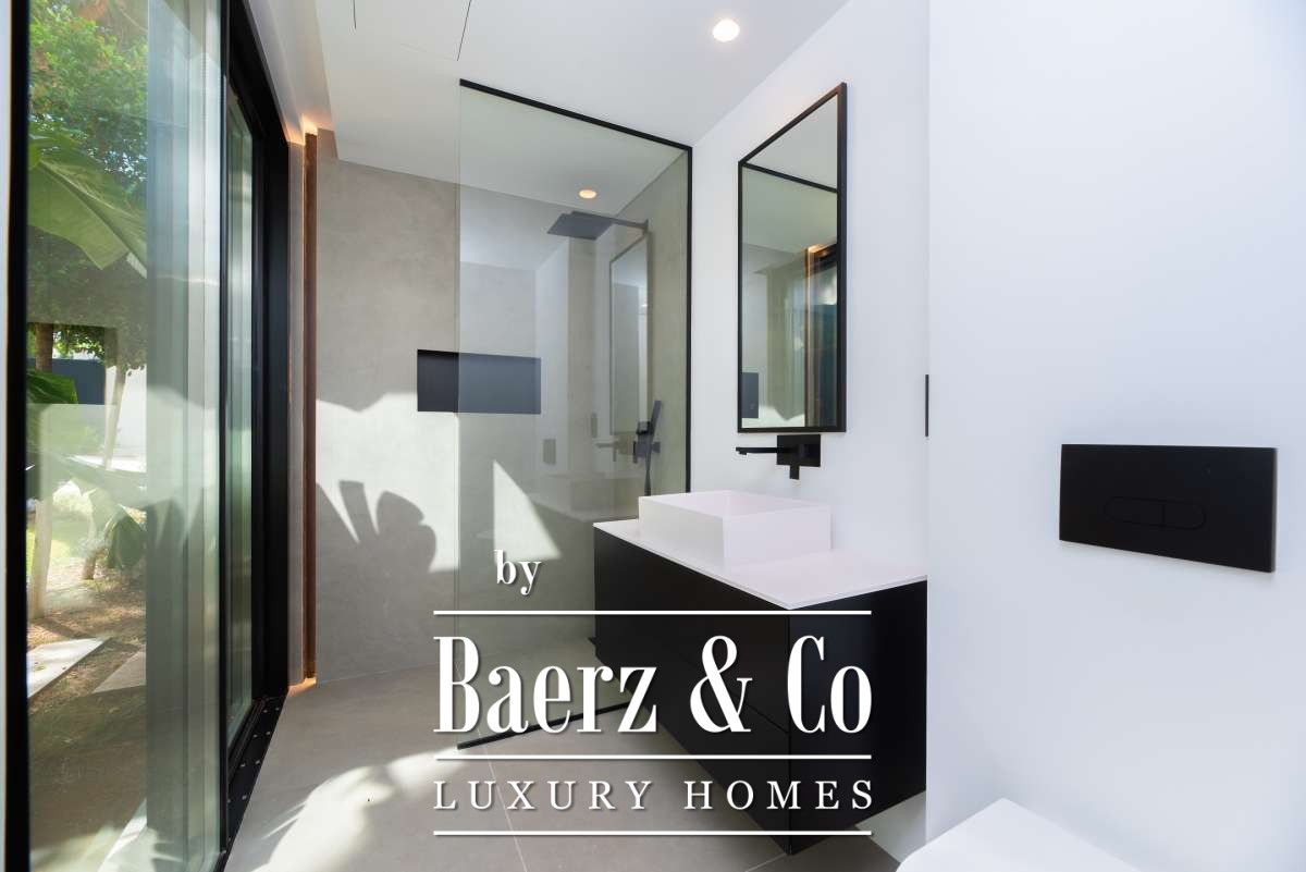 From the minimalist front garden, defined by tranquil ponds and striking Zen bonsai trees, to the spa-inspired infinity pool and lush, tropical landscaping, every outdoor vantage delivers a sense of calm. A rooftop terrace reveals panoramic views over 2,240 m² of countryside, equally suited for contemplation or evening gatherings. Inside, suites offer built-in closets, garden or terrace access, and spa-like bathrooms, while the master retreat features a designer bath and dual sinks. Smart systems provide ambient lighting and tailored climate control throughout, complemented by an integrated alarm system for security.