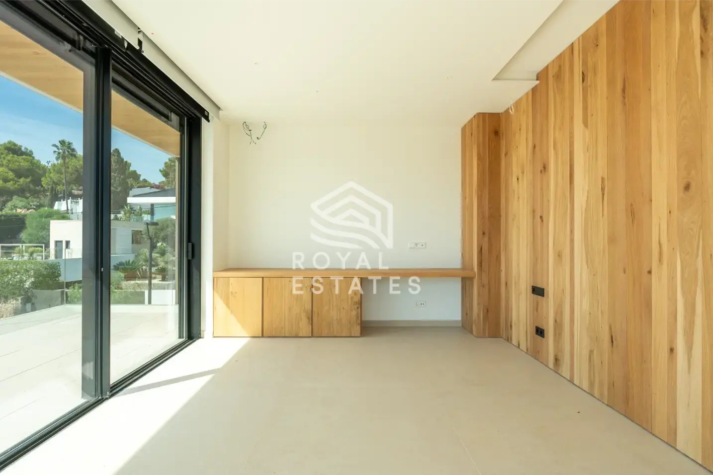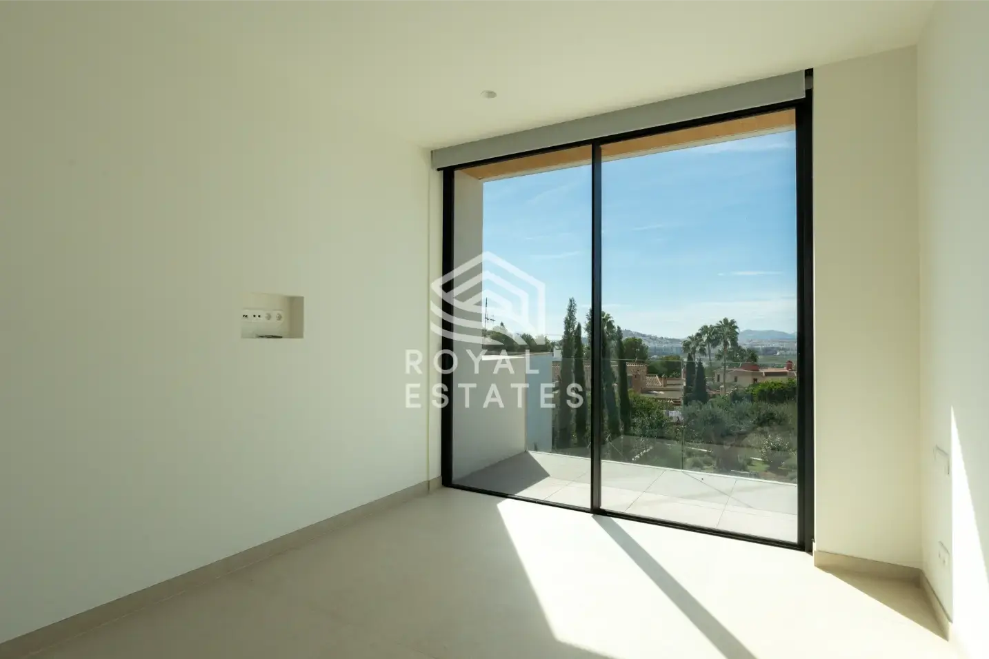 Villa Can Pep Simo offers 410 m² of contemporary living just moments from the tranquil bay of Talamanca. This villa in Can Pep Simo brings the focus keyword of refined design and location into every detail. Floor-to-ceiling windows meet natural materials throughout, fostering a bright ambiance and seamless connection between generous indoor spaces and spacious outdoor terraces. Every room is designed to maximize light, offering an atmosphere both calm and enlivened by the Ibizan sun.