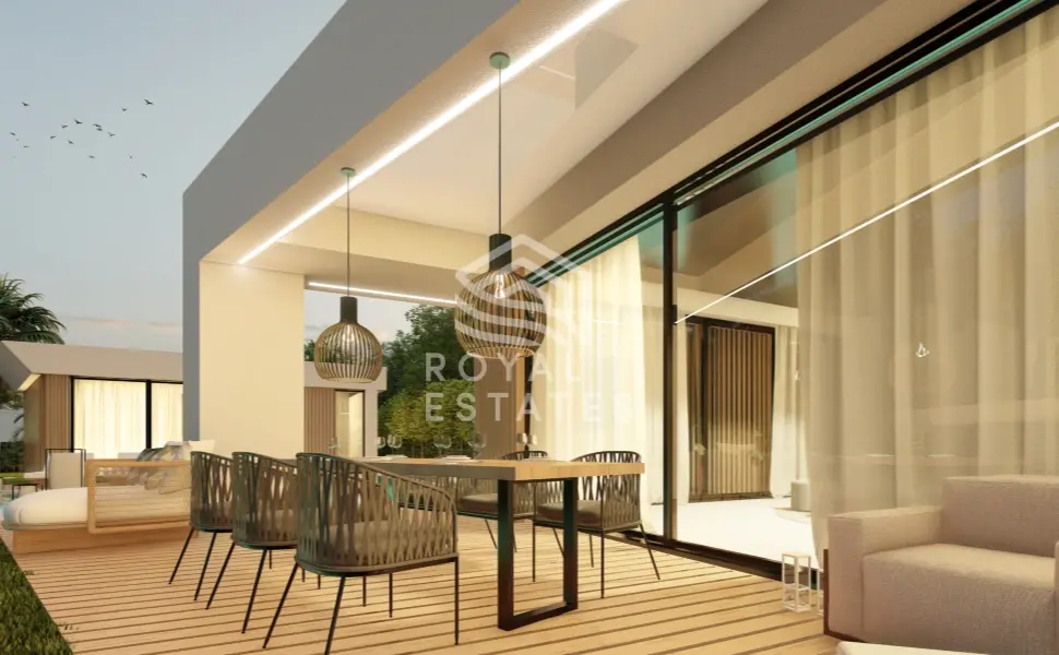 Designed for those who value measured calm and tactile quality, the villa integrates modern amenities such as air conditioning, high-speed 4G connectivity, and a fully equipped guesthouse. Terraced gardens and a private swimming pool form an outward rhythm for outdoor living, framed by panoramic Mediterranean views. The villa’s outdoor spaces are fully fenced, with barbecue facilities and wide-open lounging areas that support both intimate evenings and effortless entertaining.