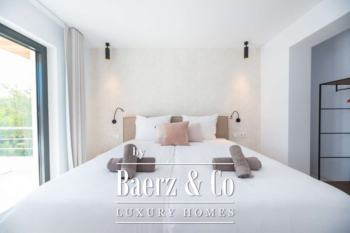 Expansive outdoor living draws the eye to the private pool and panoramic views encompassing hills and distant urban silhouettes. Multiple covered terraces, a rooftop solarium, and a landscaped garden offer layered spaces for quiet retreat or elegant entertaining. Security, garage and on-site parking, underfloor heating, and air conditioning provide year-round comfort and ease. Minutes from Talamanca Beach, Marina Botafoch, and Ibiza Town, this luxury villa for sale in Can Ramón offers the rare synergy of seclusion and connectivity. For the globally minded resident, proximity to the airport and the island’s finest amenities ensures effortless transitions between rest and worldliness.