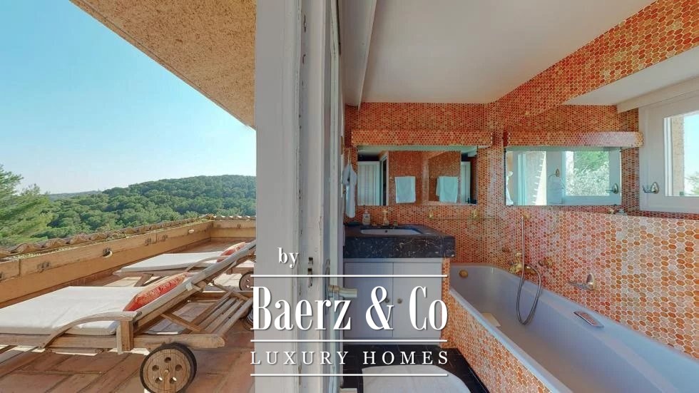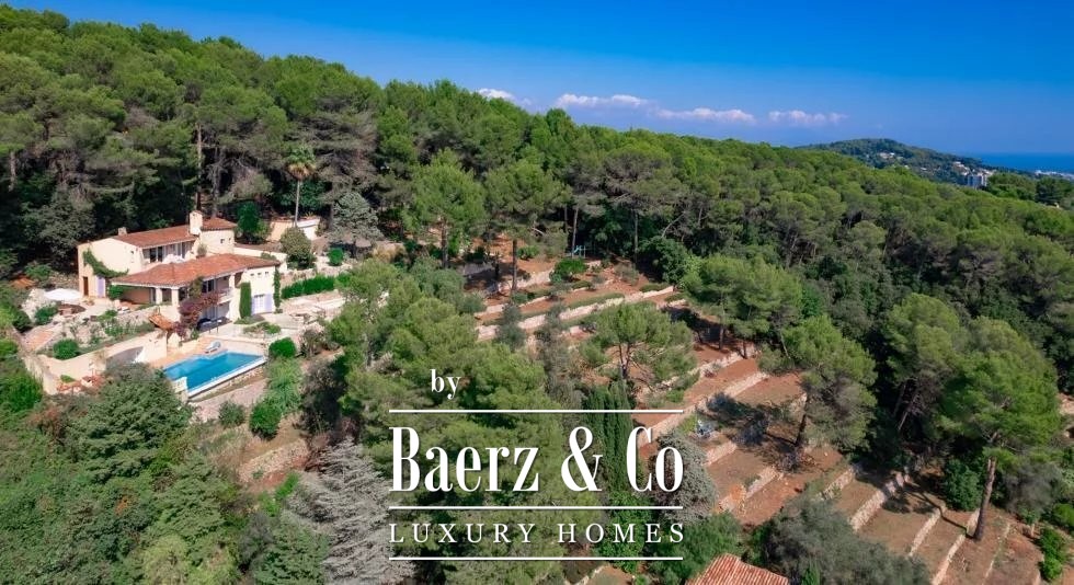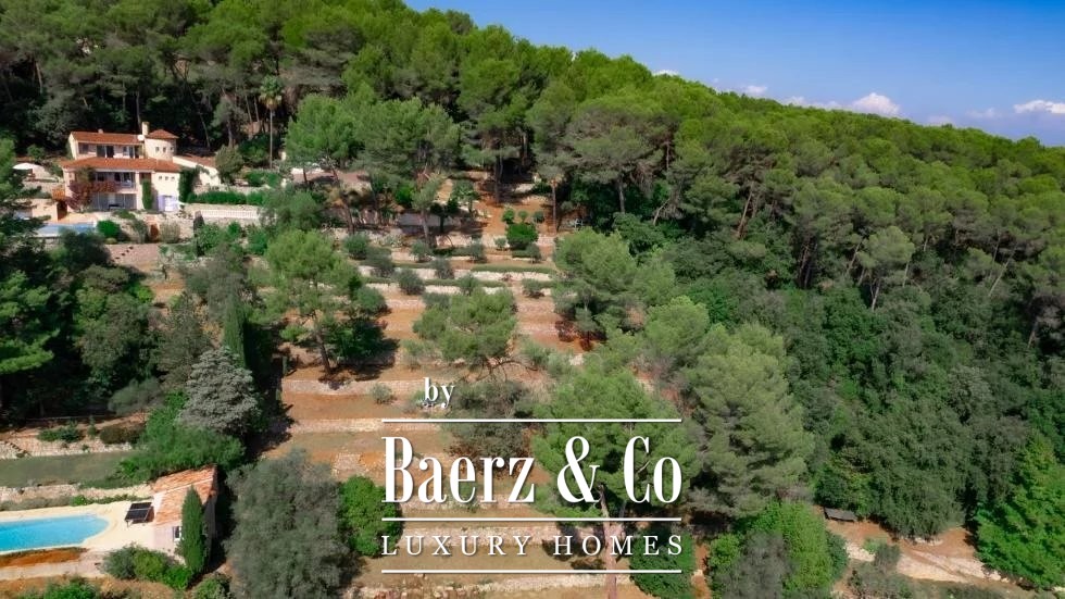 Close to Cannes, 14 minutes from the Croisette, magnificent property with panoramic views till the sea in the heart of a 25,000m2 park.