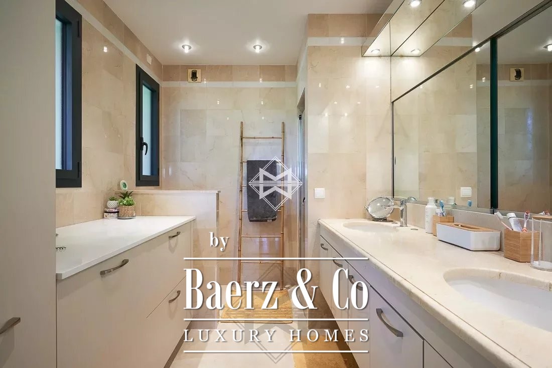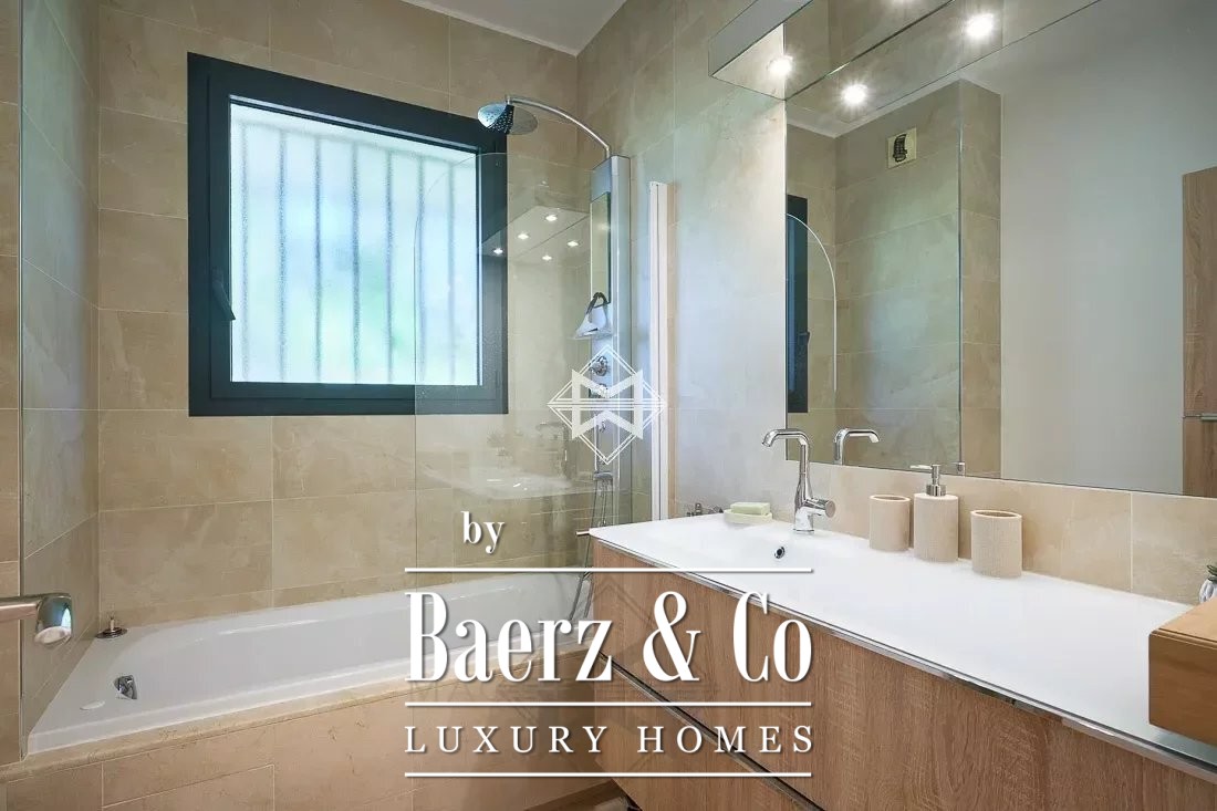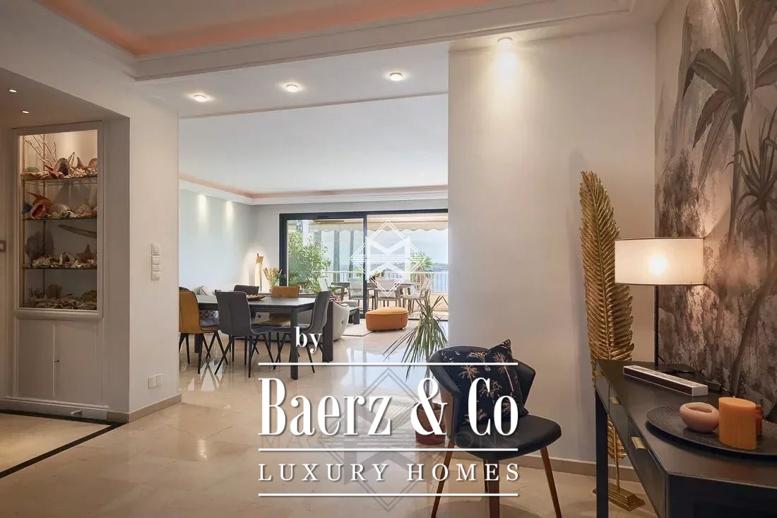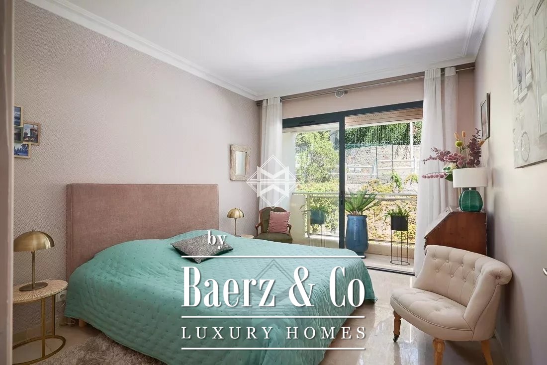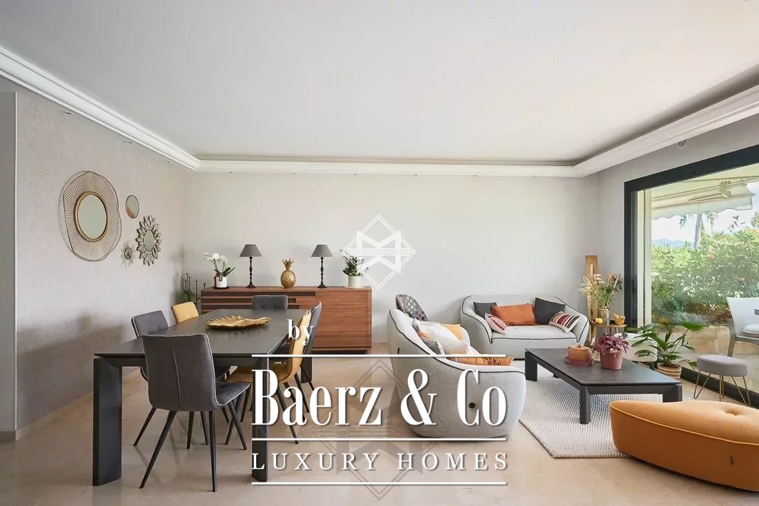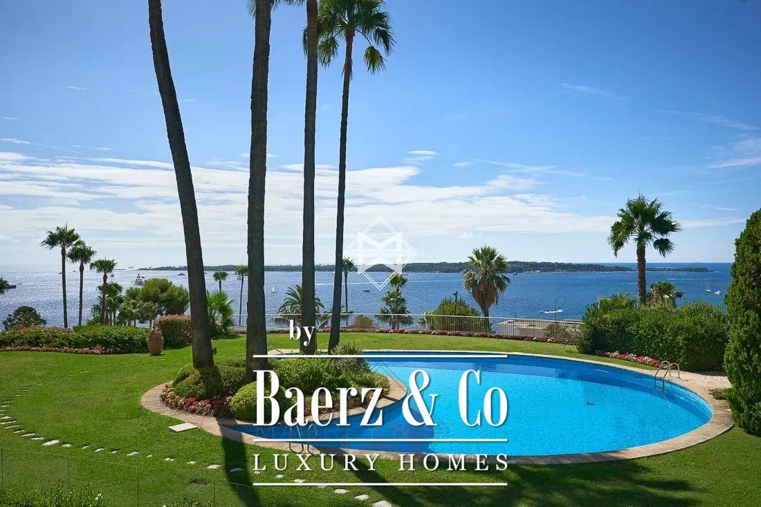 With a beautiful view on the sea and the islands of Lerins, the swimming pool and the garden