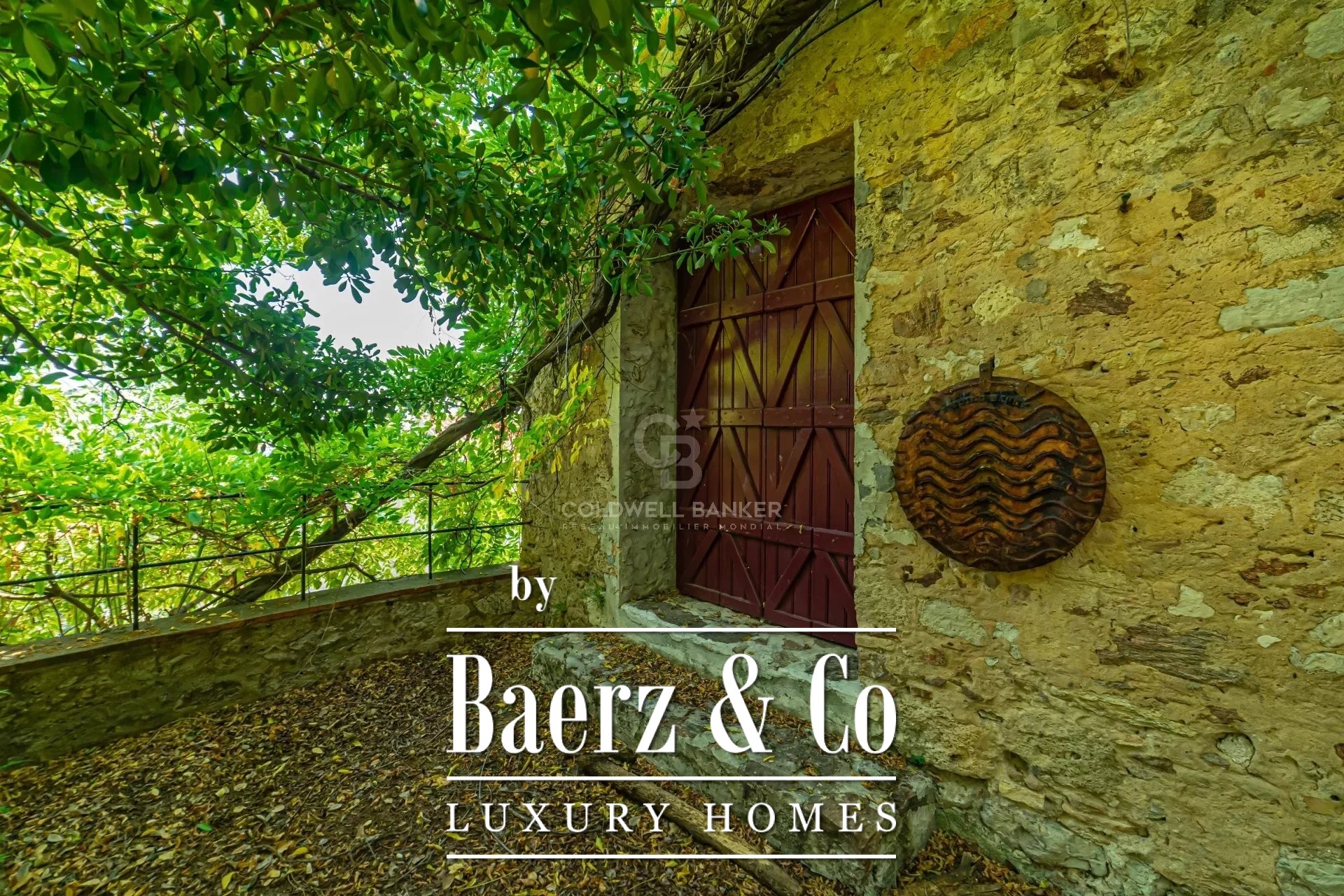 and three showers and a bathroom. The property also includes a small independent house consisting of a living, a kitchen and a bedroom with shower. Lovely garden of sqm 1171. Exceptional panoramic Seaview!