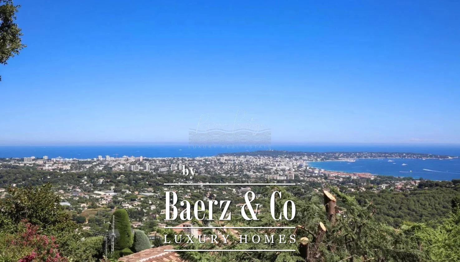 On the heights of Golfe Juan, halfway between Antibes and Cannes, bright Provencal villa with a panoramic view of the sea and the Cap d'Antibes. The villa offers on the ground floor an entrance, a living room with a fireplace, a dining room, and a fully equipped kitchen, all rooms have