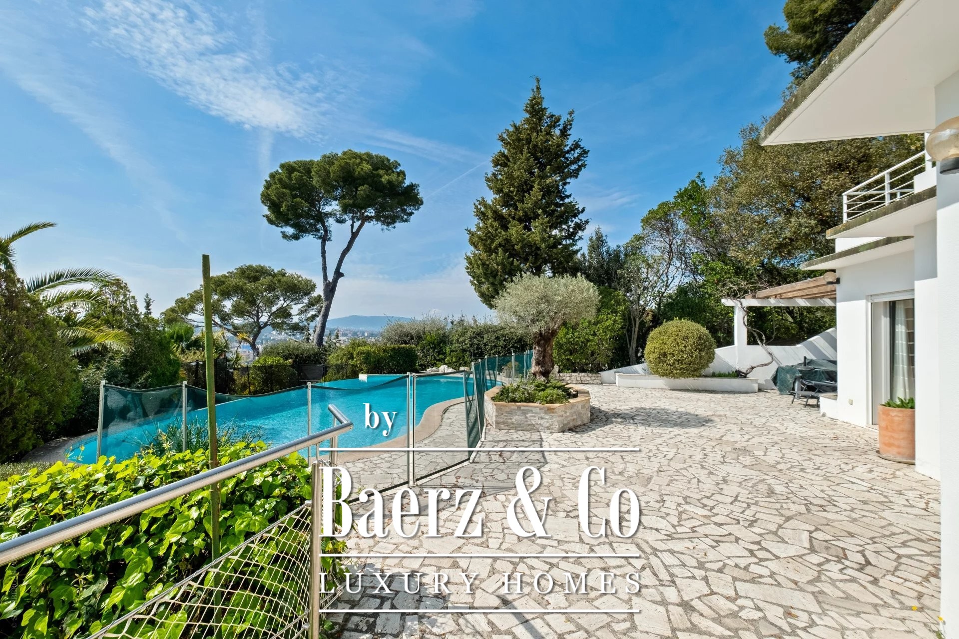 Superb Californian style villa located in a residential area of ​​Cannes with a magnificent panoramic view of the sea and the bay of Cannes.
