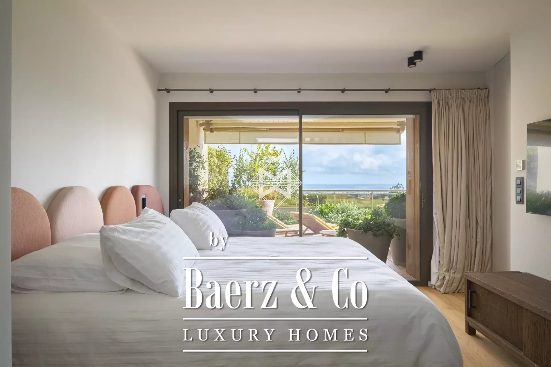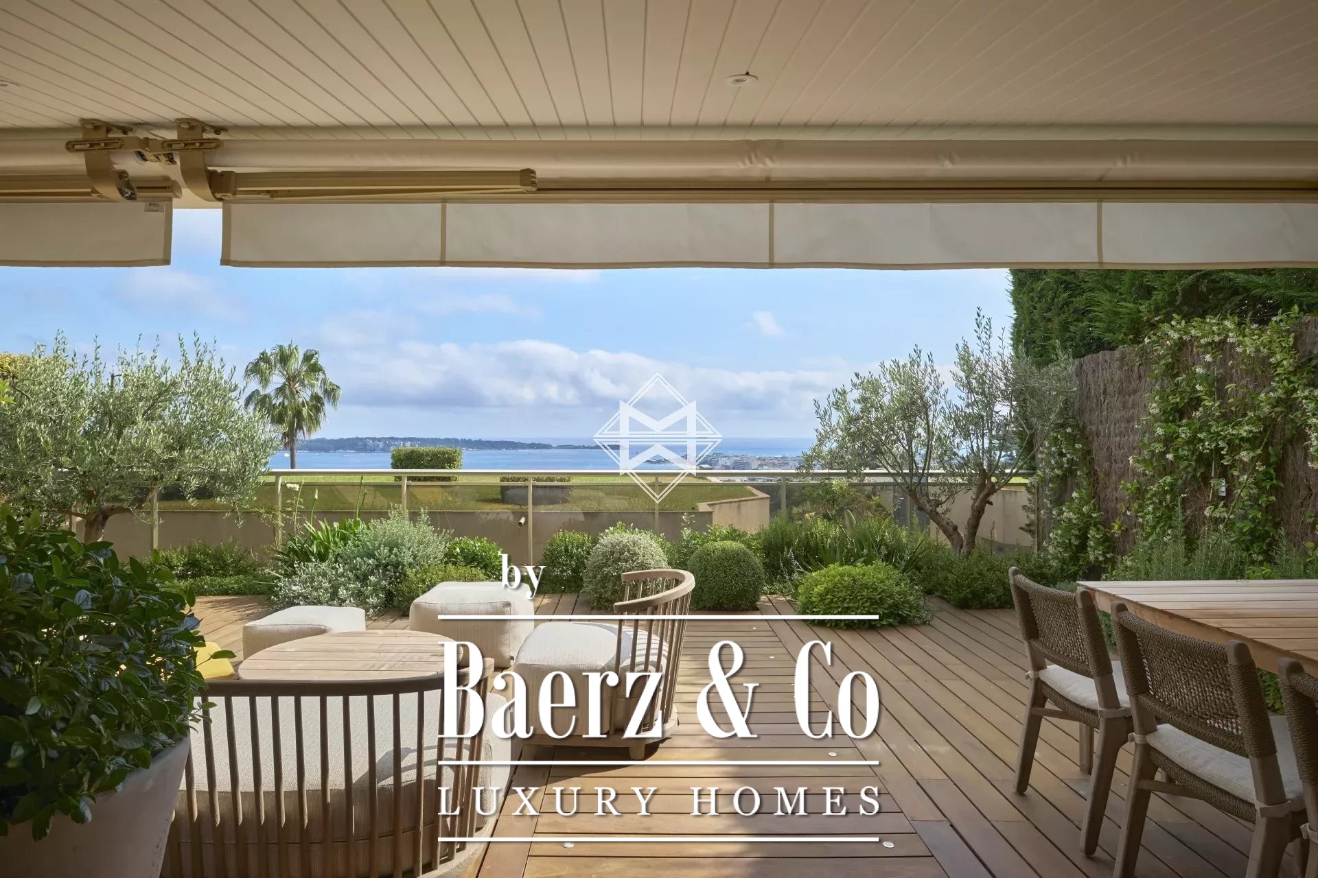Apartment Cannes offers a setting where Mediterranean light and panoramic sea vistas set an elegant tone. This renovated residence, located in the sought-after California district, occupies 81 m² and features a south-facing aspect that captures sweeping views over the Bay of Cannes, the Lérins Islands, and the Estérel hills. The apartment’s layout flows from an inviting entrance to a luminous living space that integrates a fully equipped open kitchen. Floor-to-ceiling glass opens onto a 57 m² furnished terrace designed for quiet contemplation or convivial gatherings above the city’s coastline.