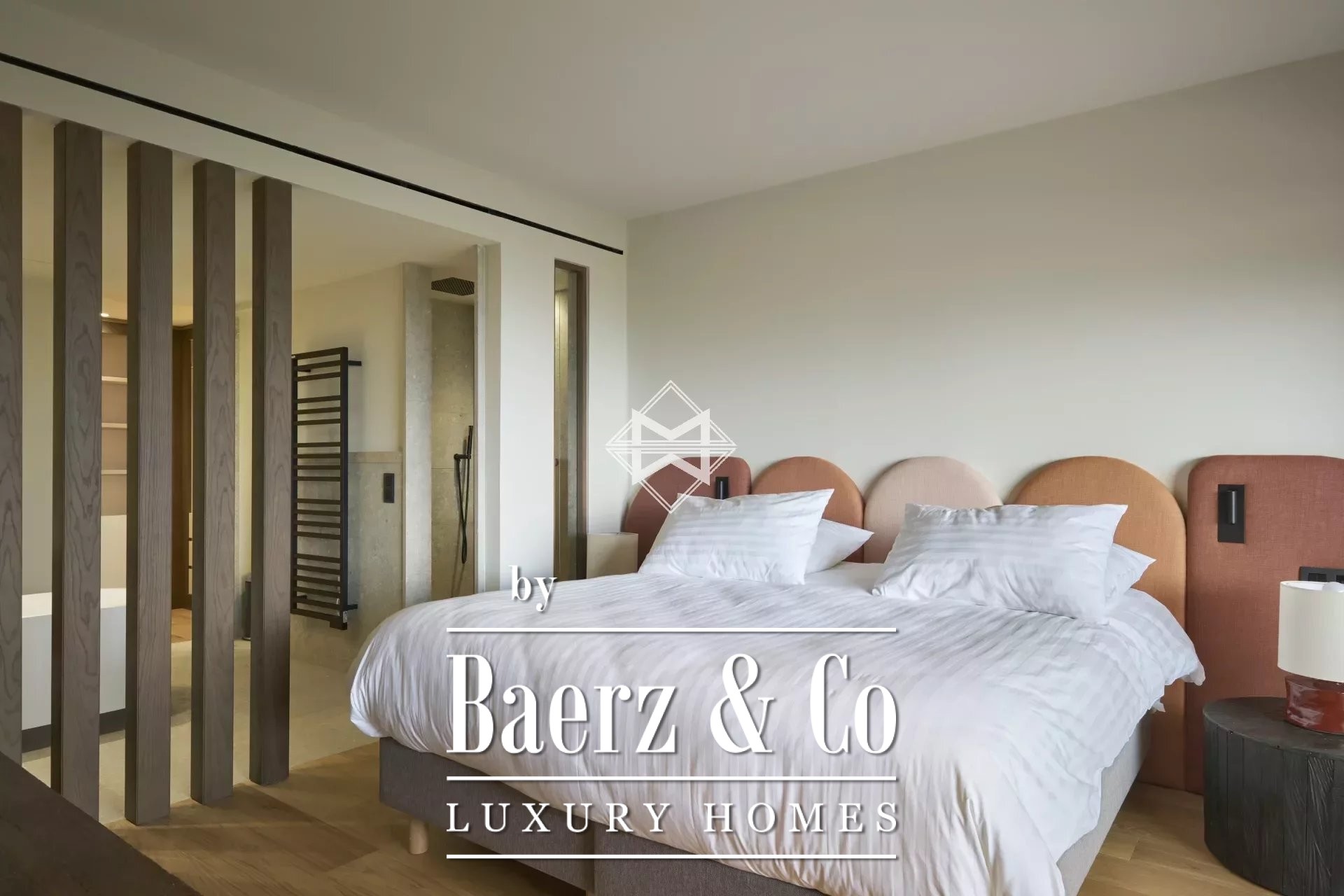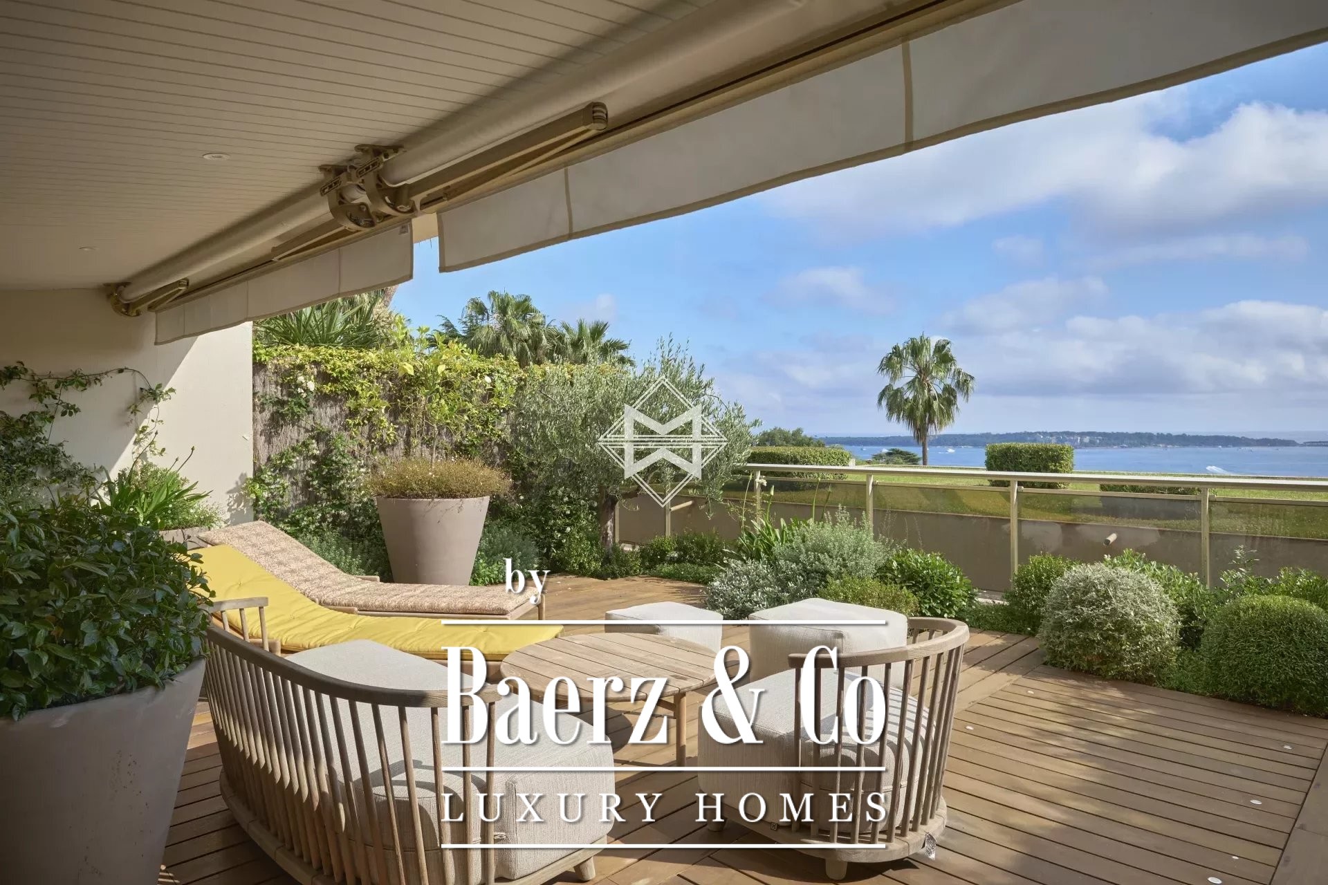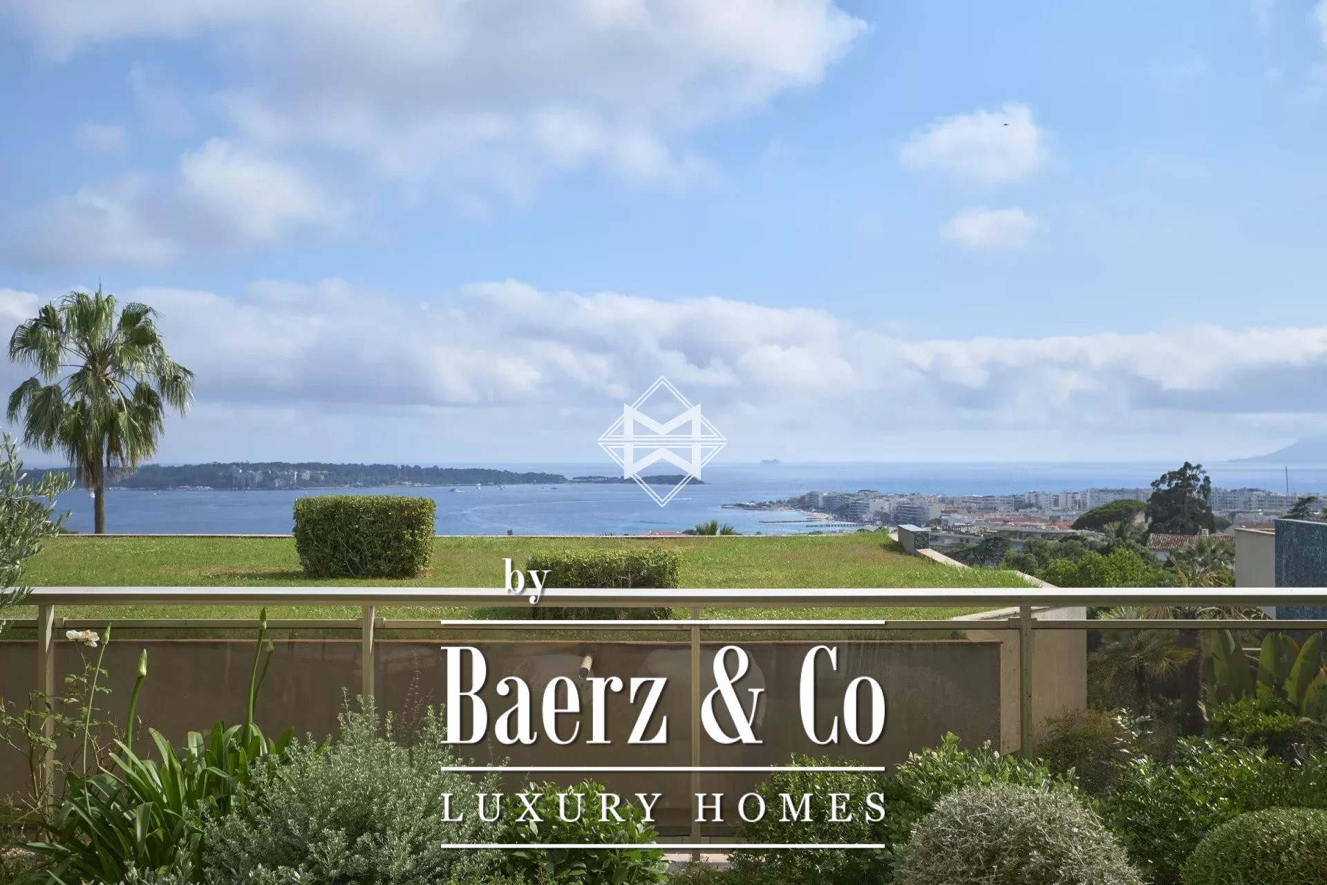 Two en-suite bedrooms, each with either a bathroom or a shower room and a dressing room, provide privacy and comfort. Discreet storage, a guest toilet, and refined finishes such as air-conditioning, double glazing, and automated systems underscore the apartment's thoughtful amenities. The secure residence features a caretaker, video security, a superb park, a swimming pool, and a tennis court for an elevated daily rhythm. A cellar and a closed garage complete the offering. This luxury apartment for sale in Cannes blends effortless living with rare Mediterranean perspective.
