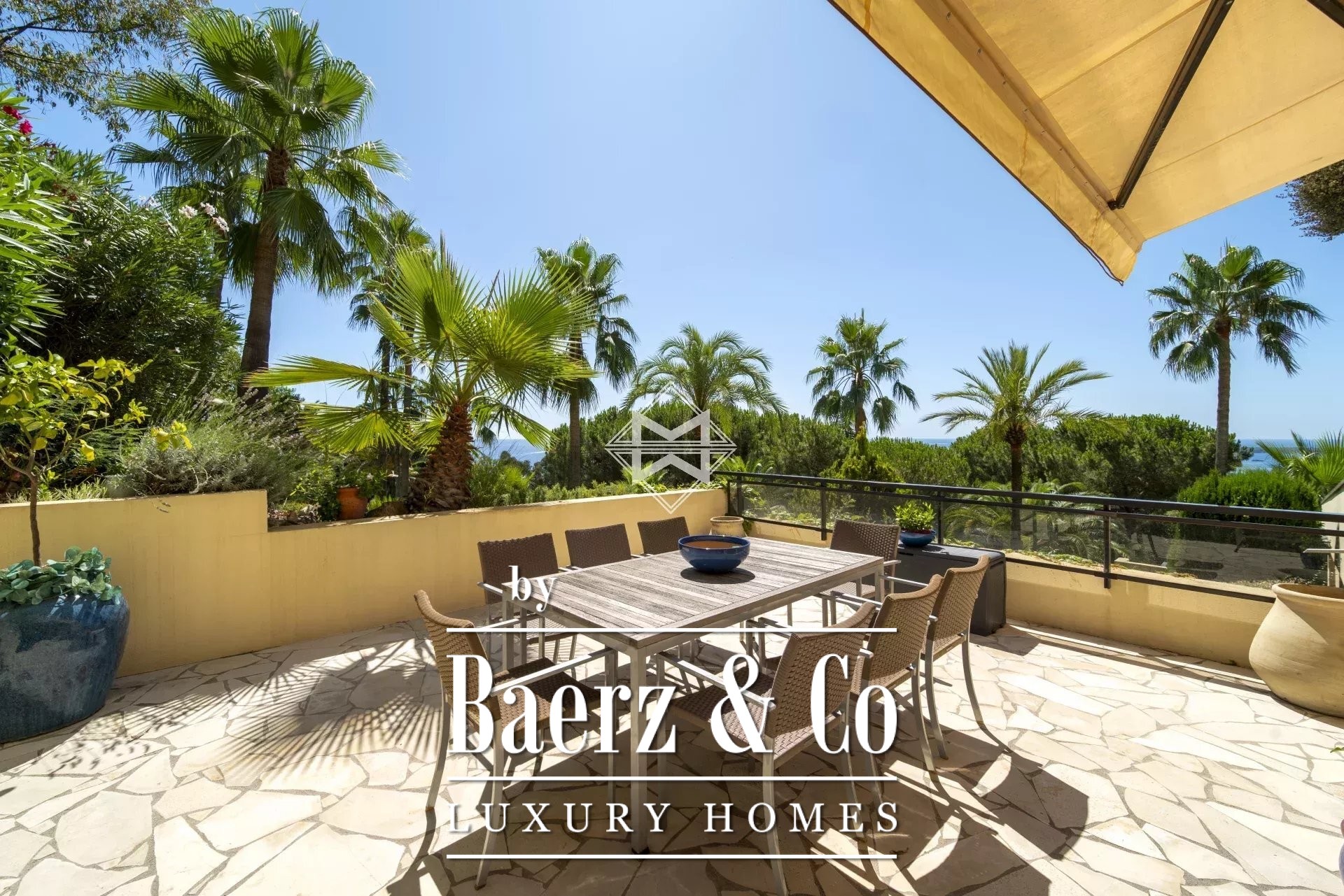 Nestled in this lush and tranquil environment, a fully renovated 1-bedroom apartment of 67.51 m² is offered for sale. It features a spacious, light-filled living room opening onto a south-facing terrace of 16 m², as well as a 30 m² east-south facing garden terrace. The property enjoys spectacular, unobstructed views of the sea and surrounding nature.