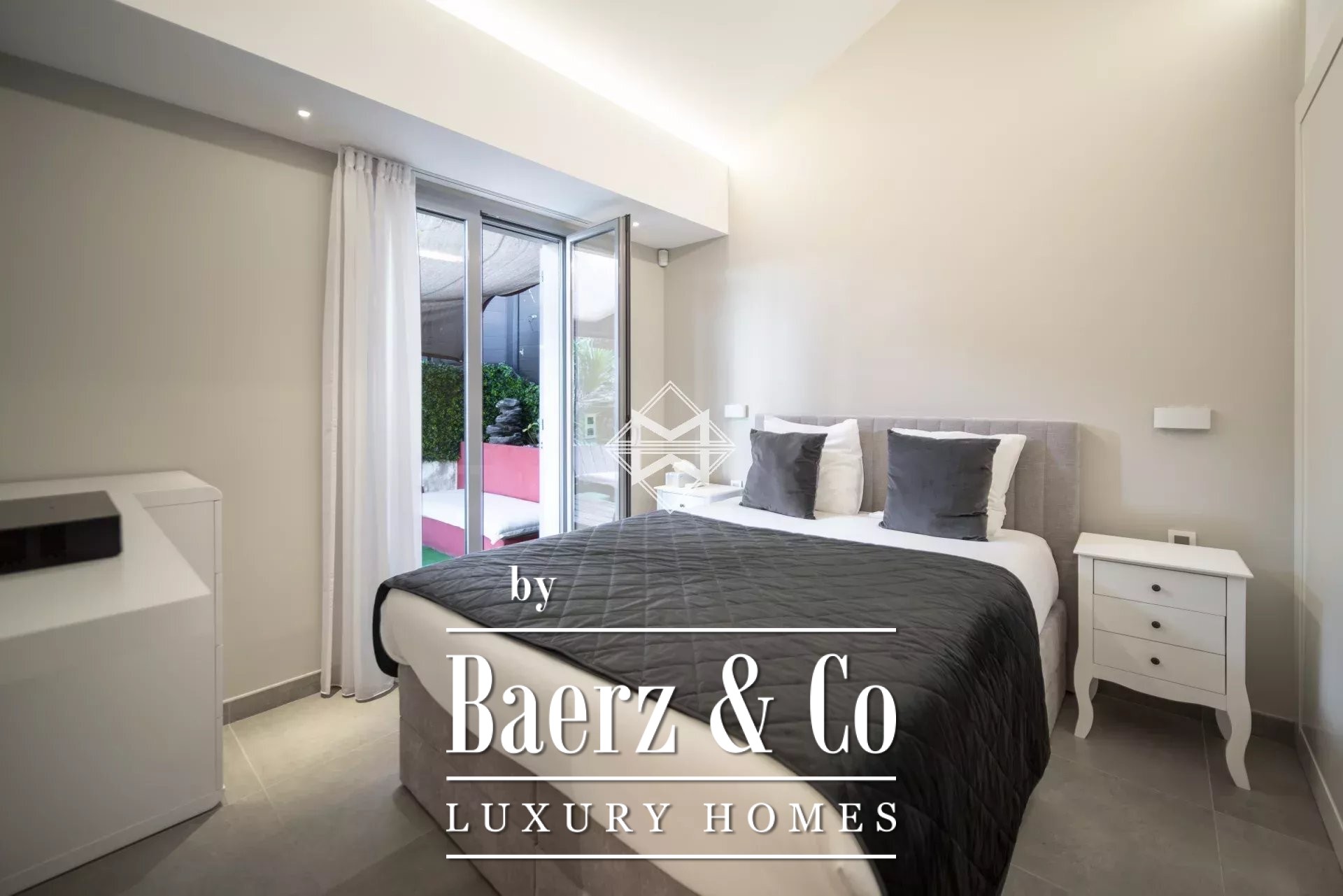 House Cap-d'Ail offers a contemporary retreat just moments from Monaco, defined by clean modern lines and a thoughtful indoor-outdoor flow. This house Cap-d'Ail stands on a 383 m² plot and provides 90 m² of air-conditioned living space, sold fully furnished for immediate enjoyment. Large windows in the living area frame an uninterrupted view of the open sea, imbuing each day with natural light and a sense of ease. The open-plan kitchen, seamlessly integrated and equipped with Miele appliances, anchors the main living space.