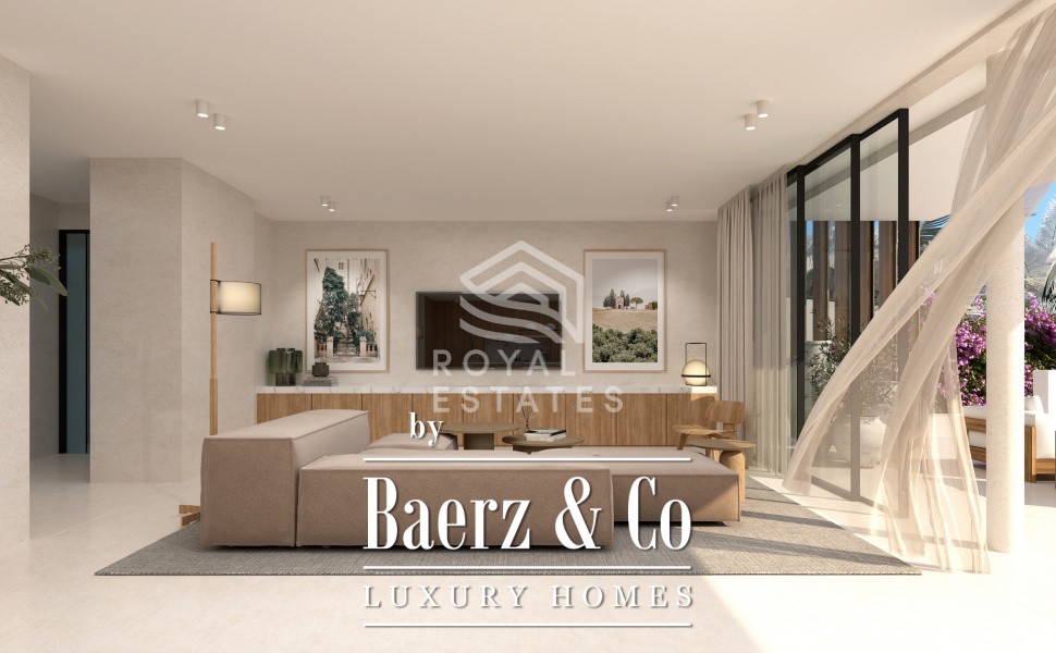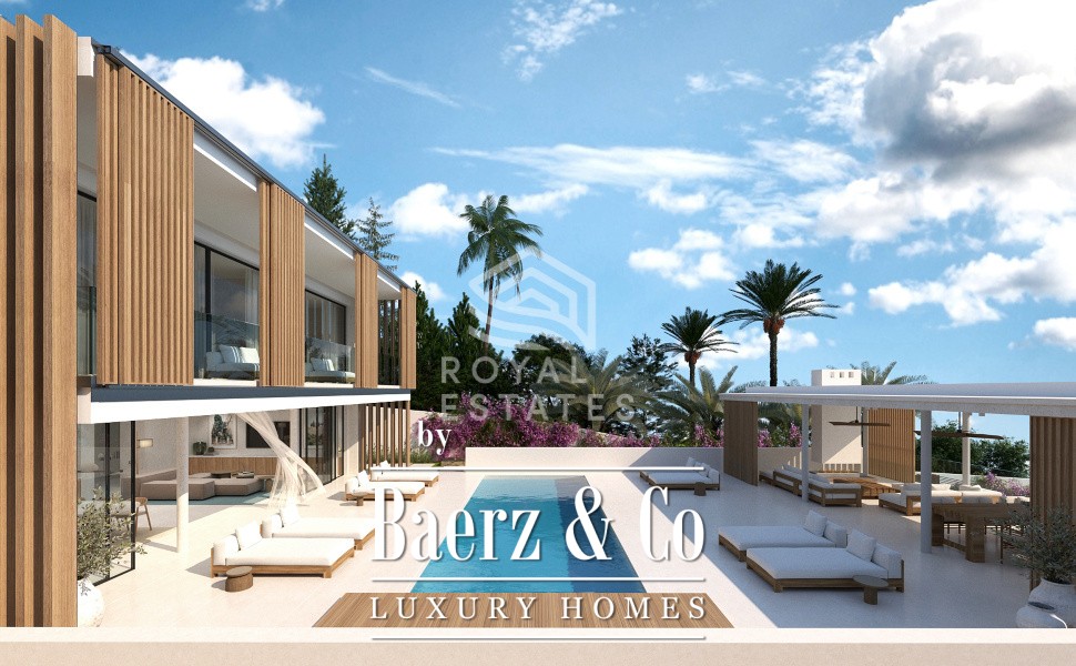 The setting balances tranquility with access, moments from the bay of Talamanca and the vibrant atmosphere of Jesús. During the construction phase, there is the opportunity to select bespoke finishes, tailoring materials and details to individual preference. For those seeking a luxury villa for sale in Cap Martinet, this property offers pure sea horizon and a sense of effortless sophistication.
