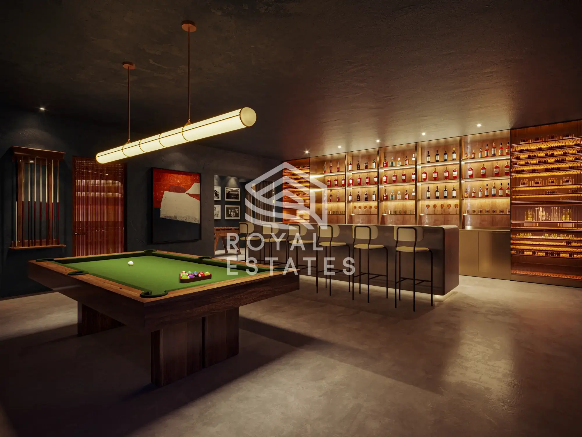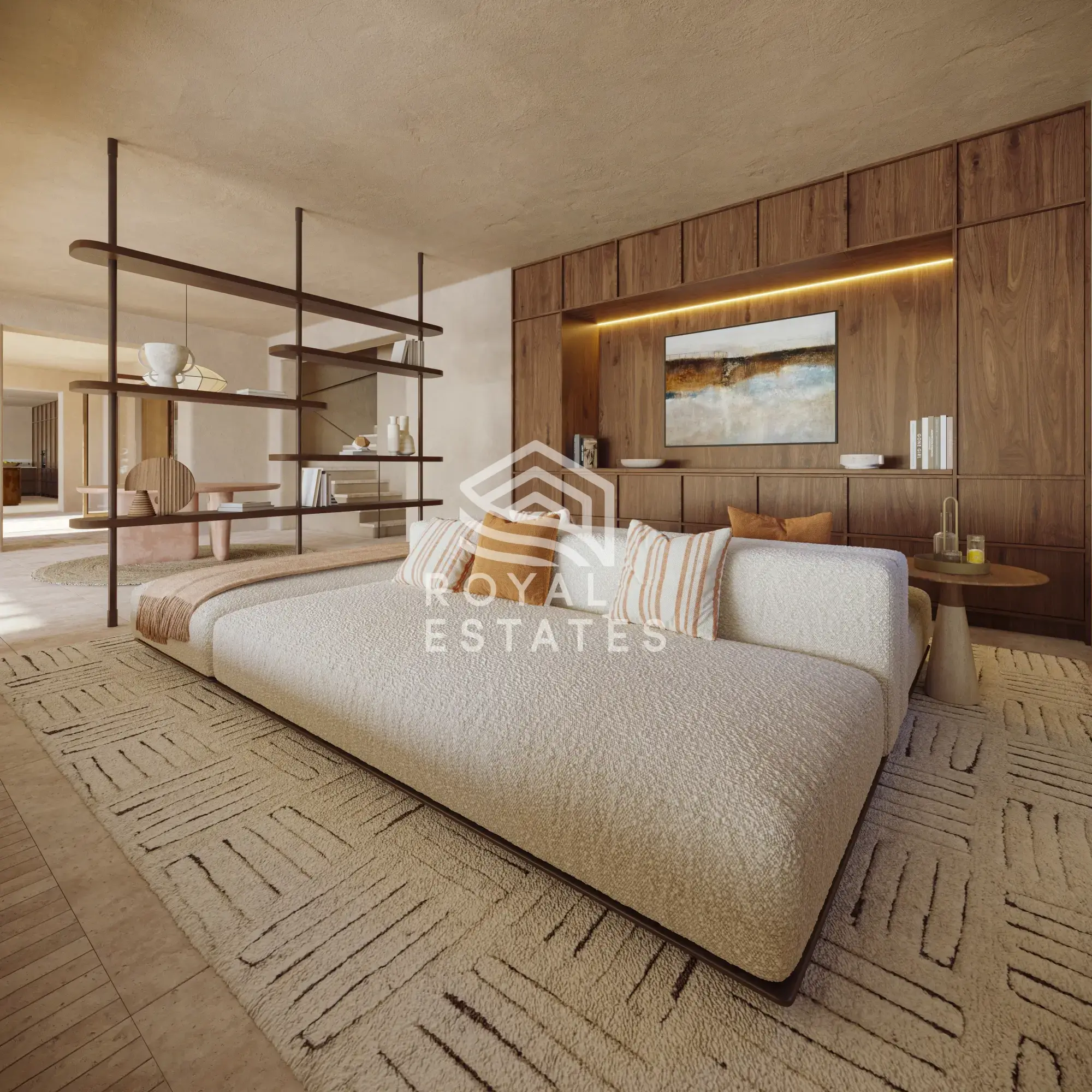 Offering 731 m² of internal space across a 1,439 m² plot, the villa has been harmoniously integrated into its Mediterranean setting. Each of the six bedrooms features an en-suite bathroom, ensuring comfort and privacy for guests and residents alike. The principal suite commands sweeping outlooks and direct access to outdoor terraces. Purposefully planned open living areas invite natural light, heightening the sense of transparency and openness throughout.