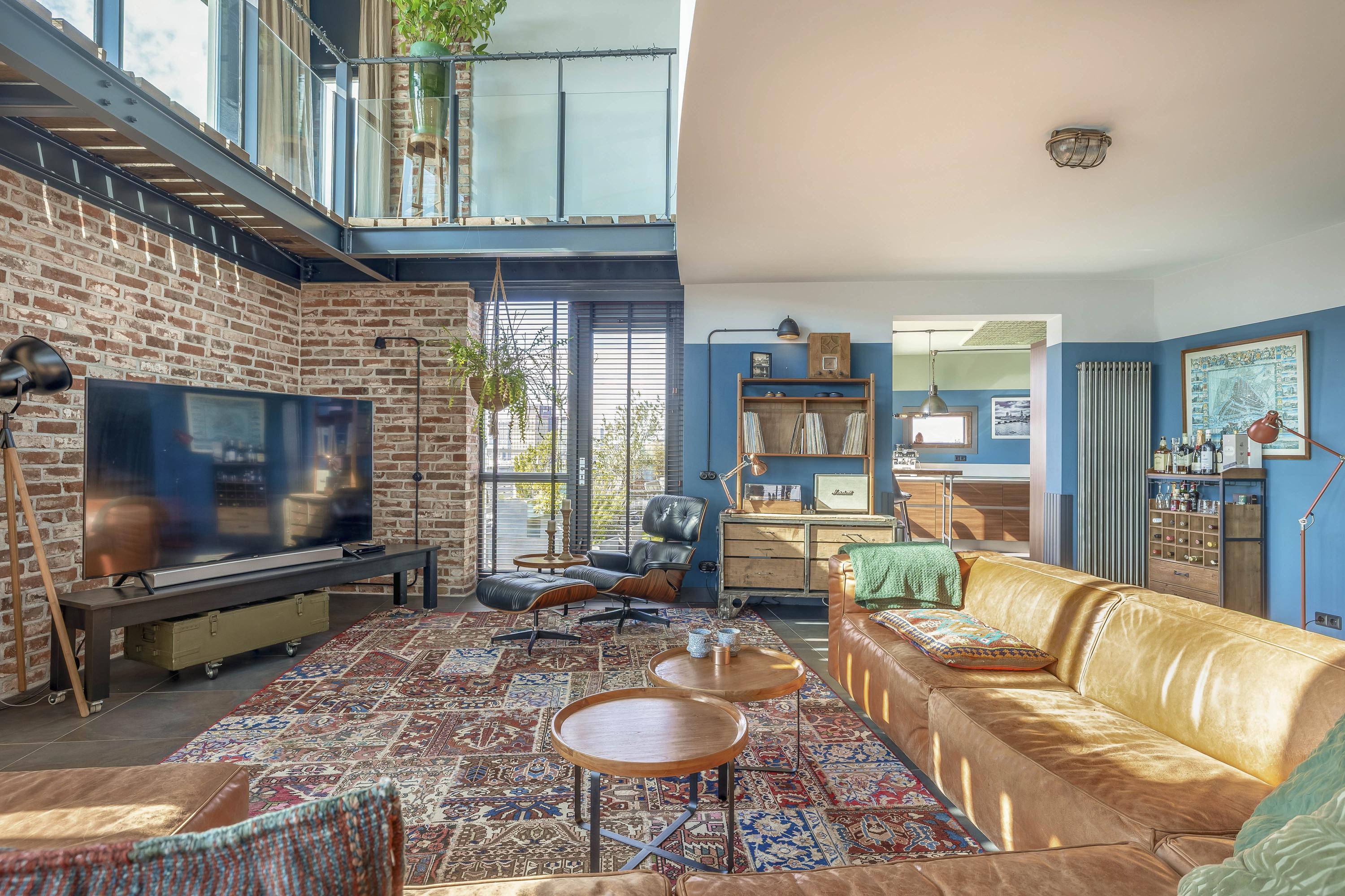 This is far from a standard apartment – it's a well-designed, loft-style living environment with a playful layout, soaring ceilings, and an impressive amount of natural light. The stylish Italian stone flooring with underfloor heating runs throughout the main level. In the living area, the outdoor views are phenomenal, while inside, atmosphere and comfort are perfectly balanced.