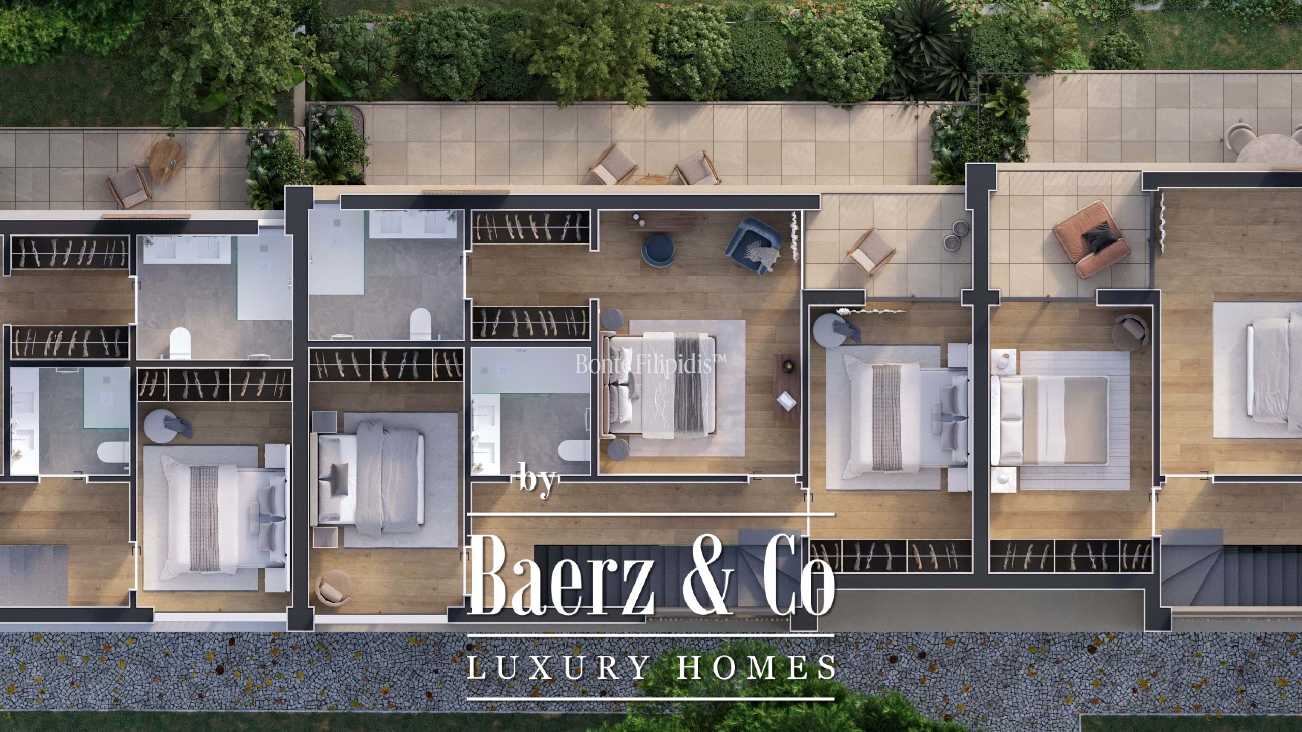 On the first floor, the master suite is distinguished by the elegant walk-in closet, complemented by two additional bedrooms and a support bathroom, carefully designed to meet the demands of family life. The top floor offers a versatile multipurpose room, accompanied by a full bathroom and direct access to a large terrace, a true refuge to enjoy the late afternoons and moments of outdoor leisure.