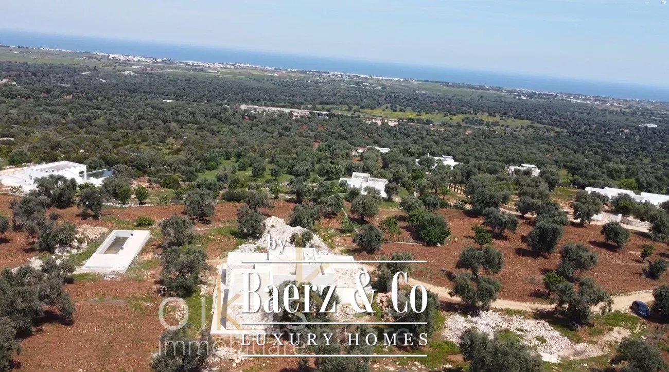 Villa Carovigno with sea view is a rare opportunity in Puglia, providing a home designed for both year-round living and tranquil retreat. With 210 m² of interior space spanning two levels, the villa is carefully set within a private olive grove of 15,860 m². Thoughtfully constructed with 70-centimetre thick walls and ventilated flooring, the residence stands out for its thermal efficiency, superior build quality, and lasting comfort—a rarity in the region.