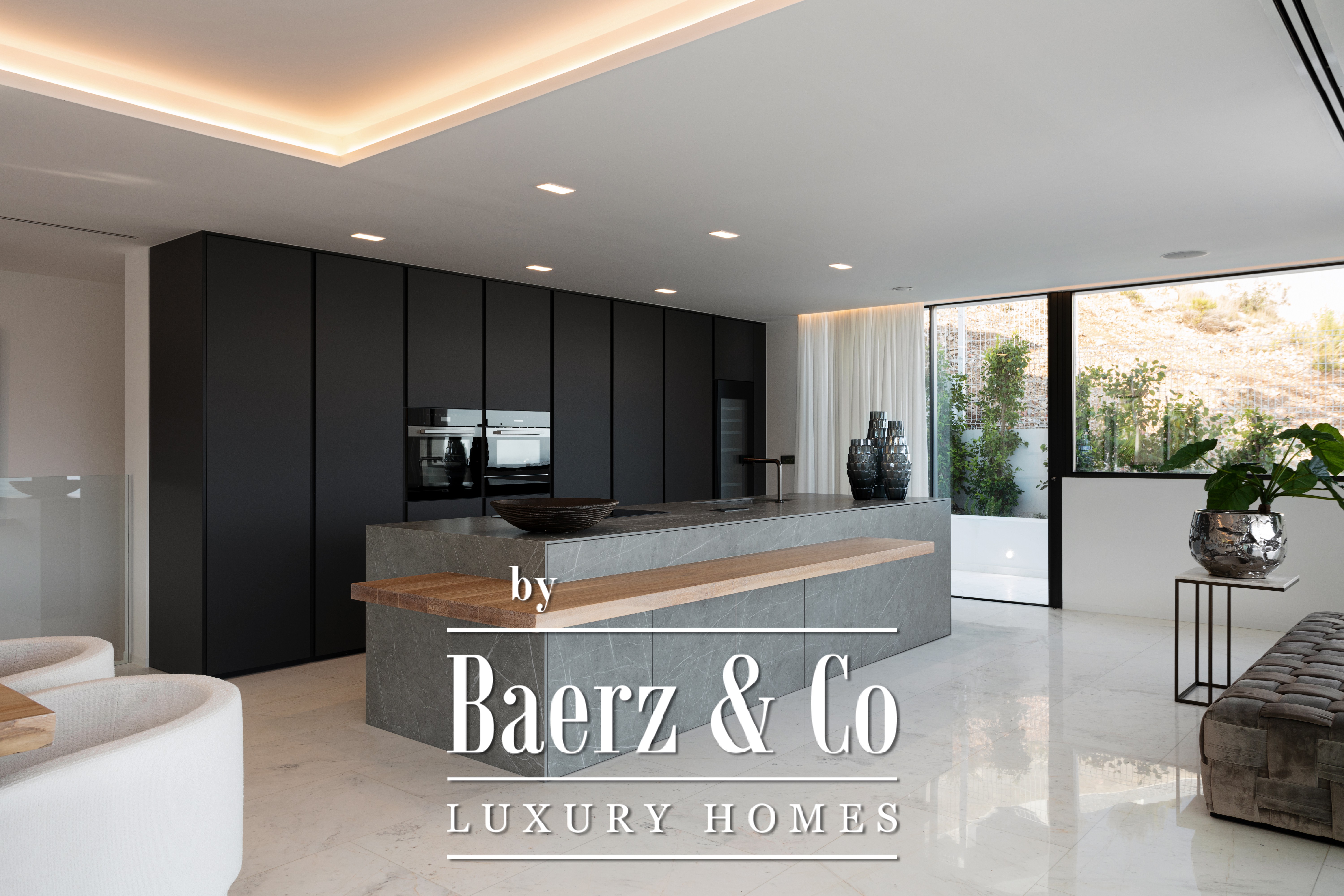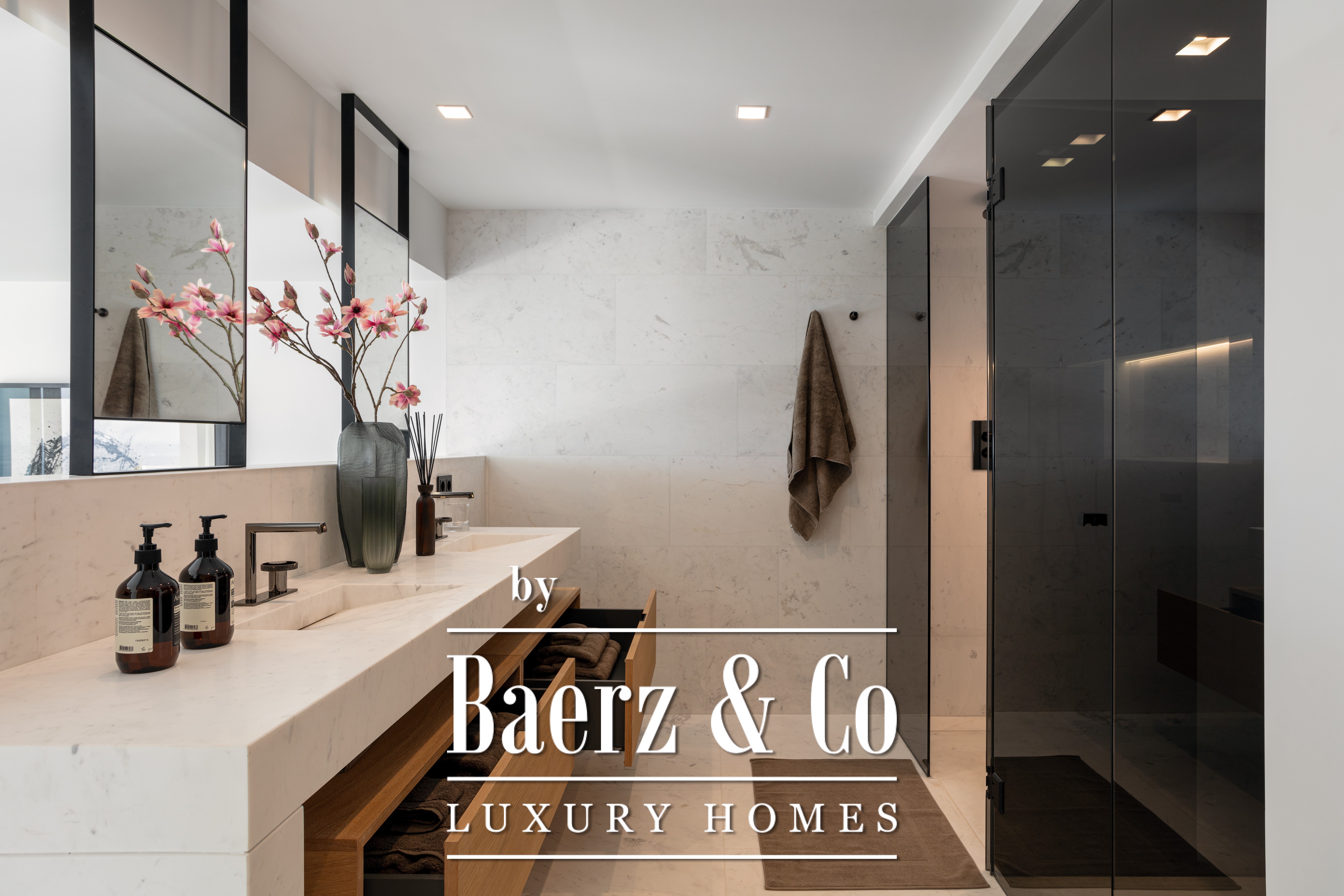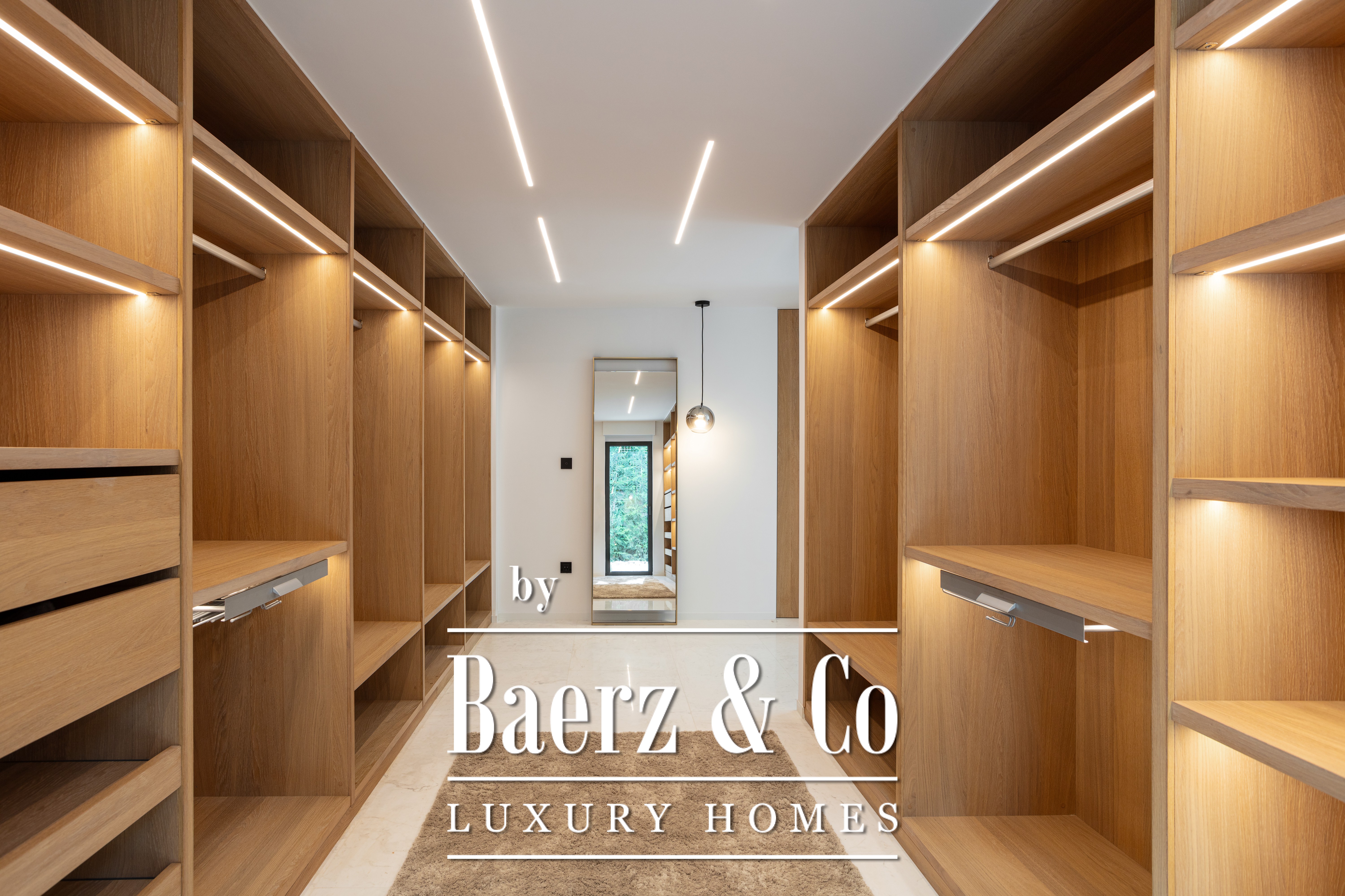 Internally, this luxury residence is graced with the meticulous design and furnishings of the renowned artist, Eric Kuster. The result is a sophisticated, contemporary aesthetic with a touch of warmth and coziness, showcasing attention to detail.