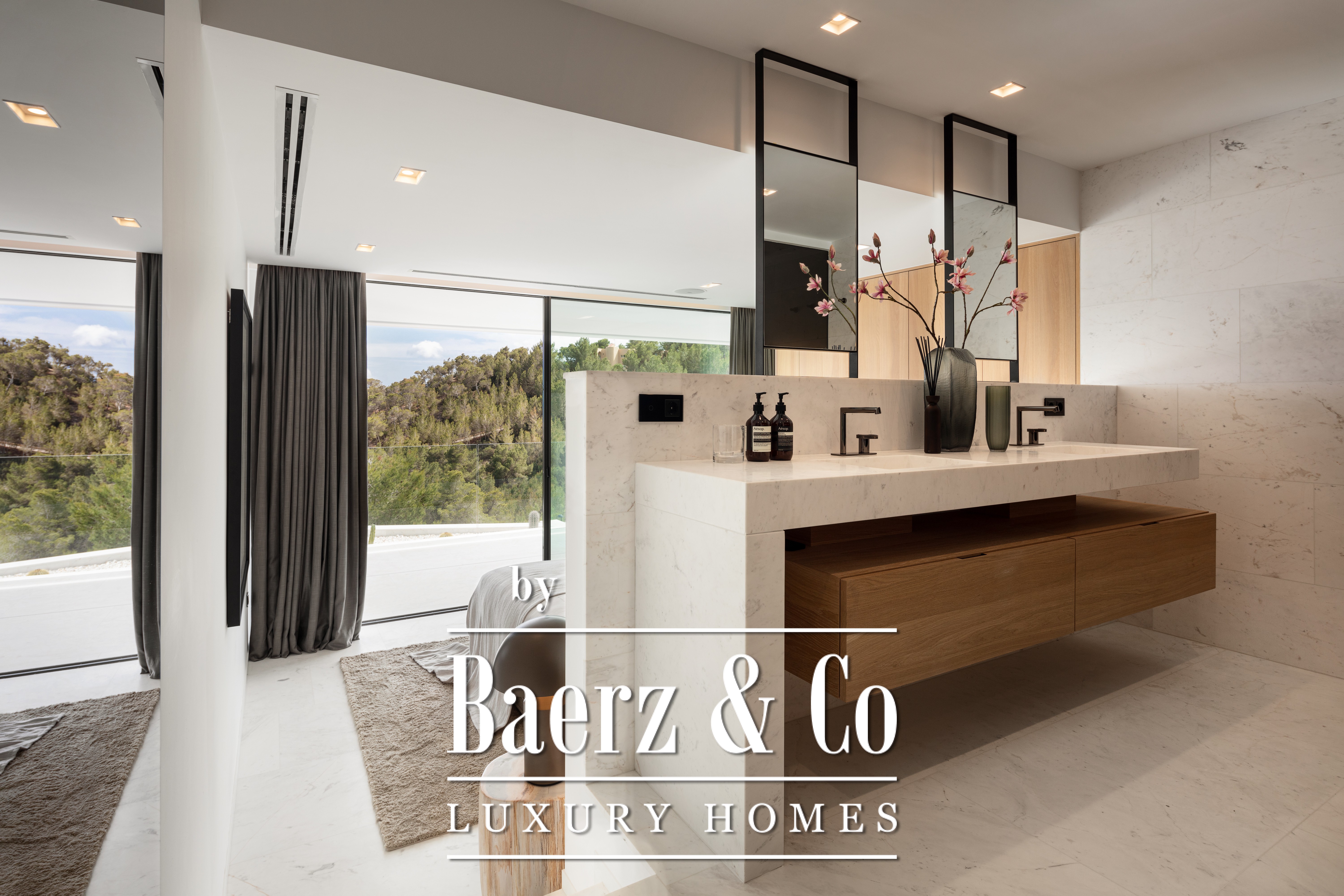 Introducing a state-of-the-art luxury villa, newly constructed and fully furnished, offering immediate occupancy. Situated just a brief 5-minute drive from Ibiza's vibrant city center and bustling Port, this exceptional property boasts breathtaking vistas of the sea and the enchanting Formentera island.