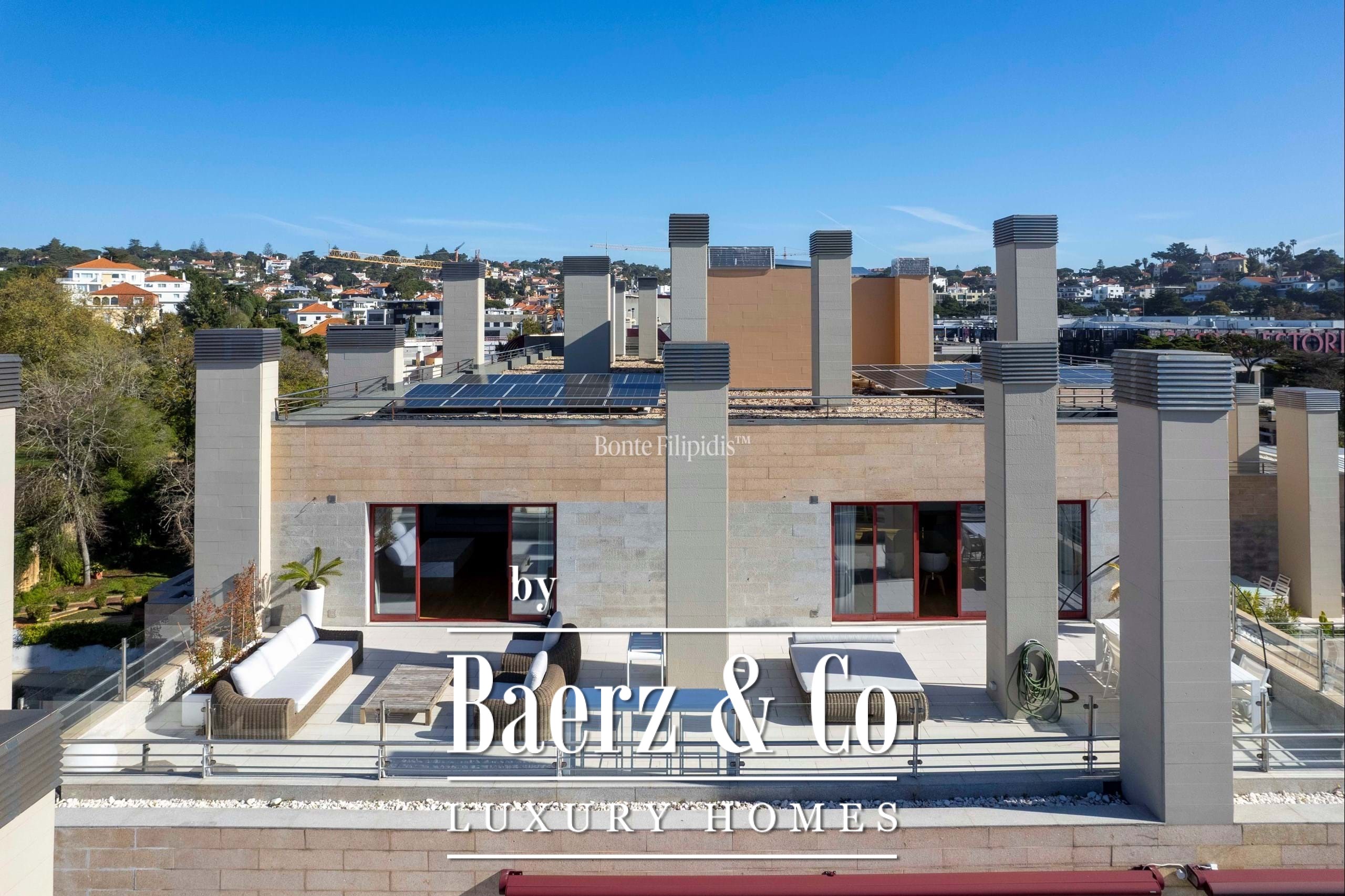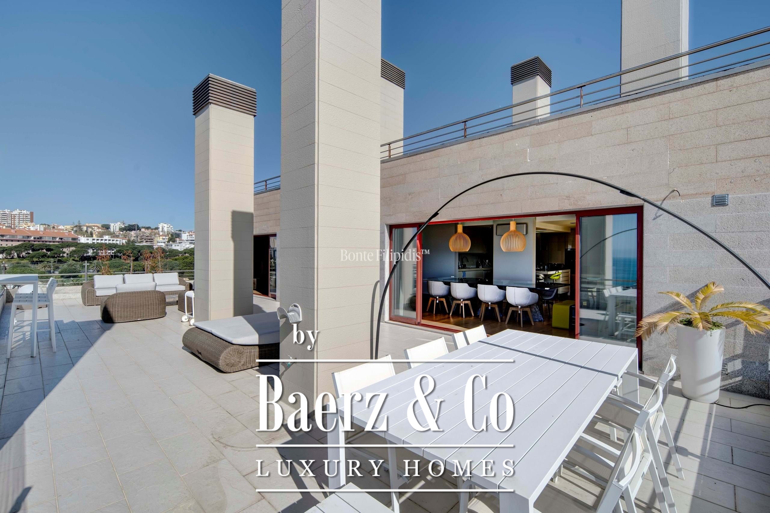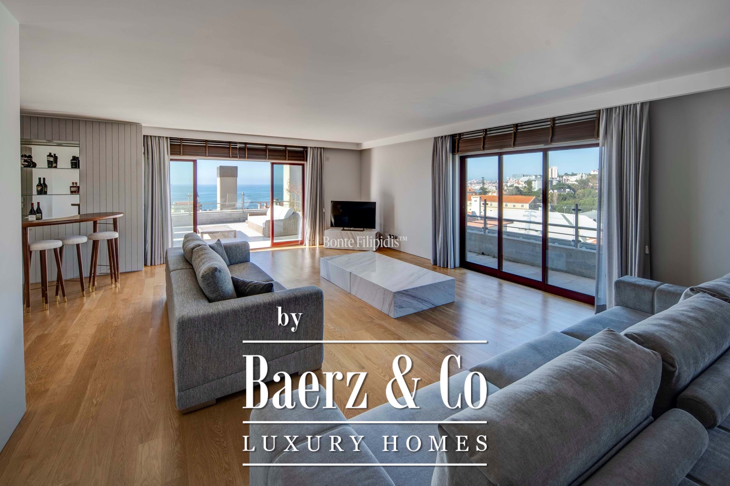 Located in the modern Estoril Terrasse building, this spacious 5-Bedroom apartment with 372,65 sqm, offers comfort and functionality. Situated on a single floor, the property features a large living room with a fireplace and access to balconies, a fully equipped kitchen, five bedrooms, including two suites, and four bathrooms. The apartment also includes additional spaces such as parking for multiple vehicles and a storage room.