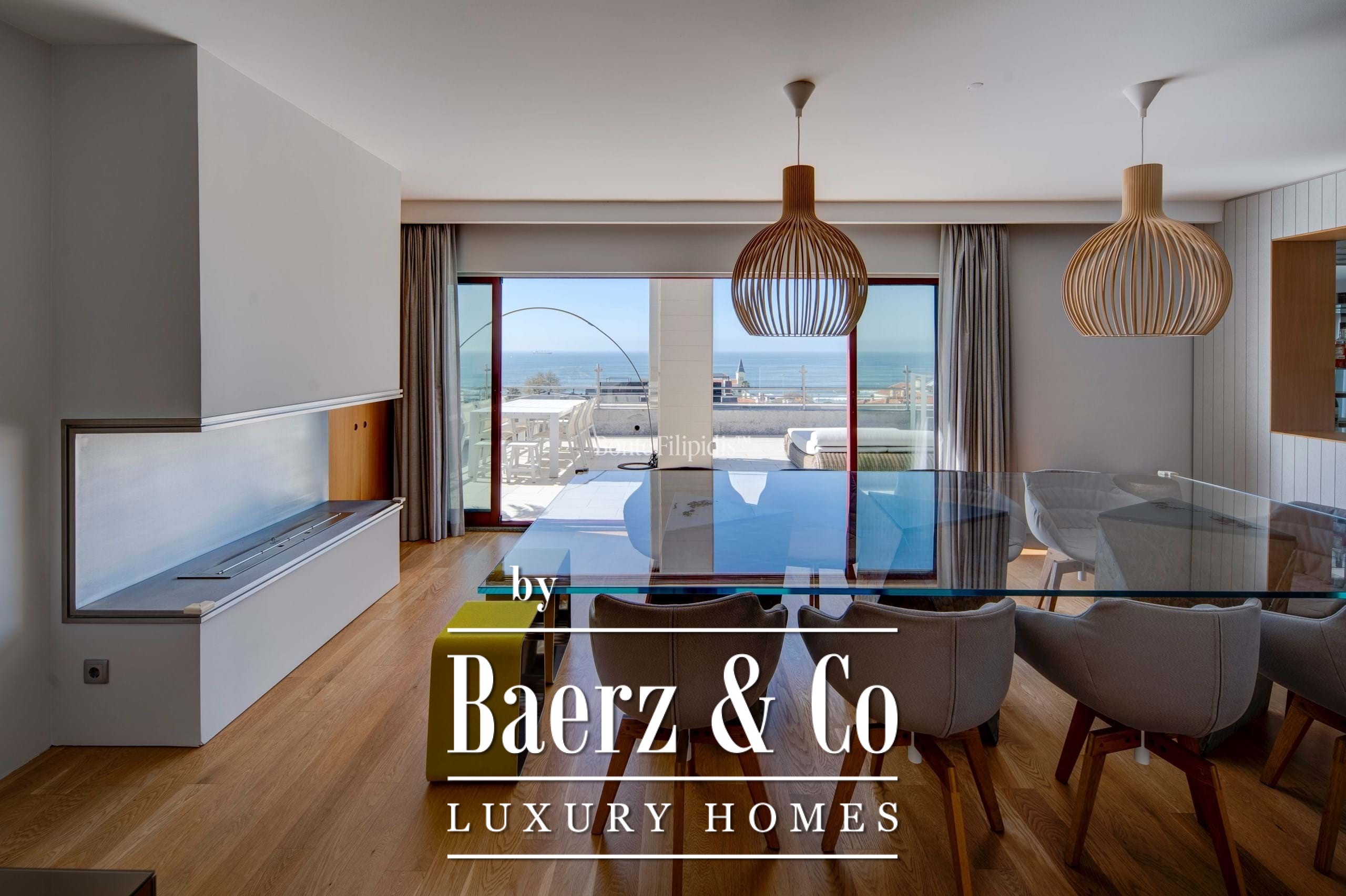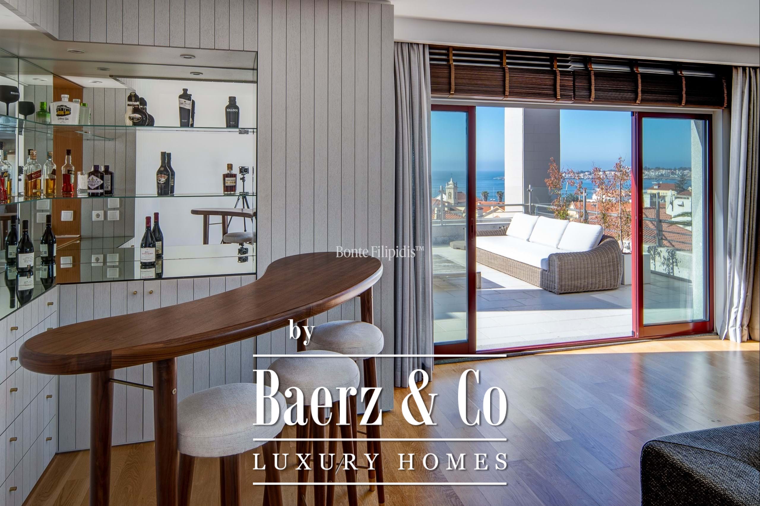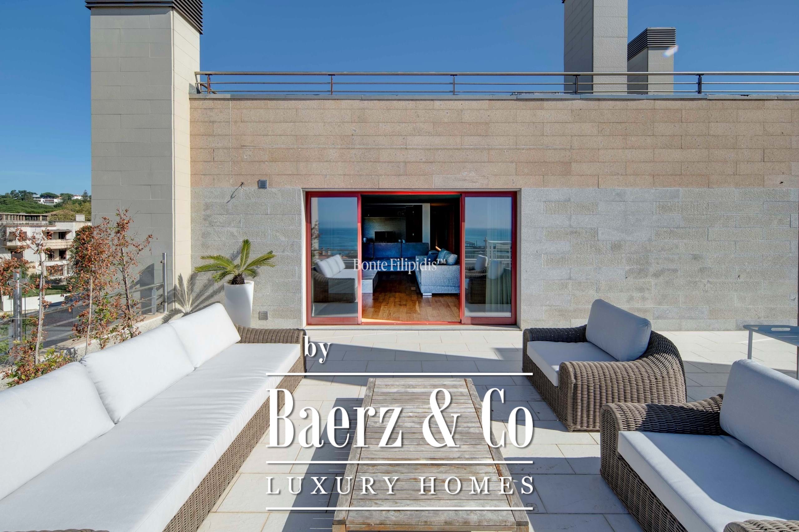 Located in the modern Estoril Terrasse building, this spacious 5-Bedroom apartment with 372,65 sqm, offers comfort and functionality. Situated on a single floor, the property features a large living room with a fireplace and access to balconies, a fully equipped kitchen, five bedrooms, including two suites, and four bathrooms. The apartment also includes additional spaces such as parking for multiple vehicles and a storage room.