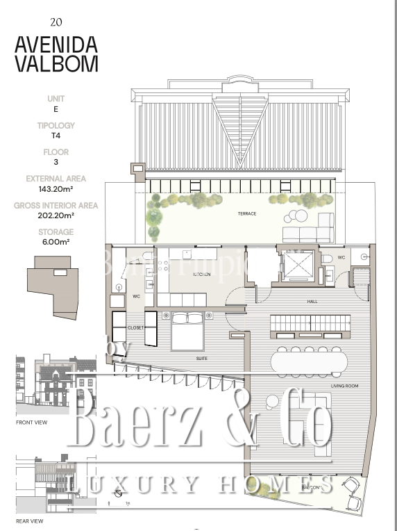 3 bedroom apartment, with an indoor area of 202 sqm and an outdoor area of 128 sqm offers a comfortable and practical experience, perfect for families or those looking for a spacious home in one of the most desirable locations in Cascais.